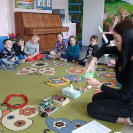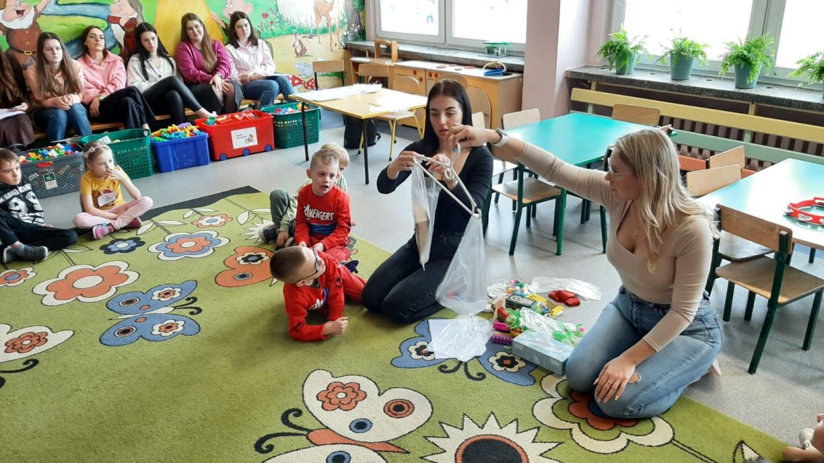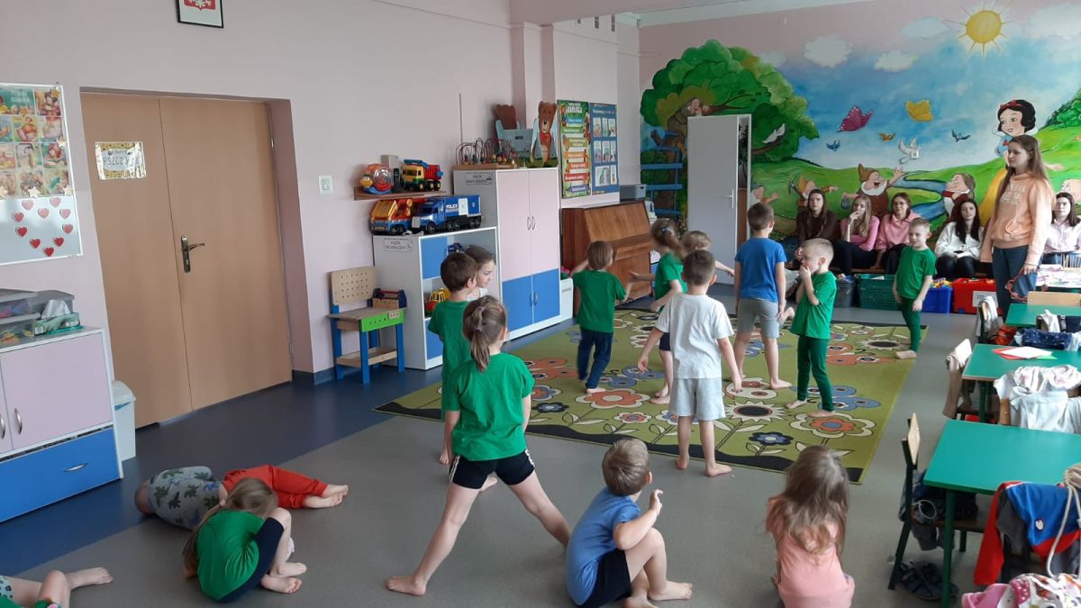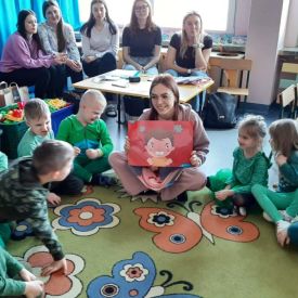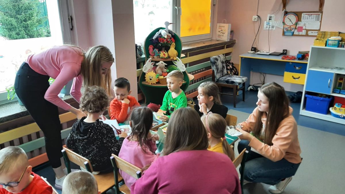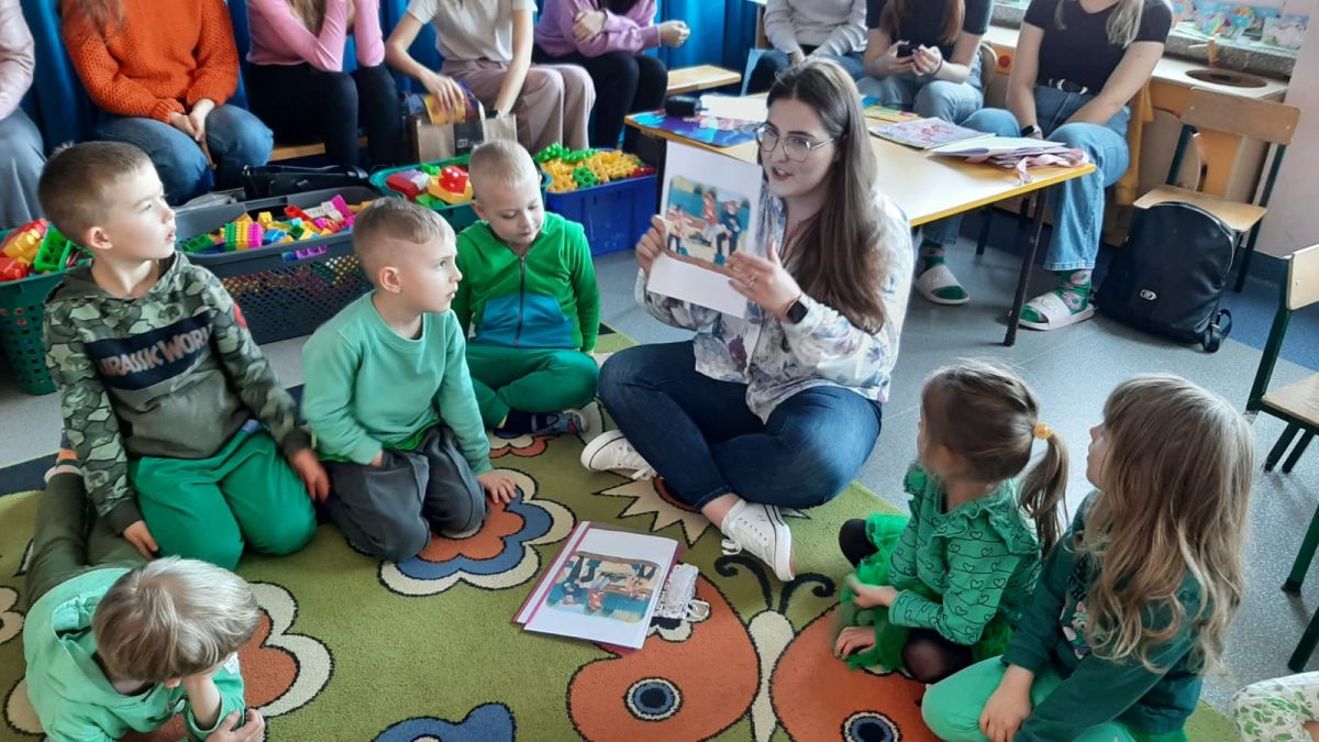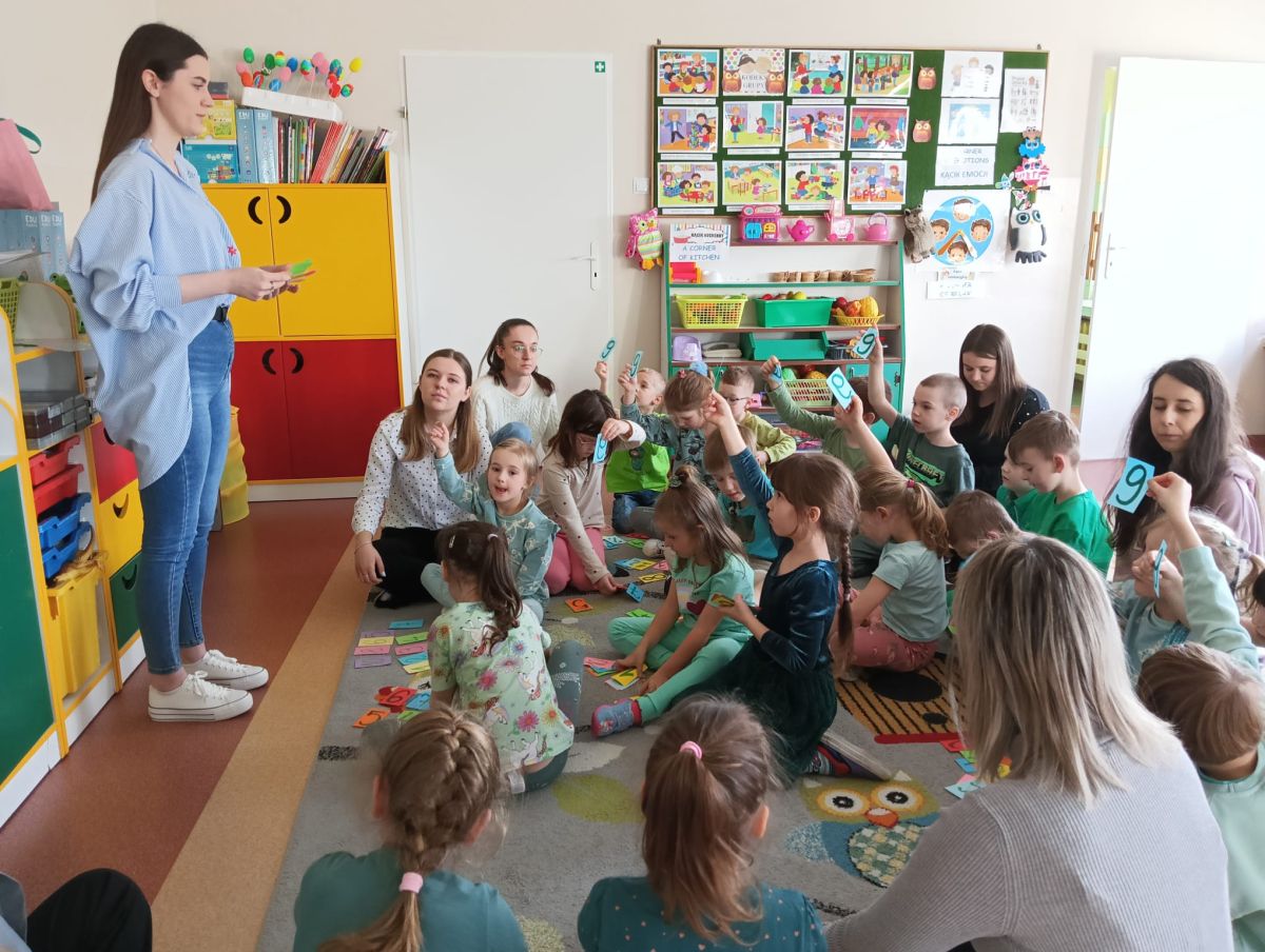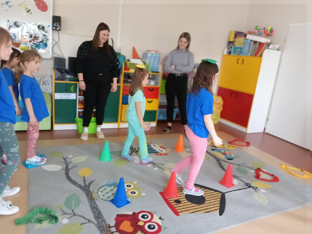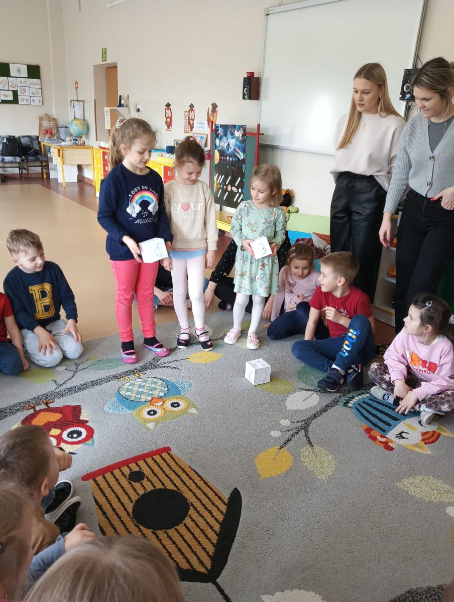 W dniach 14.03.2024 r.- 04.04.2024 r dwie grupy studentek ( 18 osób) II roku jednolitych studiów stacjonarnych, pod opieką nauczycieli: Doroty Pacek-Styś i Urszuli Gawryś, w grupach Sowy i Motylki brało udział w zajęciach hospitowanych i prowadziło zajęcia z dziećmi.