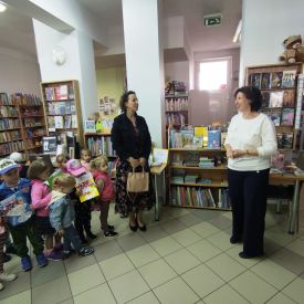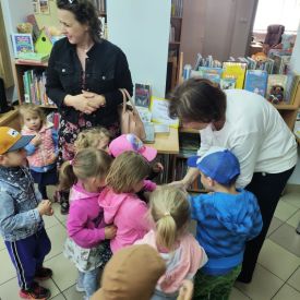 8 maja w Dniu Bibliotekarza i Bibliotek dzieci z grupy Biedronek w imieniu całej społeczności przedszkolnej powędrowały do zaprzyjaźnionej Miejskiej Biblioteki Publicznej im. Jerzego Pilcha Filii nr 2 z życzeniami. Przedszkolaki wręczyły naszym wspaniałym Paniom Bibliotekarkom laurki, zakładki do książek oraz zaśpiewały staropolskie "Sto lat...".