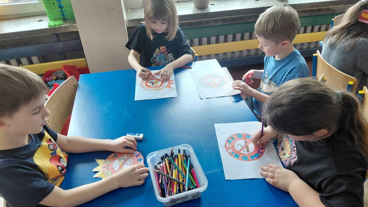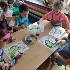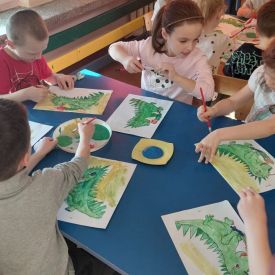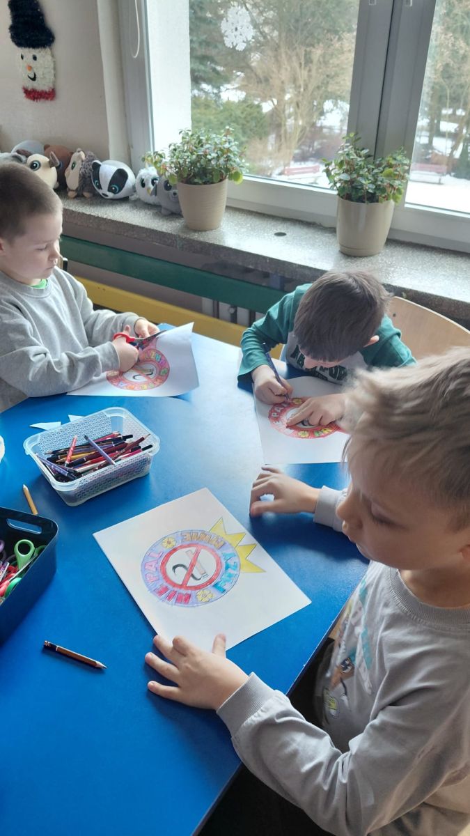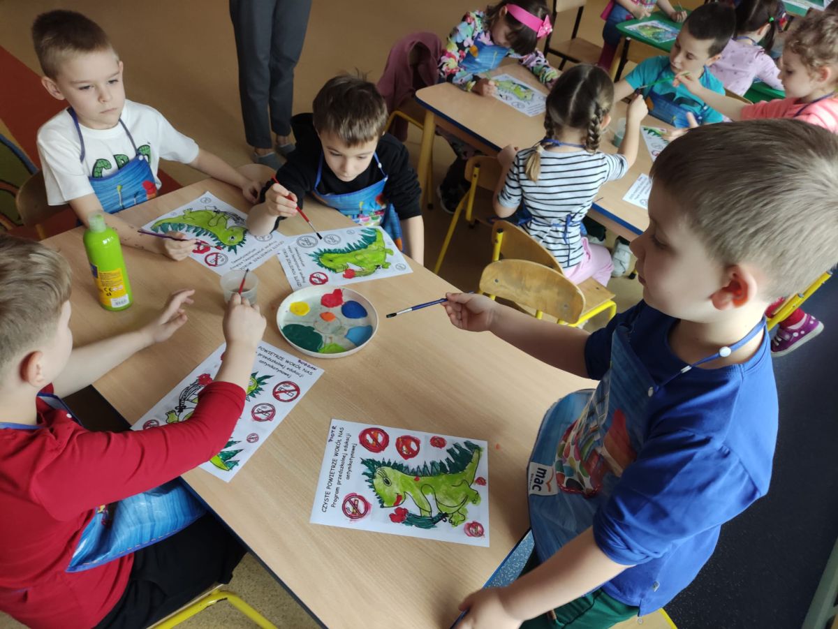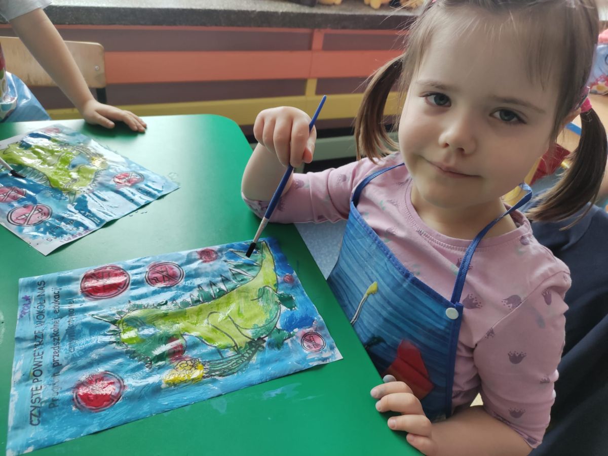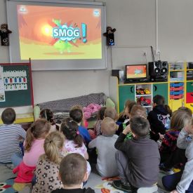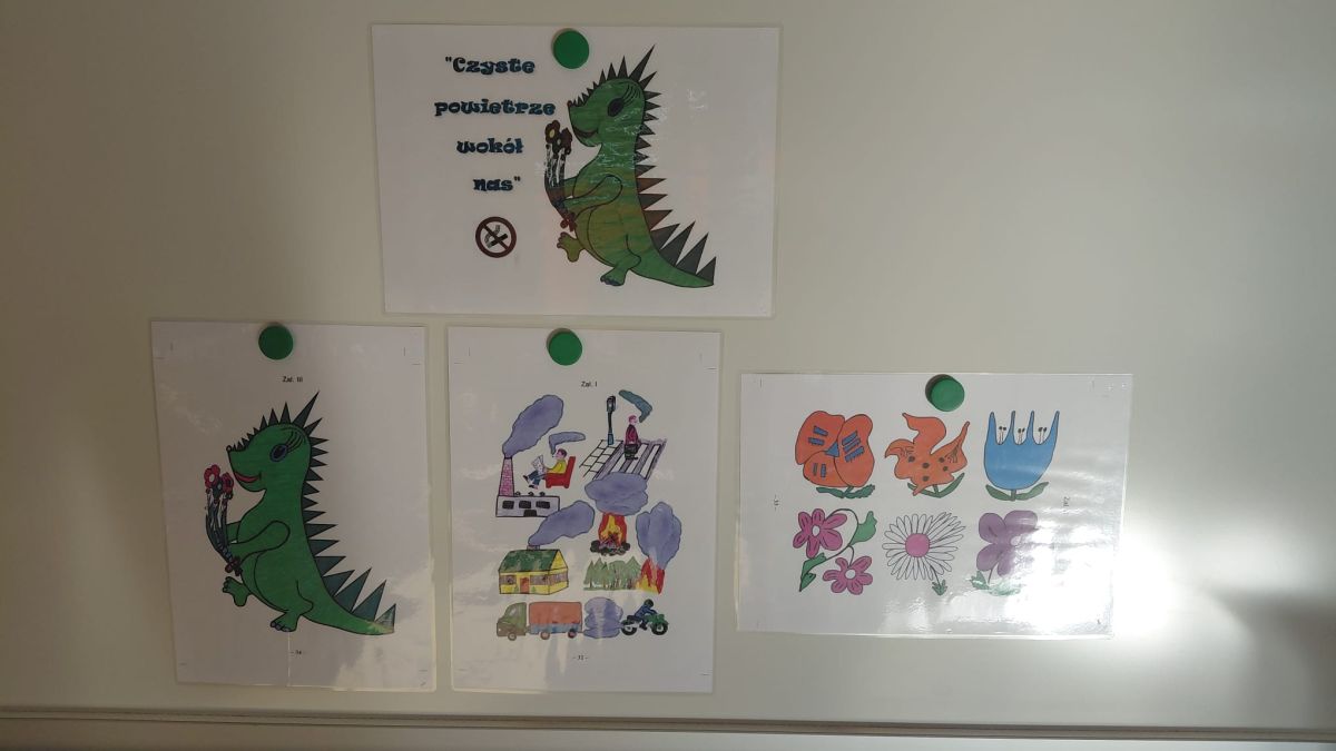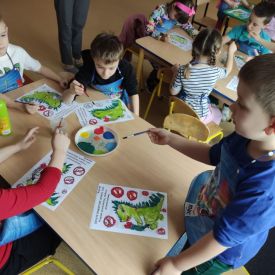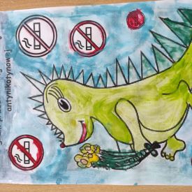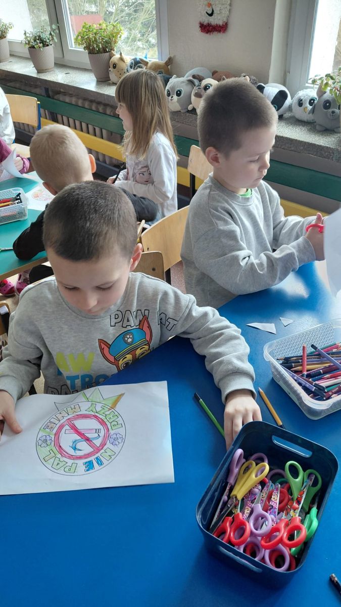 W dniach od 2.02.2026 r. do 6.02.2026 r. przedszkolaki z grupy III „Pszczółki” i grupy IV „Sowy” realizowały Ogólnopolski Program Edukacji Antytytoniowej pt. ,,Czyste powietrze wokół nas”. Celem programu było uczenie dzieci szacunku do otaczającego świata, zwiększenie wrażliwości dzieci na szkodliwość dymu papierosowego, wykształcenie umiejętności rozpoznawania różnych źródeł dymu, zwiększenie wiedzy na temat skutków palenia papierosów, zwiększenie wrażliwości dzieci na miejsca, w których mogą być narażane na dym. Dzieci obejrzały filmy edukacyjne: Książę i Smog, Zanieczyszczone powietrze, Czym jest smog? Podczas spaceru obserwowały różne źródła dymu, malowały farbami postać Smoka Dinka, kolorowały i ozdabiały kwiaty, projektowały własny znaczek „Nie pal przy mnie”, śpiewały piosenkę o zielonym Dinku, który nie lubi palaczy i ucieka przed dymem,