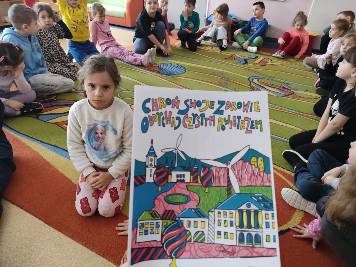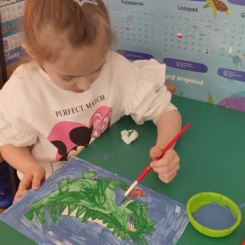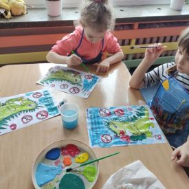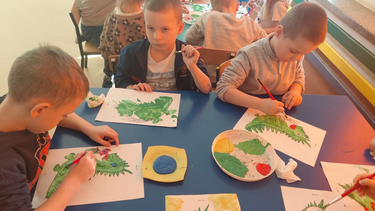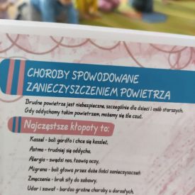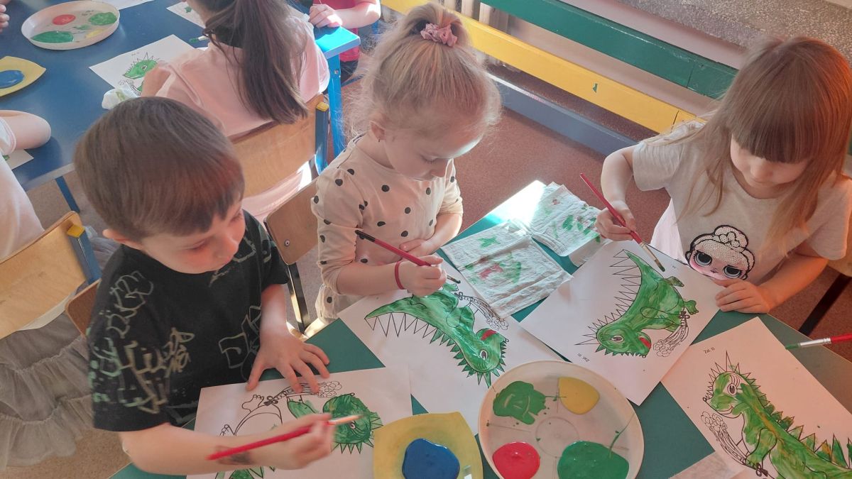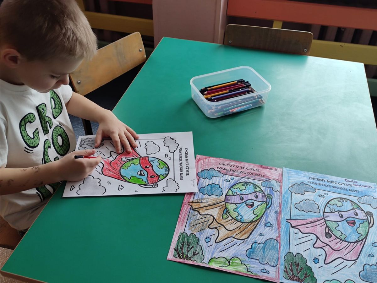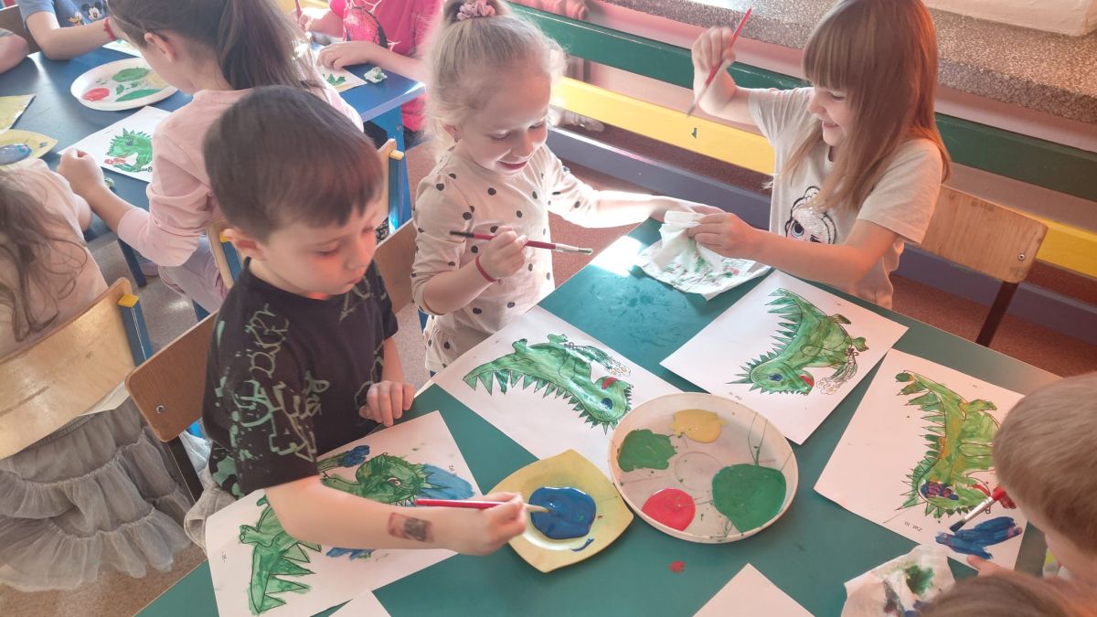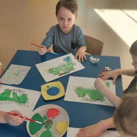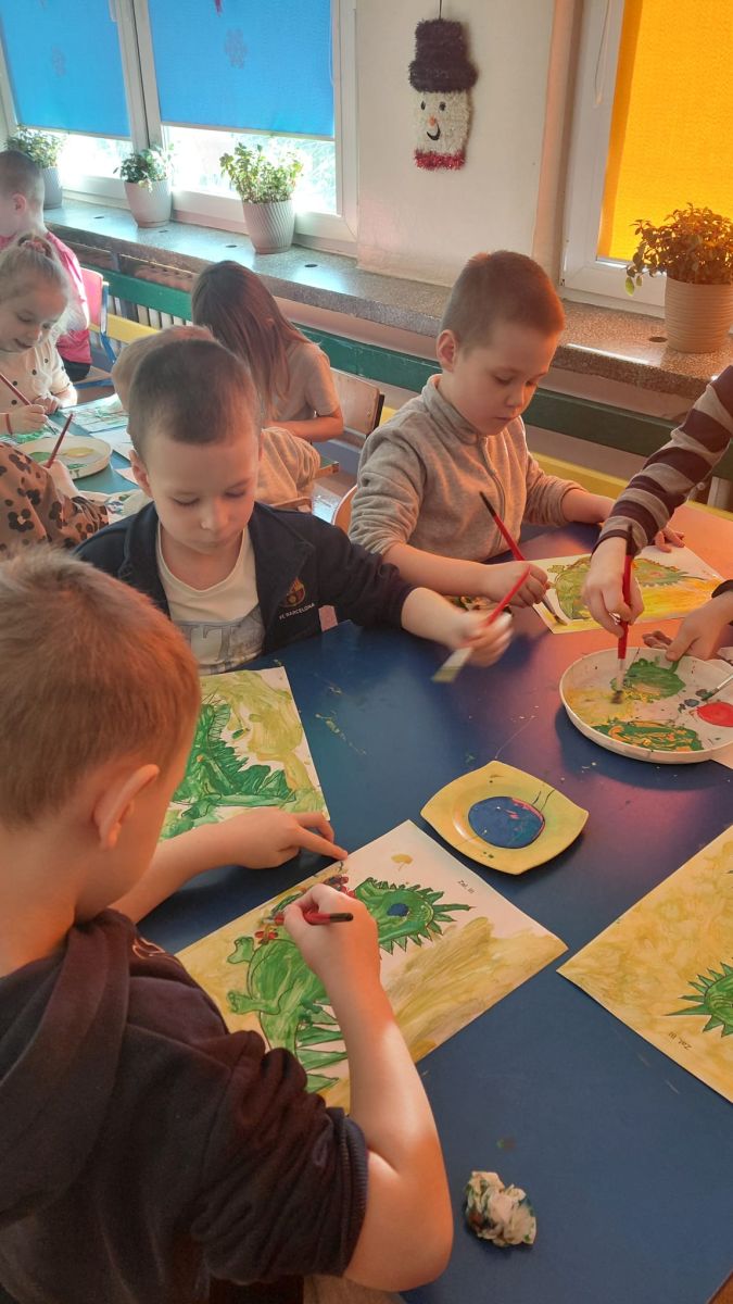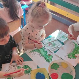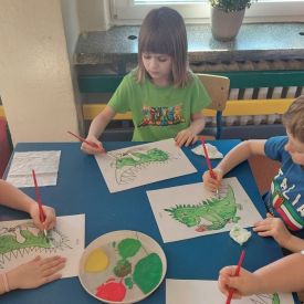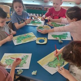 W dniach od 2.02.2026 r. do 6.02.2026 r. przedszkolaki z grupy III „Pszczółki” i grupy IV „Sowy” realizowały Ogólnopolski Program Edukacji Antytytoniowej pt. ,,Czyste powietrze wokół nas”. Celem programu było uczenie dzieci szacunku do otaczającego świata, zwiększenie wrażliwości dzieci na szkodliwość dymu papierosowego, wykształcenie umiejętności rozpoznawania różnych źródeł dymu, zwiększenie wiedzy na temat skutków palenia papierosów, zwiększenie wrażliwości dzieci na miejsca, w których mogą być narażane na dym. Dzieci obejrzały filmy edukacyjne: Książę i Smog, Zanieczyszczone powietrze, Czym jest smog? Podczas spaceru obserwowały różne źródła dymu, malowały farbami postać Smoka Dinka, kolorowały i ozdabiały kwiaty, projektowały własny znaczek „Nie pal przy mnie”, śpiewały piosenkę o zielonym Dinku, który nie lubi palaczy i ucieka przed dymem,
