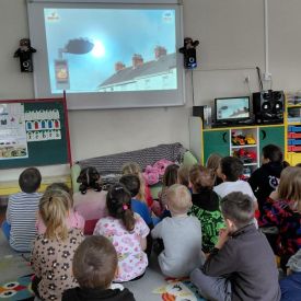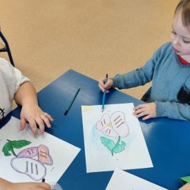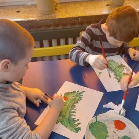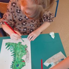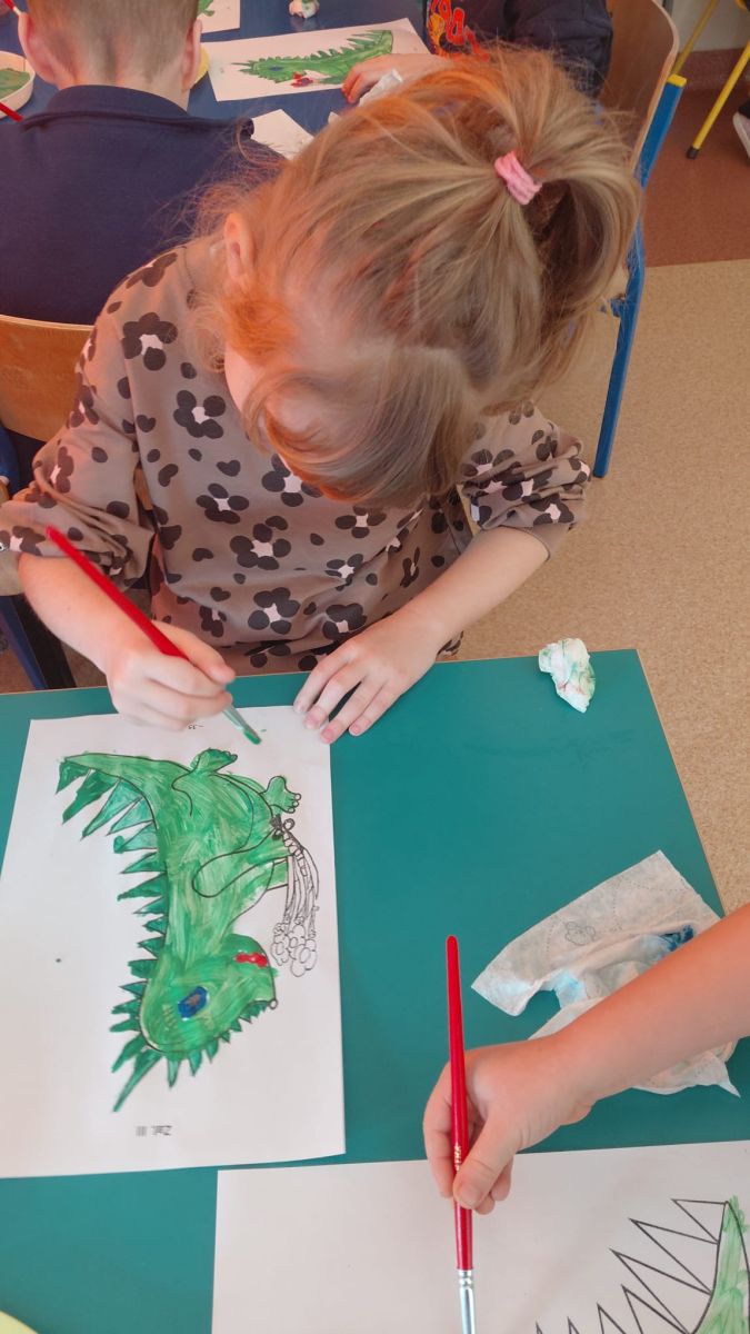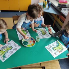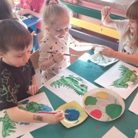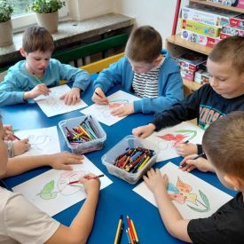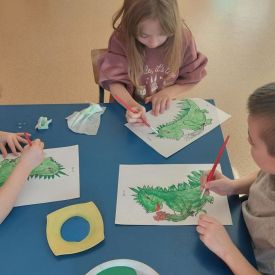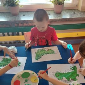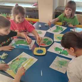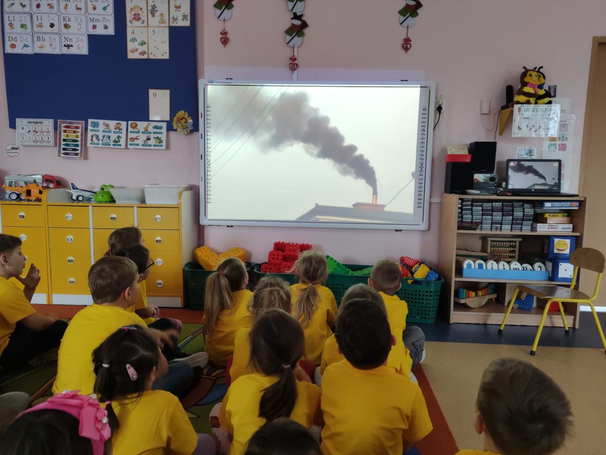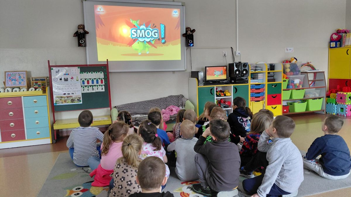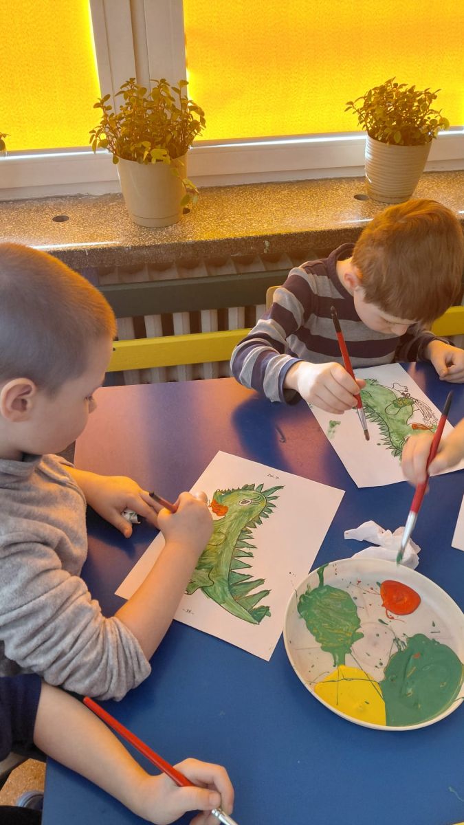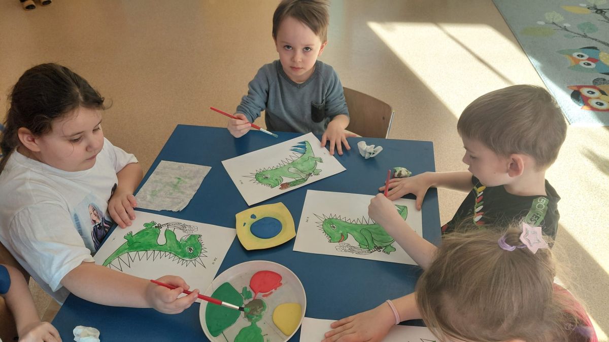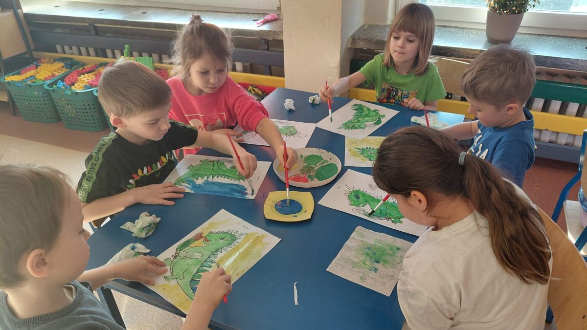 W dniach od 2.02.2026 r. do 6.02.2026 r. przedszkolaki z grupy III „Pszczółki” i grupy IV „Sowy” realizowały Ogólnopolski Program Edukacji Antytytoniowej pt. ,,Czyste powietrze wokół nas”. Celem programu było uczenie dzieci szacunku do otaczającego świata, zwiększenie wrażliwości dzieci na szkodliwość dymu papierosowego, wykształcenie umiejętności rozpoznawania różnych źródeł dymu, zwiększenie wiedzy na temat skutków palenia papierosów, zwiększenie wrażliwości dzieci na miejsca, w których mogą być narażane na dym. Dzieci obejrzały filmy edukacyjne: Książę i Smog, Zanieczyszczone powietrze, Czym jest smog? Podczas spaceru obserwowały różne źródła dymu, malowały farbami postać Smoka Dinka, kolorowały i ozdabiały kwiaty, projektowały własny znaczek „Nie pal przy mnie”, śpiewały piosenkę o zielonym Dinku, który nie lubi palaczy i ucieka przed dymem,