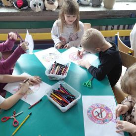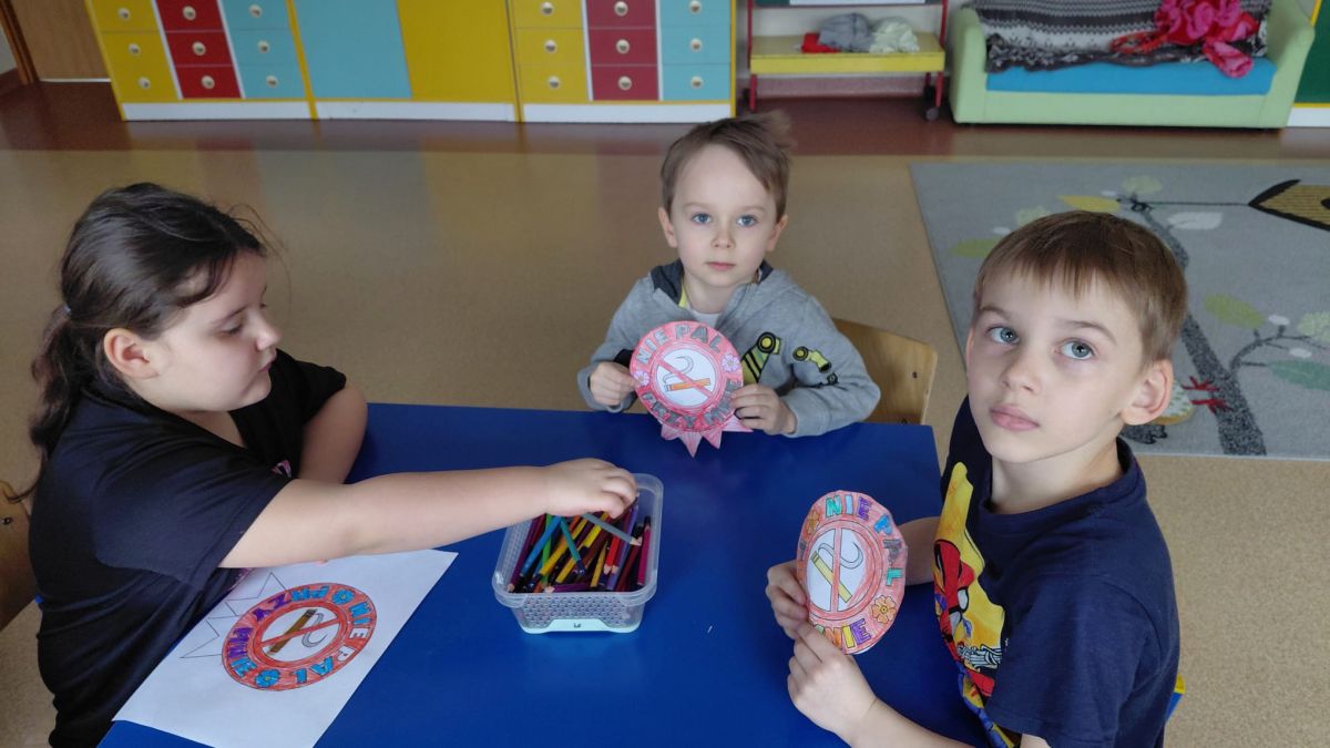 Prace plastyczne zostały zawieszone na tablicach grupowych w szatni. Dzieci bardzo chętnie uczestniczyły w zajęciach i zdobyły wiedzę na temat szkodliwości palenia i w jaki sposób należy zachować się w obecności osoby palącej papierosa.