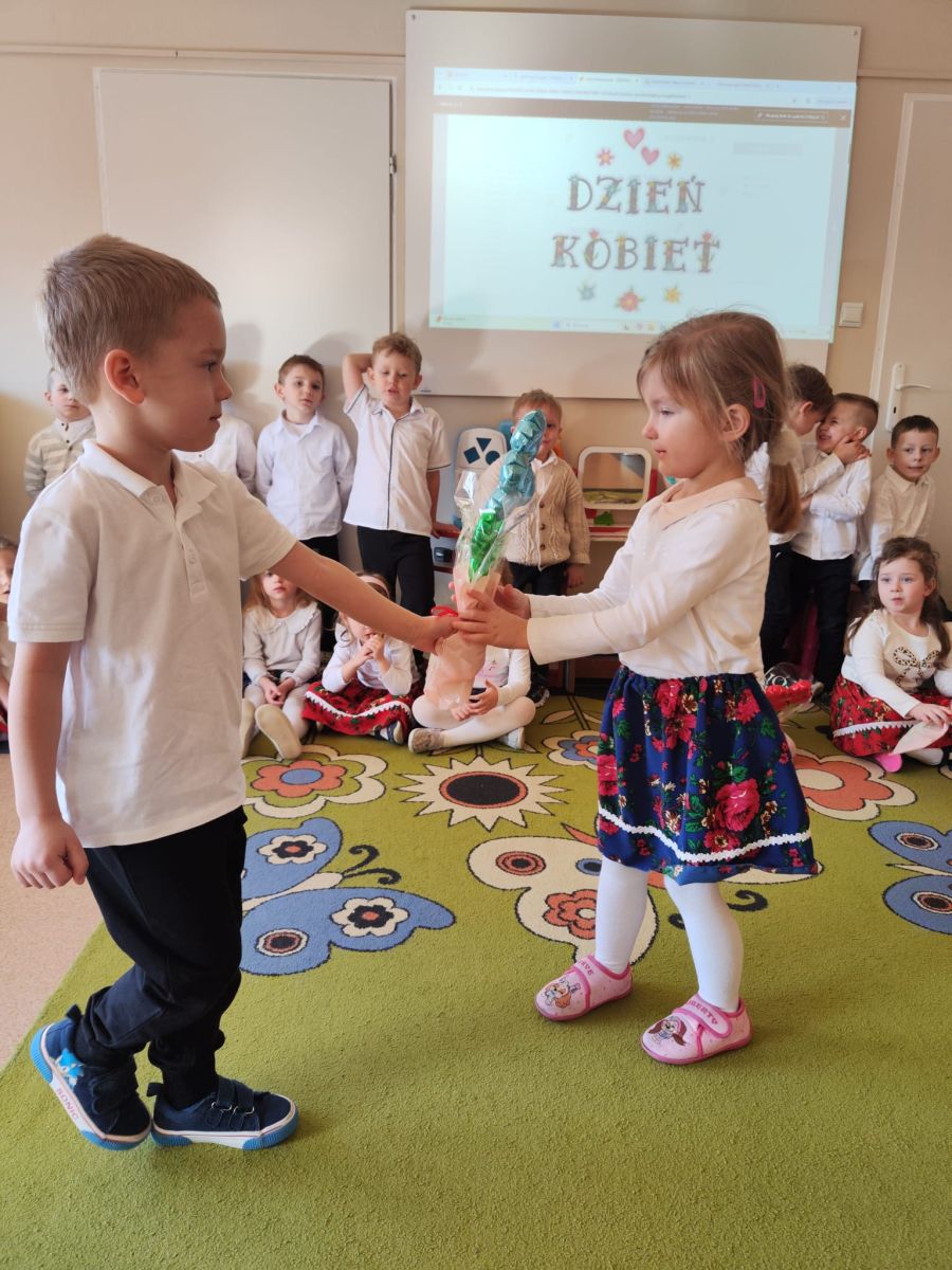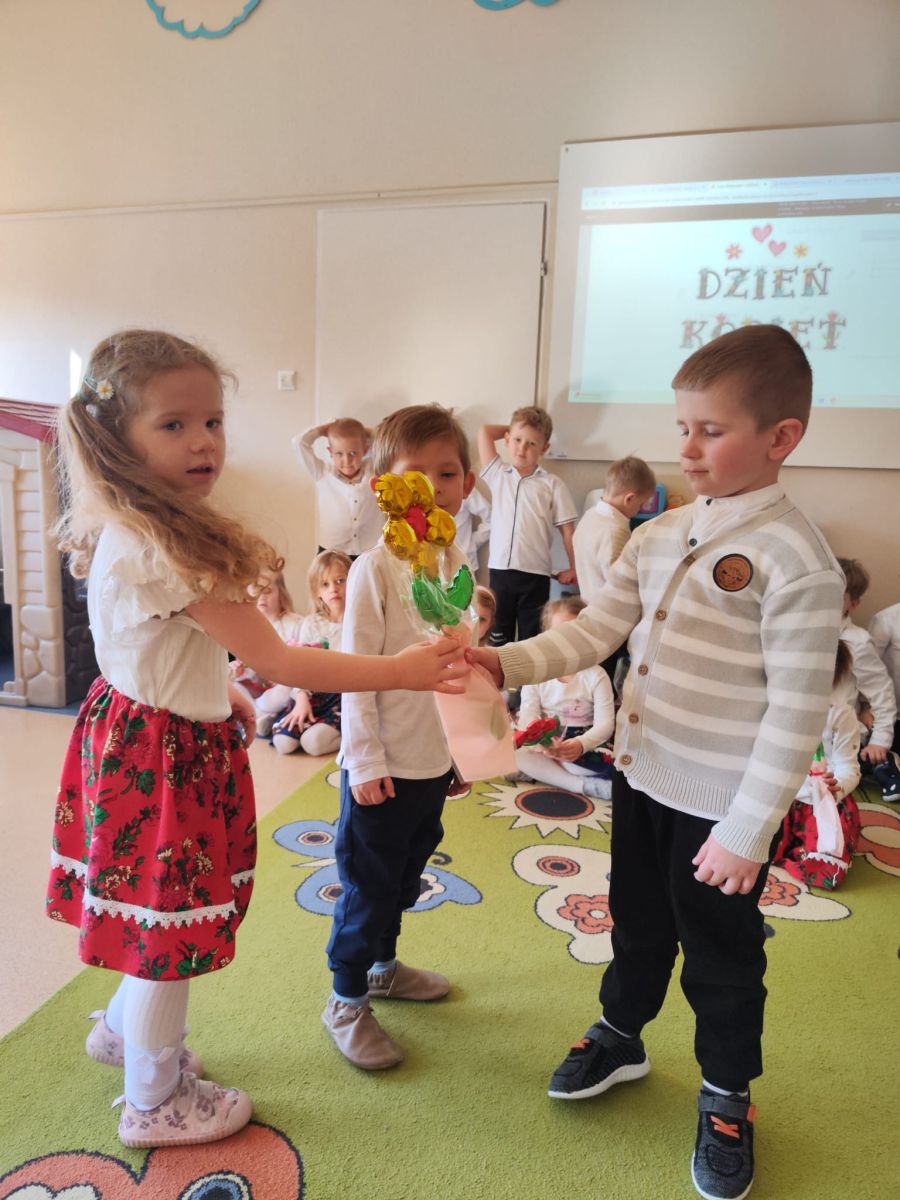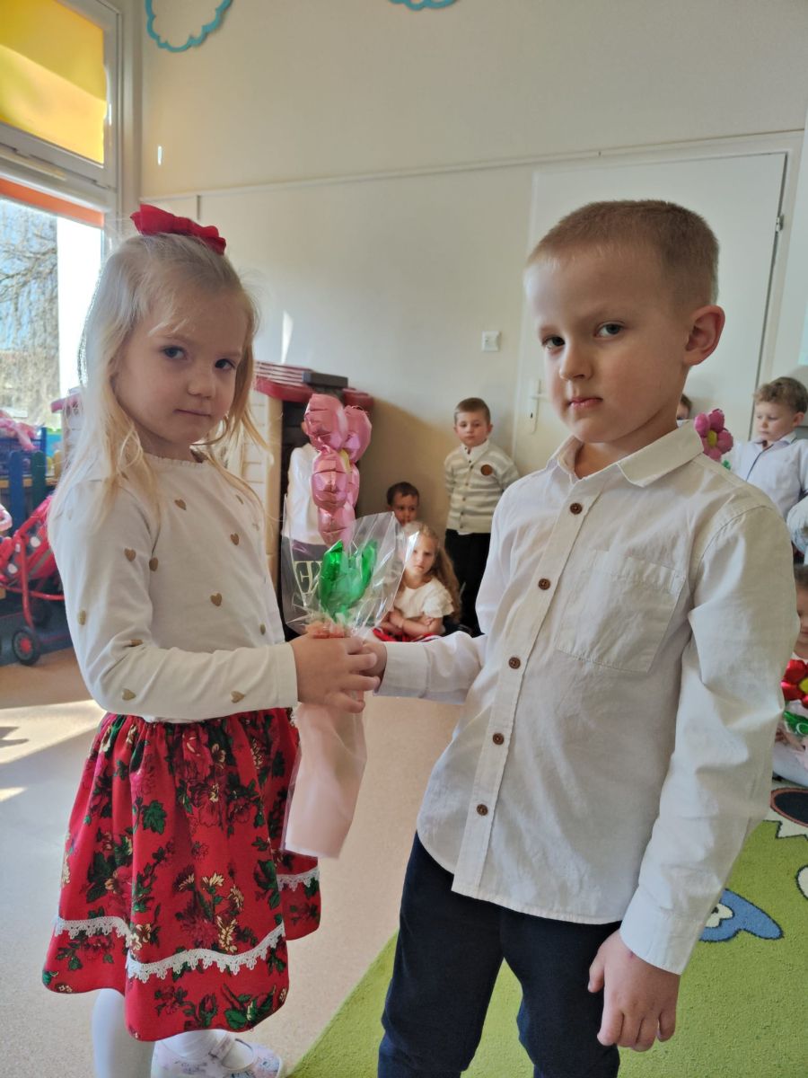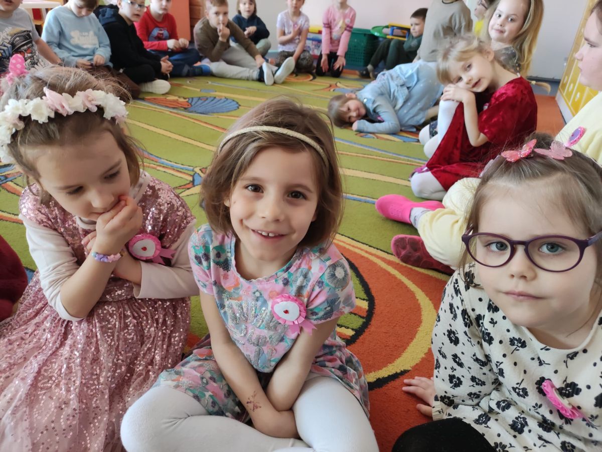 Dzień Dziewczynek w każdej grupie przebiegł bardzo radośnie i w miłej atmosferze. Dzieci chętnie uczestniczyły w swoich ulubionych zabawach. Chłopcy złożyli wszystkim dziewczynkom serdeczne życzenia. Dziewczynki brały udział w konkurencjach sprawnościowych, rozwiązywały zagadki, śpiewały oraz recytowały. Każda z nich otrzymała tytuł/medal „Super Dziewczyny”. Wszystkie te chwile zostały uwiecznione na pamiątkowych zdjęciach. Dzieci pamiętały także o swoich mamach i przygotowały dla nich wspaniałe prezenty – własnoręcznie wykonane rysunki. Na zakończenie wszystkie dzieci zostały obdarowane drobnymi upominkami.