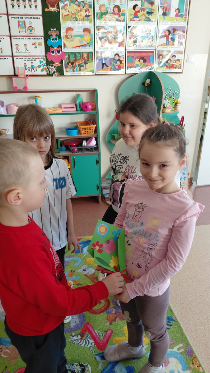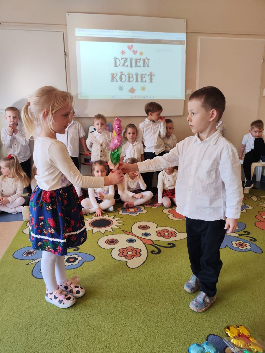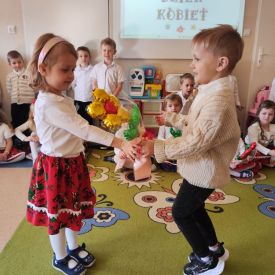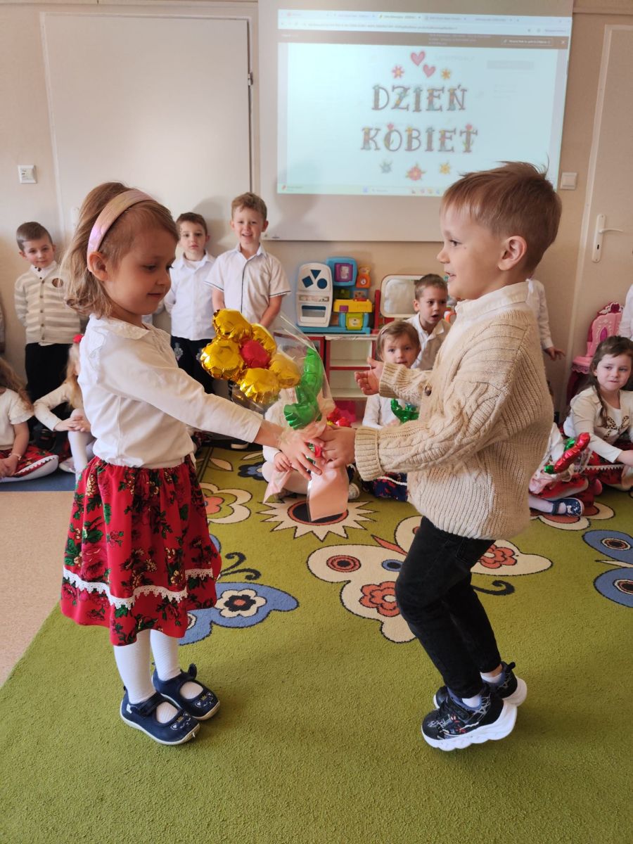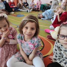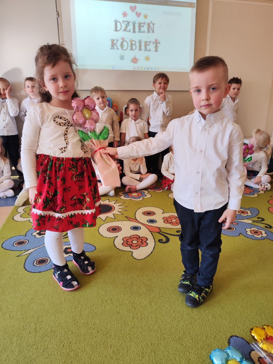 Dzień Dziewczynek w każdej grupie przebiegł bardzo radośnie i w miłej atmosferze. Dzieci chętnie uczestniczyły w swoich ulubionych zabawach. Chłopcy złożyli wszystkim dziewczynkom serdeczne życzenia. Dziewczynki brały udział w konkurencjach sprawnościowych, rozwiązywały zagadki, śpiewały oraz recytowały. Każda z nich otrzymała tytuł/medal „Super Dziewczyny”. Wszystkie te chwile zostały uwiecznione na pamiątkowych zdjęciach. Dzieci pamiętały także o swoich mamach i przygotowały dla nich wspaniałe prezenty – własnoręcznie wykonane rysunki. Na zakończenie wszystkie dzieci zostały obdarowane drobnymi upominkami.