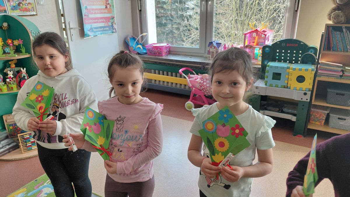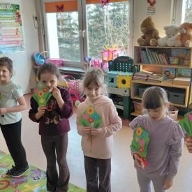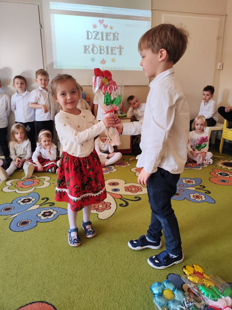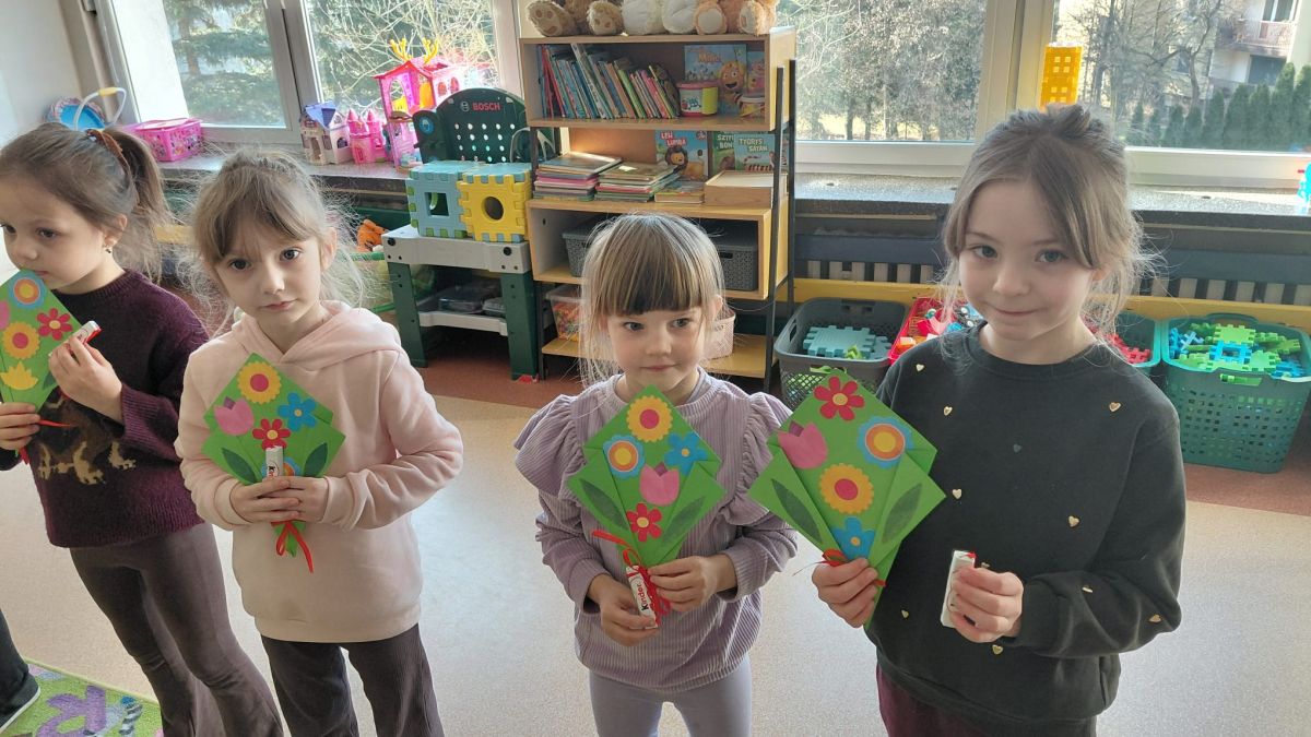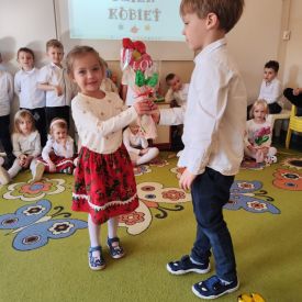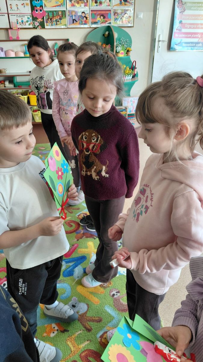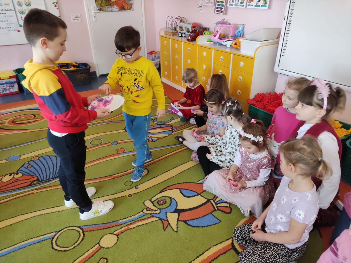 Dzień Dziewczynek w każdej grupie przebiegł bardzo radośnie i w miłej atmosferze. Dzieci chętnie uczestniczyły w swoich ulubionych zabawach. Chłopcy złożyli wszystkim dziewczynkom serdeczne życzenia. Dziewczynki brały udział w konkurencjach sprawnościowych, rozwiązywały zagadki, śpiewały oraz recytowały. Każda z nich otrzymała tytuł/medal „Super Dziewczyny”. Wszystkie te chwile zostały uwiecznione na pamiątkowych zdjęciach. Dzieci pamiętały także o swoich mamach i przygotowały dla nich wspaniałe prezenty – własnoręcznie wykonane rysunki. Na zakończenie wszystkie dzieci zostały obdarowane drobnymi upominkami.