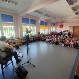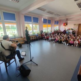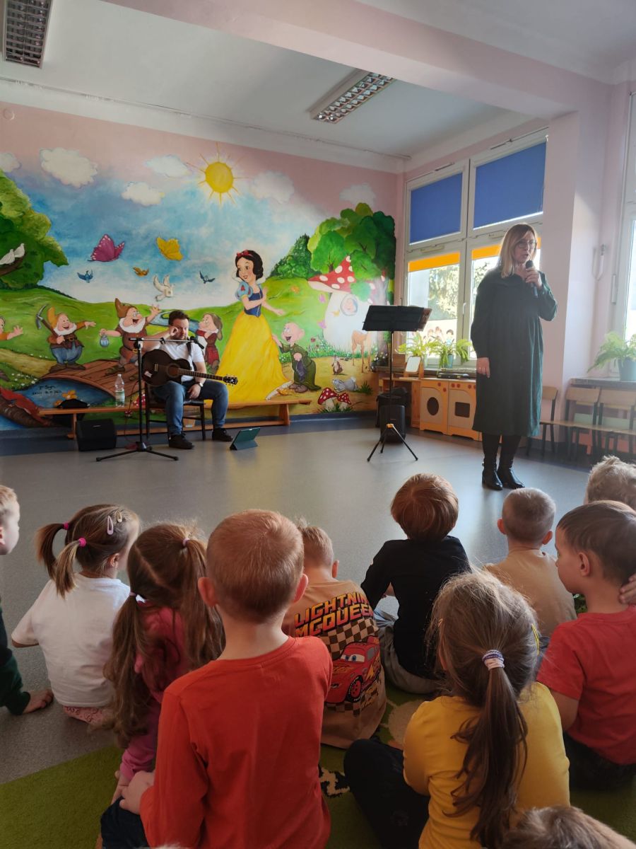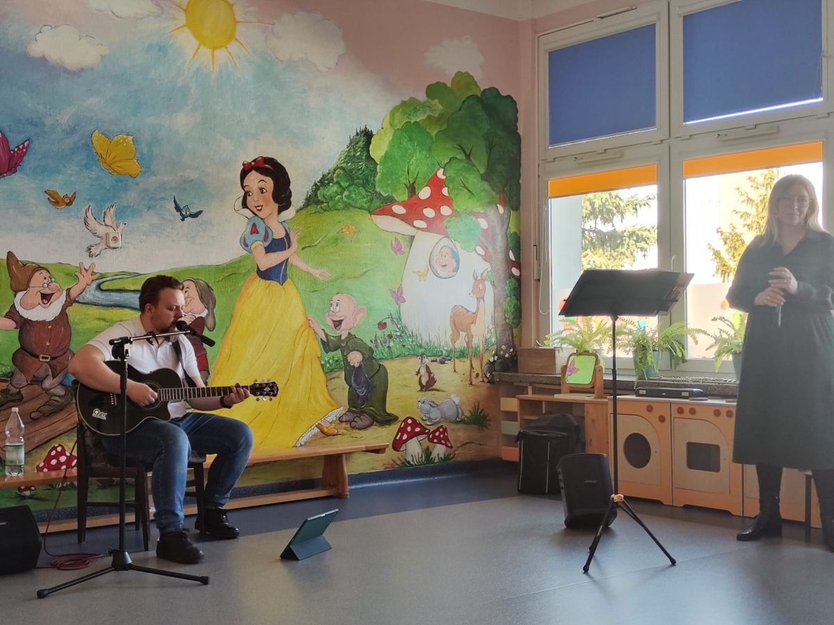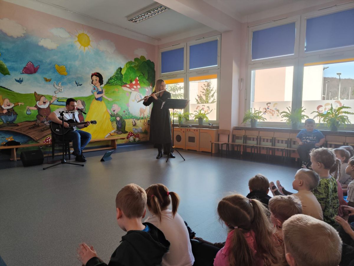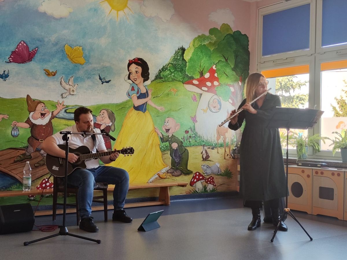 Dzieci z zachwytem wsłuchiwały się w śpiew oraz grę na gitarze akustyczna oraz flecie poprzecznym.