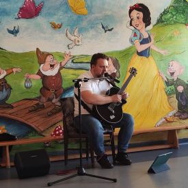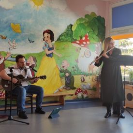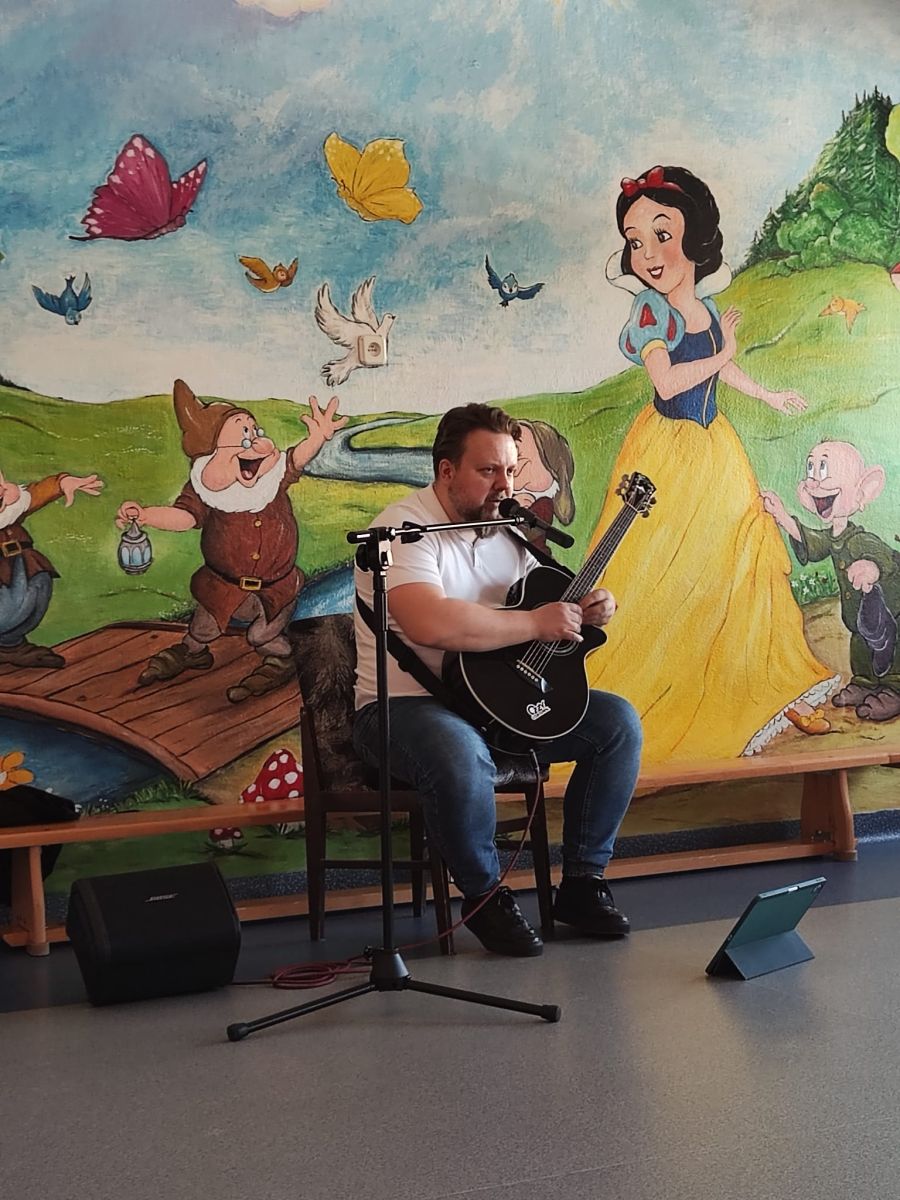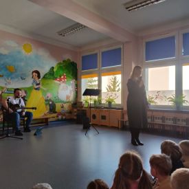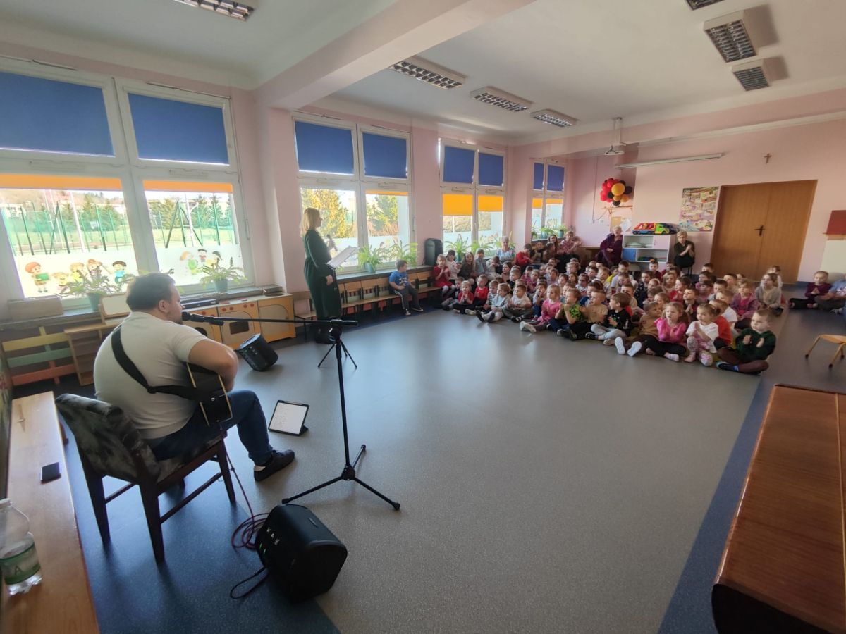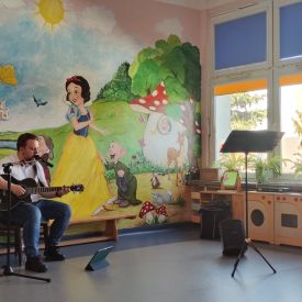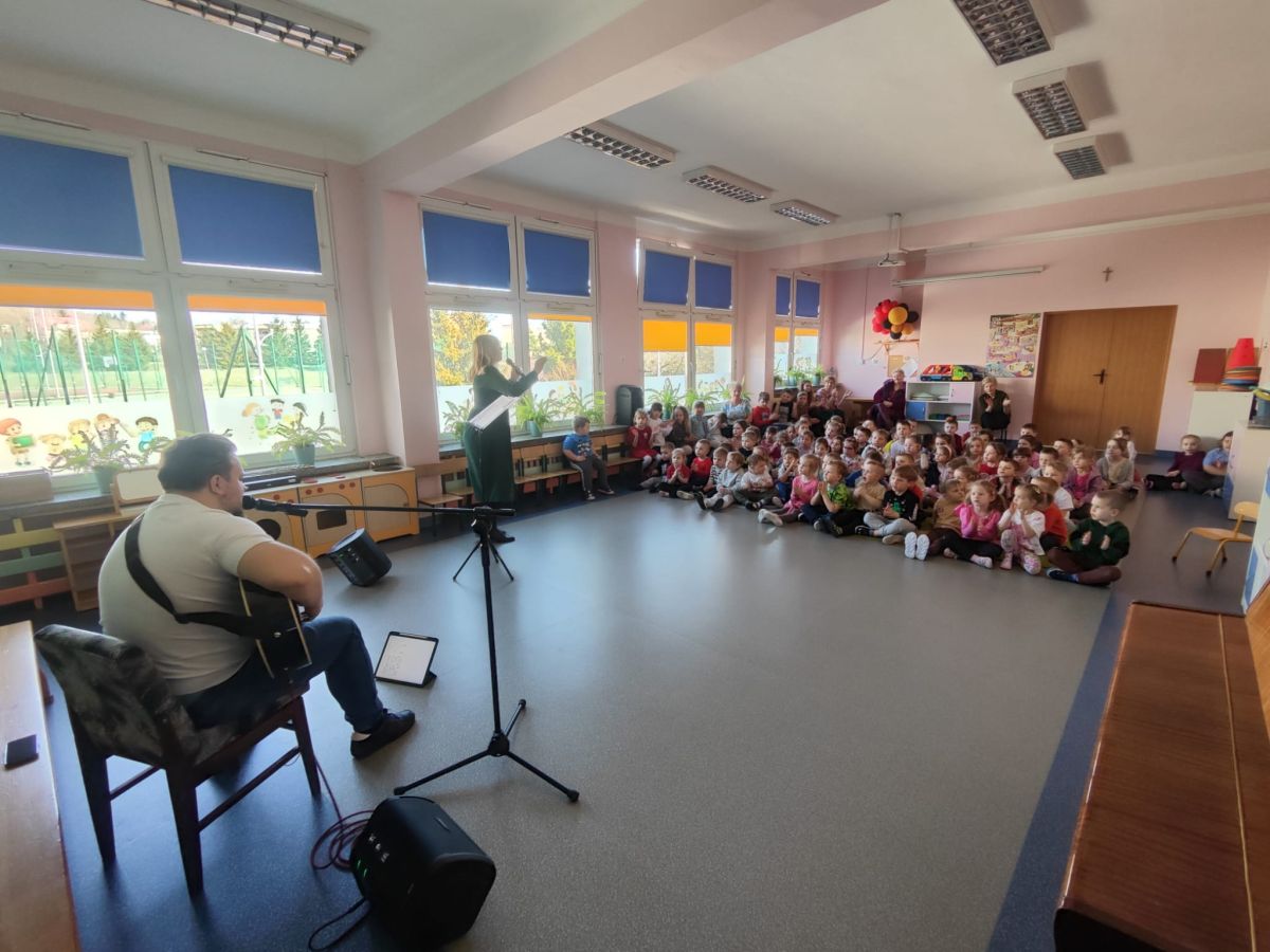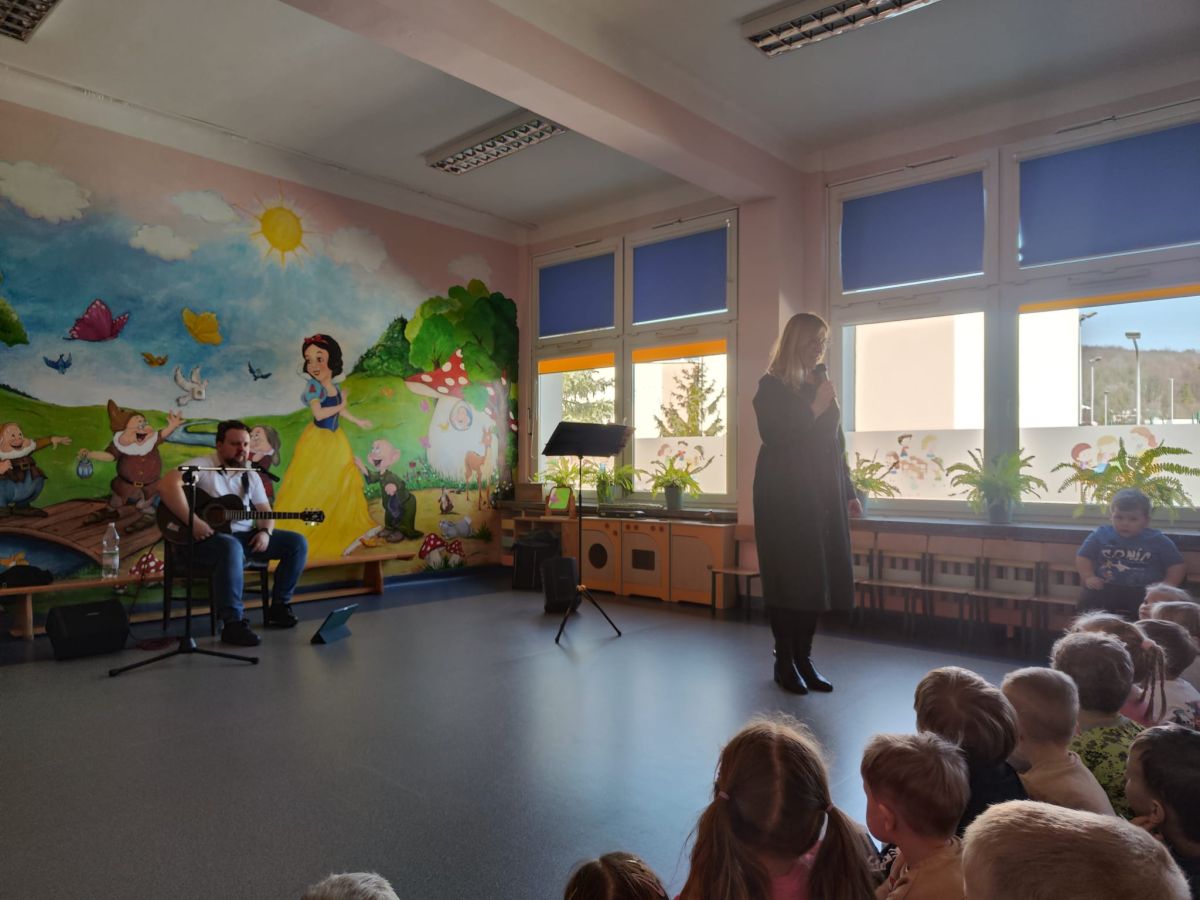 Dzieci z zachwytem wsłuchiwały się w śpiew oraz grę na gitarze akustyczna oraz flecie poprzecznym.