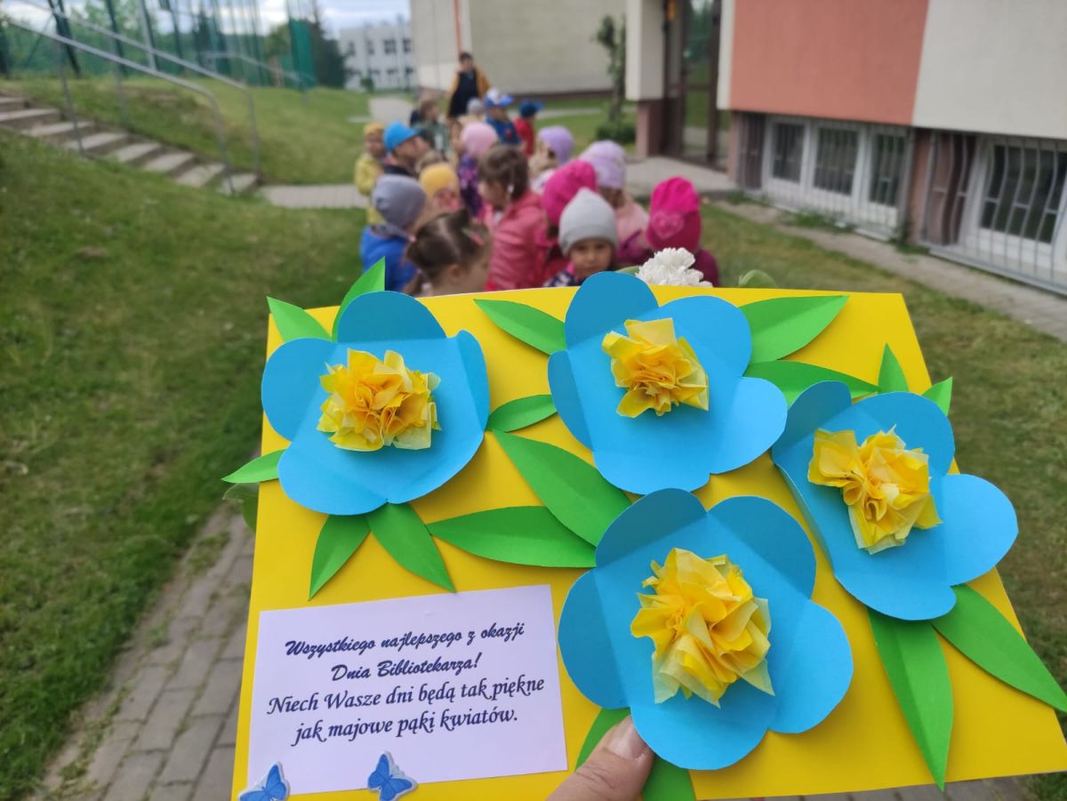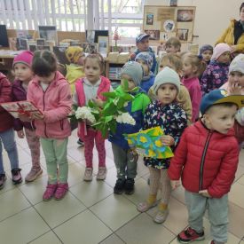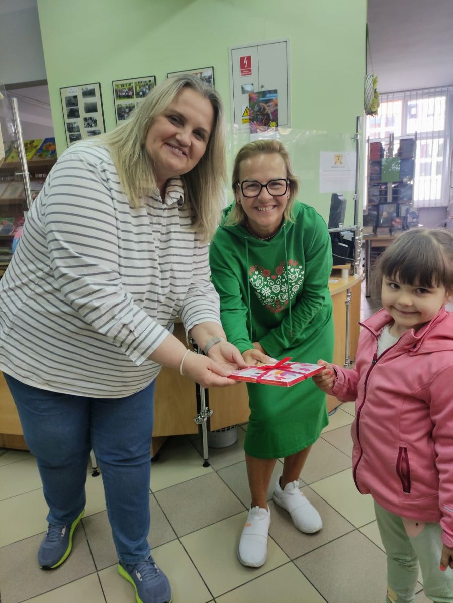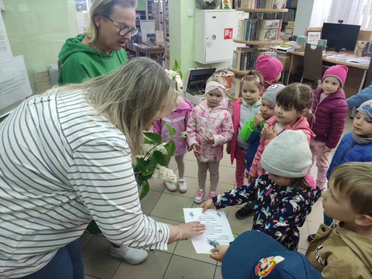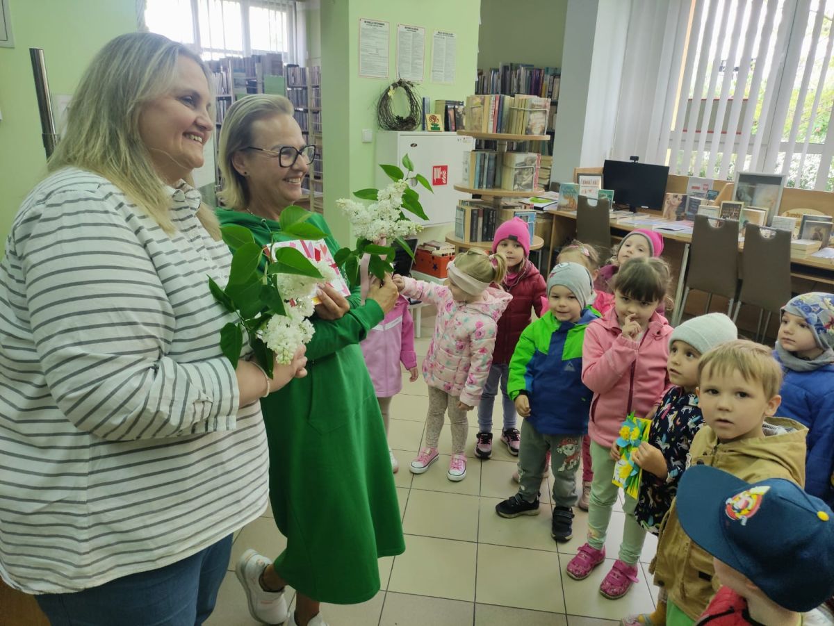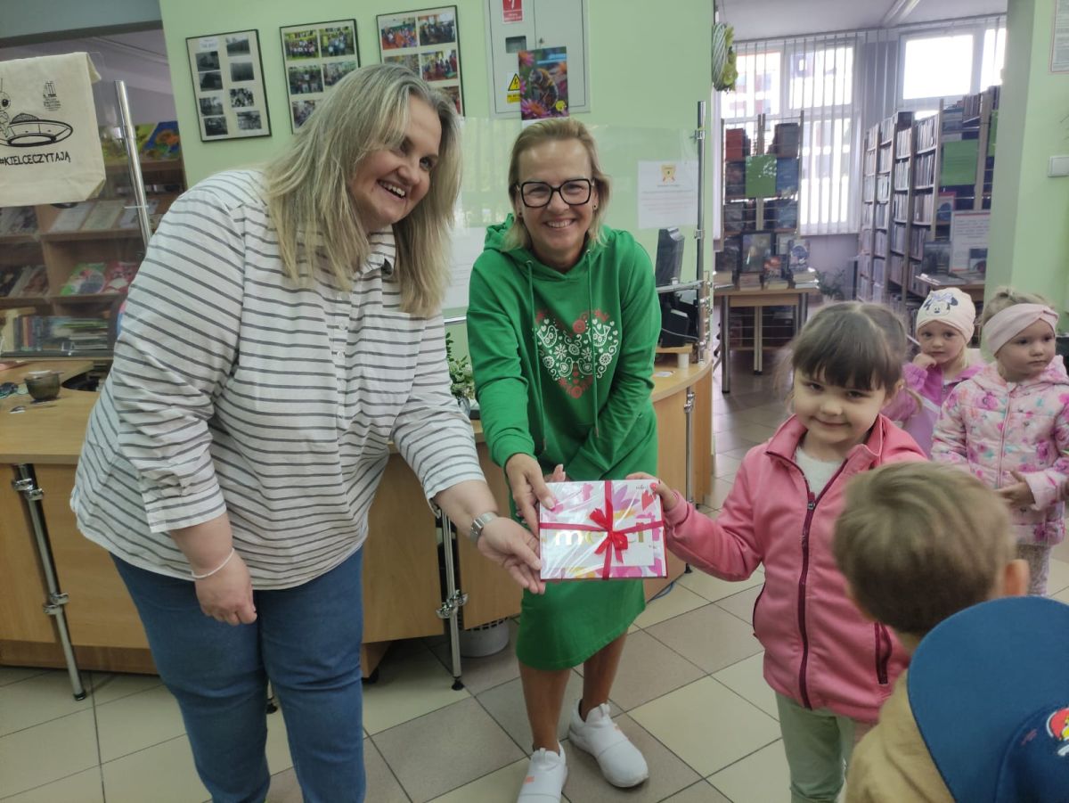 8 maja dzieci z grupy Żabek w imieniu całej społeczności przedszkolnej poszły do Miejskiej Biblioteki Publicznej Filii nr 2, by złożyć życzenia naszym ulubionym Paniom bibliotekarkom z okazji Dnia Bibliotek i Bibliotekarza. Pani Ania i Ewa były bardzo uradowane z wizyty oraz życzeń, pojawiło się również wzruszenie. Przedszkolaki bardzo lubią robić takie miłe niespodzianki i pamiętają o sąsiadach ;)
