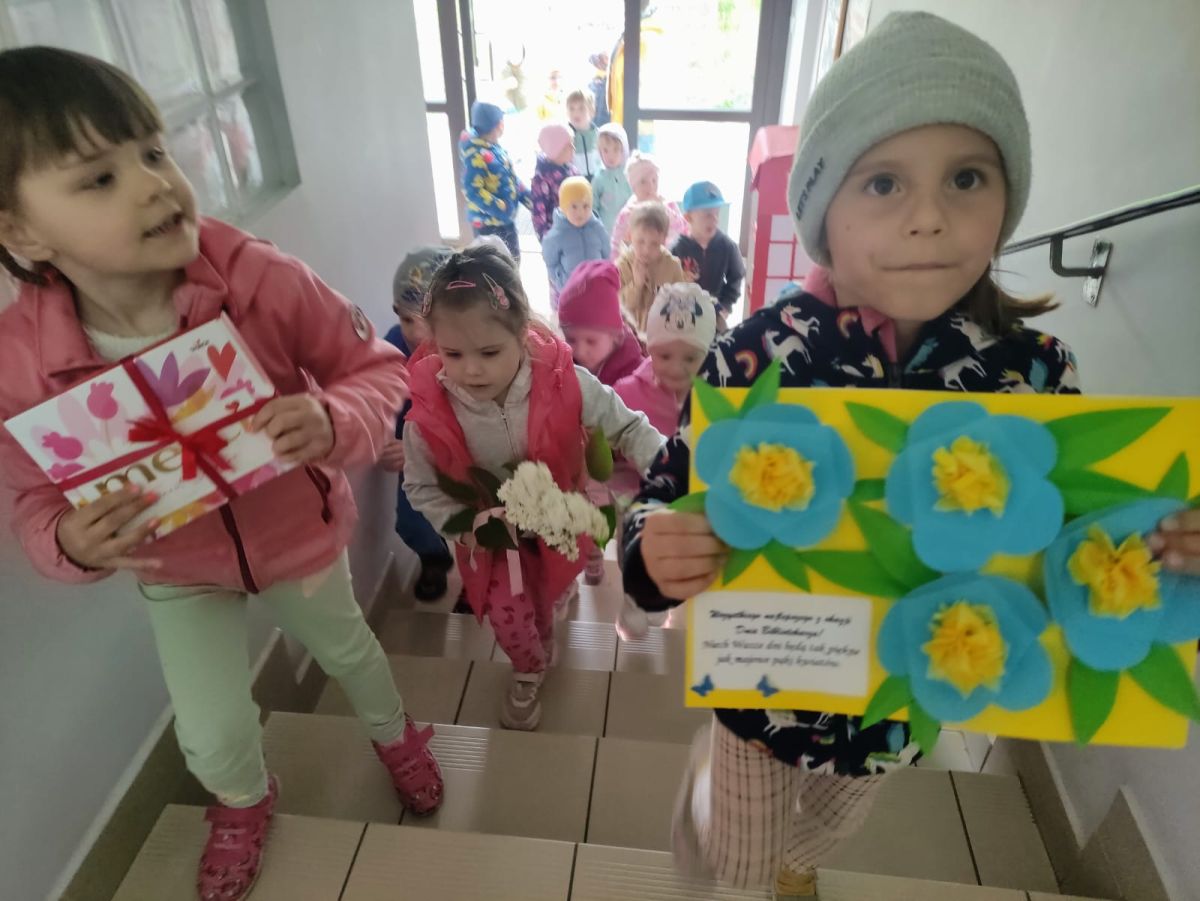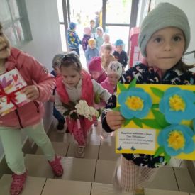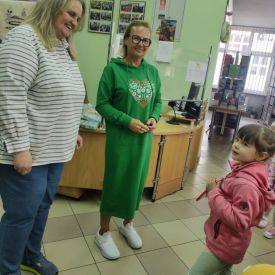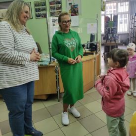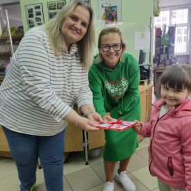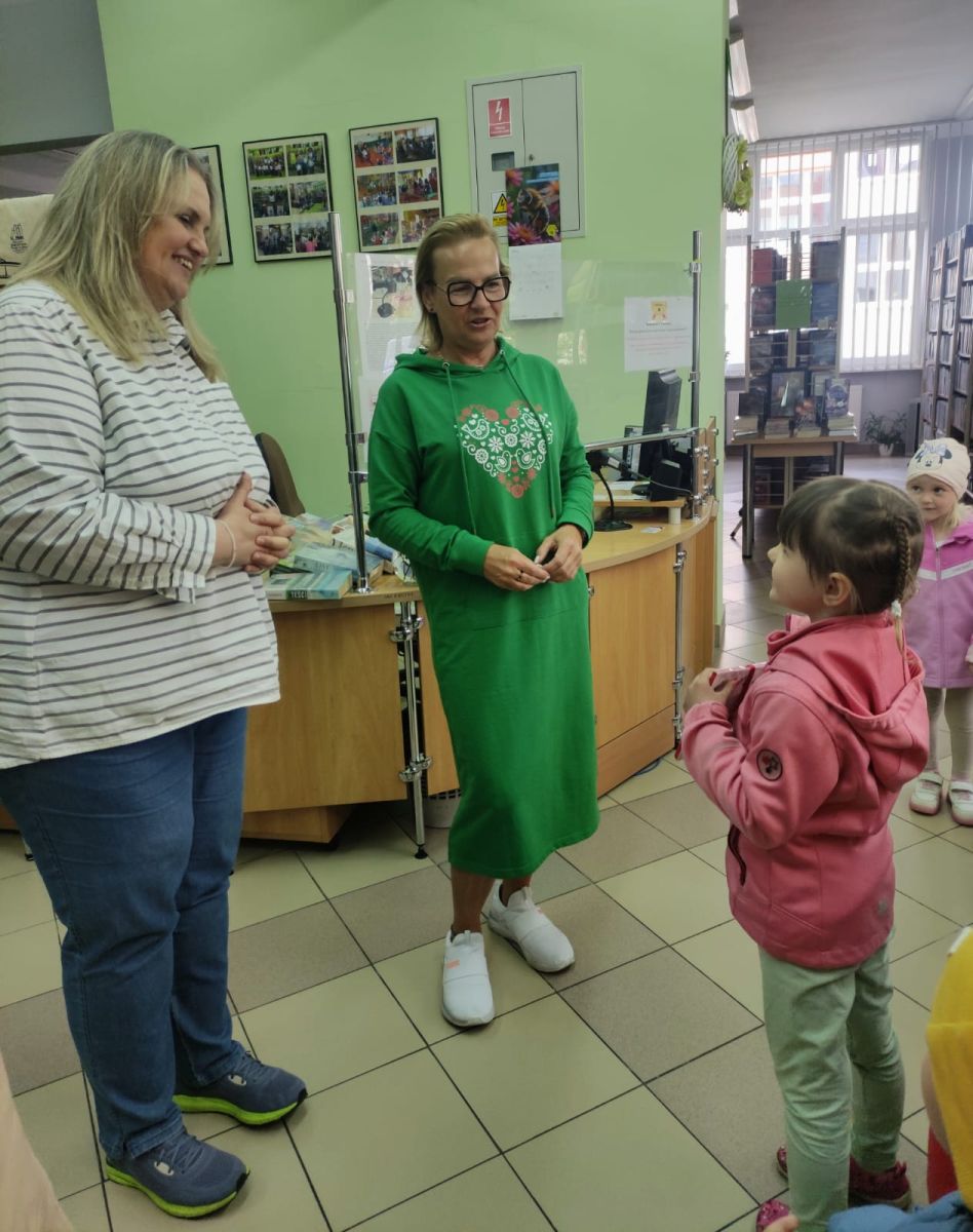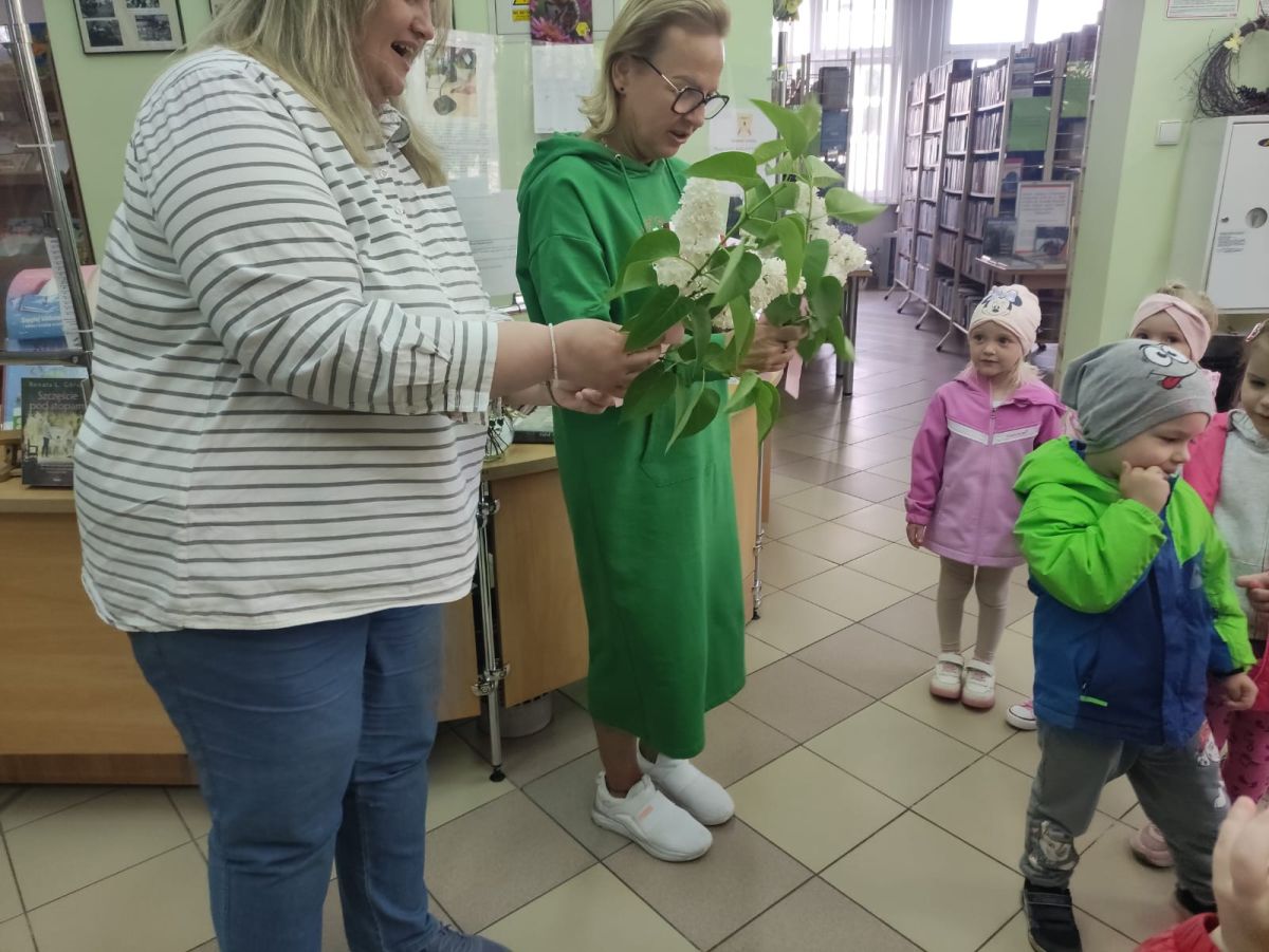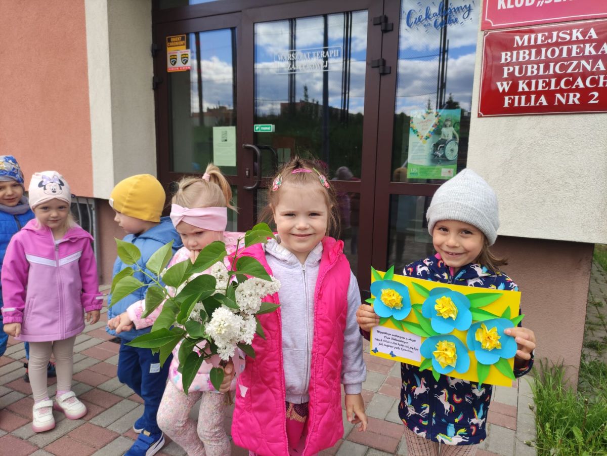 8 maja dzieci z grupy Żabek w imieniu całej społeczności przedszkolnej poszły do Miejskiej Biblioteki Publicznej Filii nr 2, by złożyć życzenia naszym ulubionym Paniom bibliotekarkom z okazji Dnia Bibliotek i Bibliotekarza. Pani Ania i Ewa były bardzo uradowane z wizyty oraz życzeń, pojawiło się również wzruszenie. Przedszkolaki bardzo lubią robić takie miłe niespodzianki i pamiętają o sąsiadach ;)