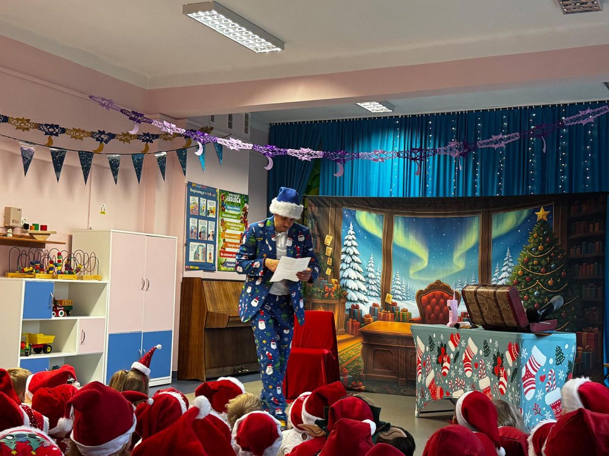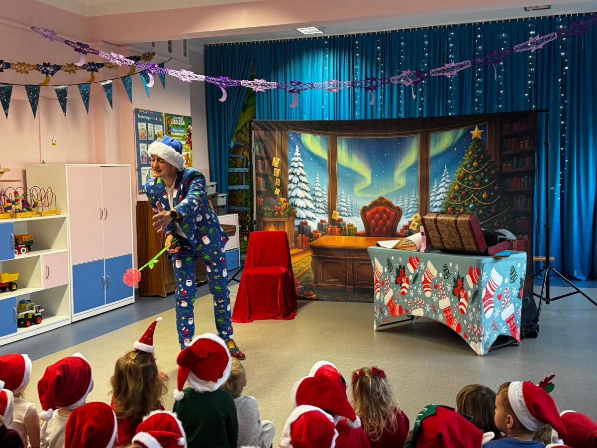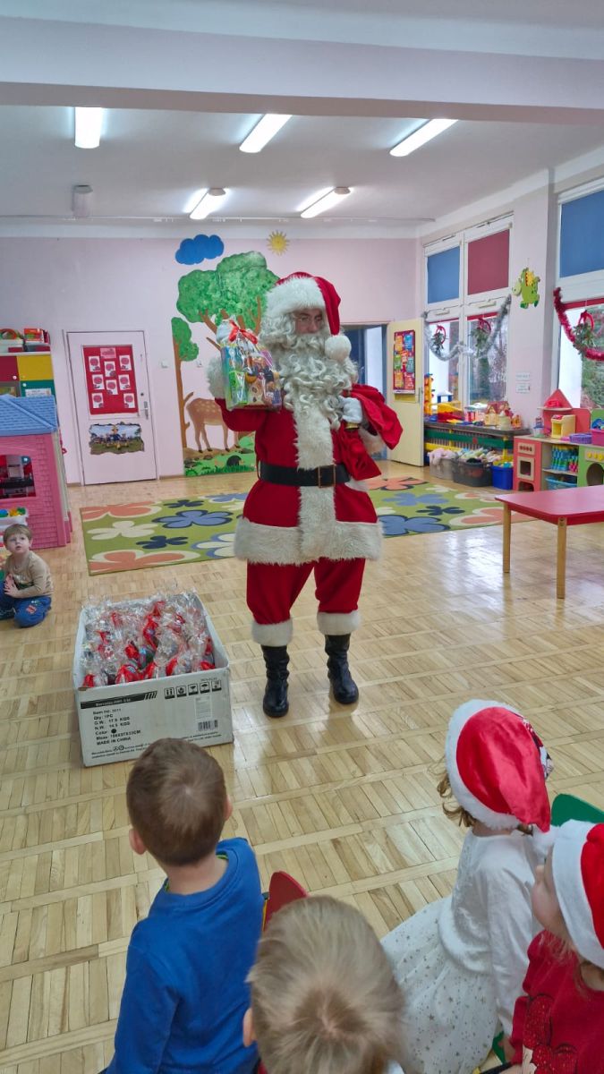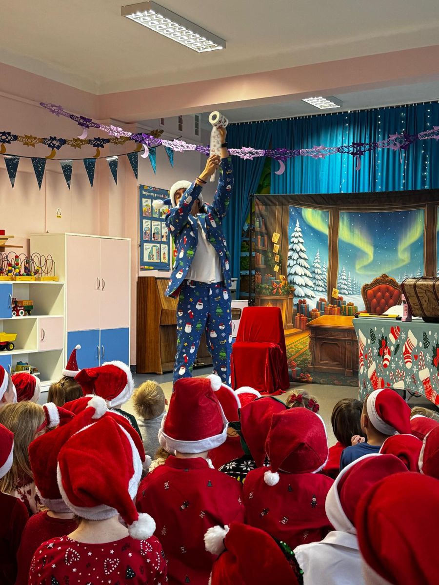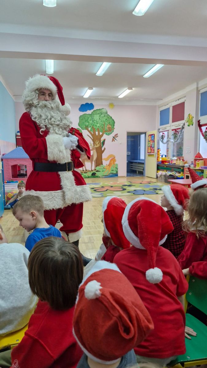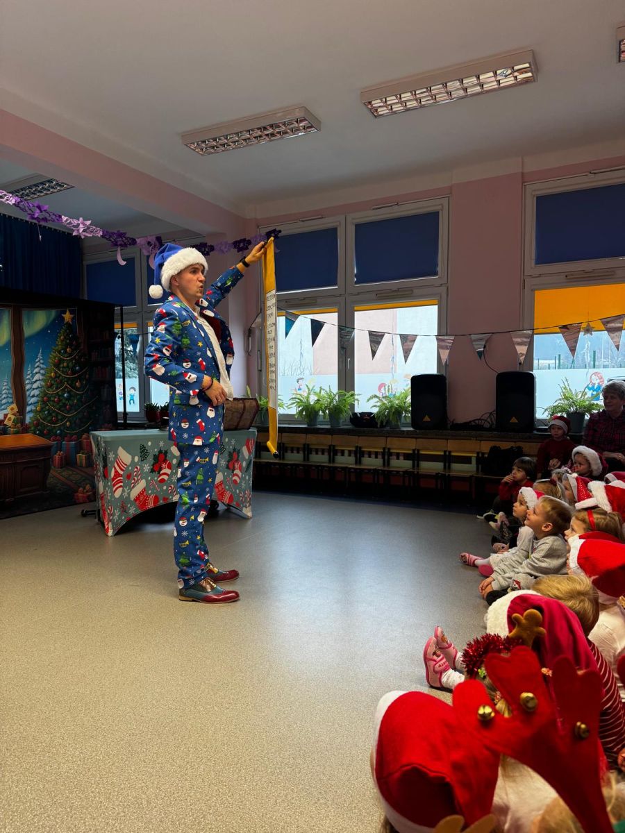 W dniu 9 grudnia 2025 r. odwiedził nasze Przedszkole Mikołaj. Ale zanim doszło do spotkania przedszkolaków z długo oczekiwanym gościem obejrzeliśmy świąteczne przedstawienie pt. "Urlop Mikołaja. Elf Pakuś próbował spakować Mikołaja na jego urlop, co prowadziło do komicznych sytuacji i w rezultacie do zmiany planów Szefa. "Urlop Mikołaja" to spektakl pełen humoru, energii, z efektami specjalnymi i muzyką dostosowaną do dziecięcej publiczności.