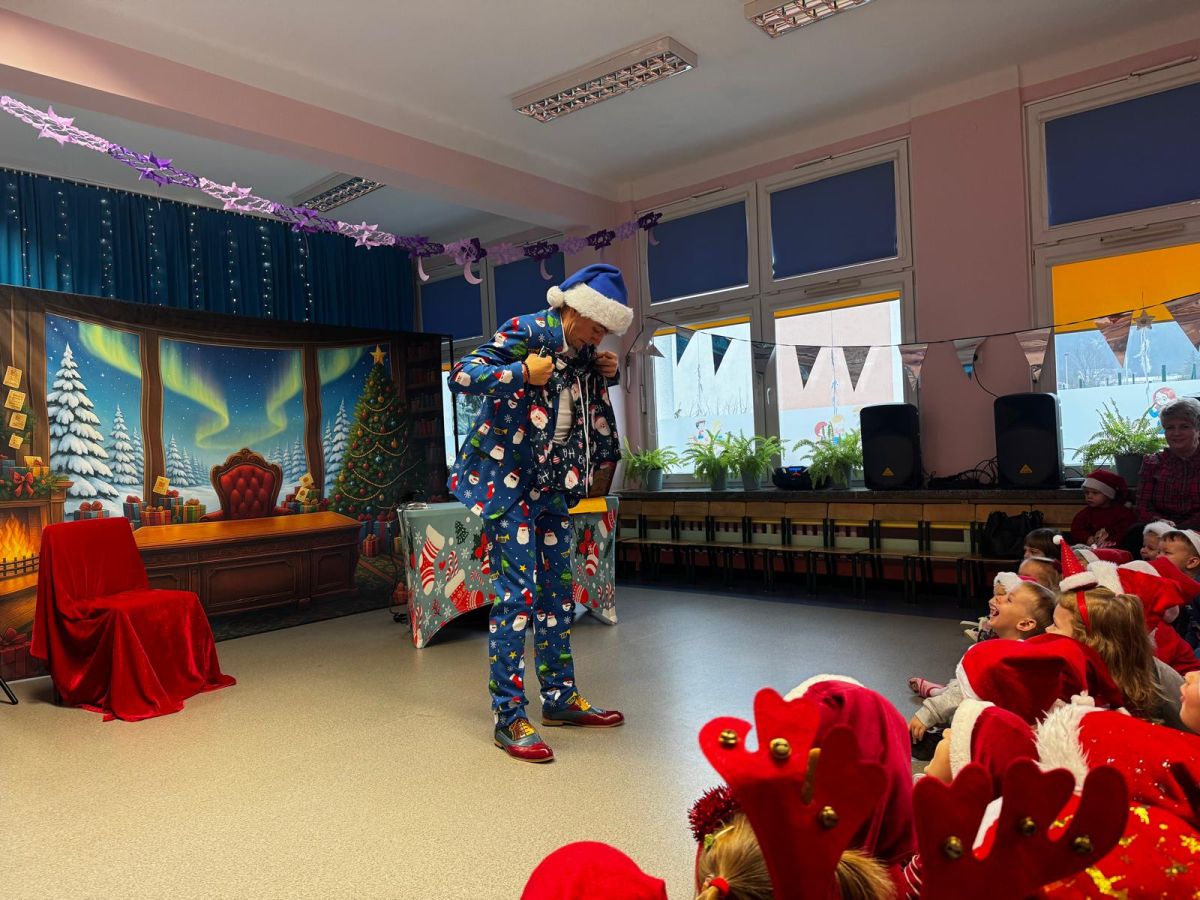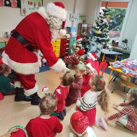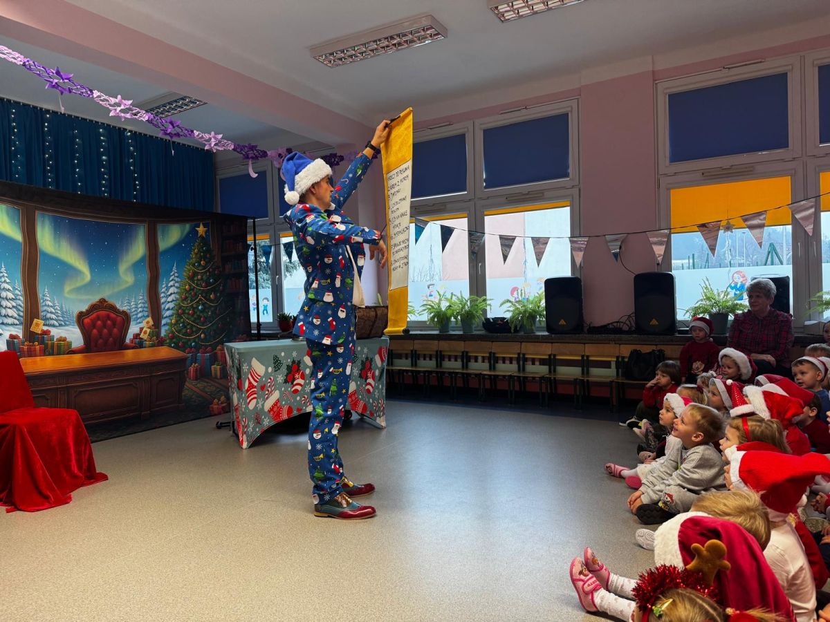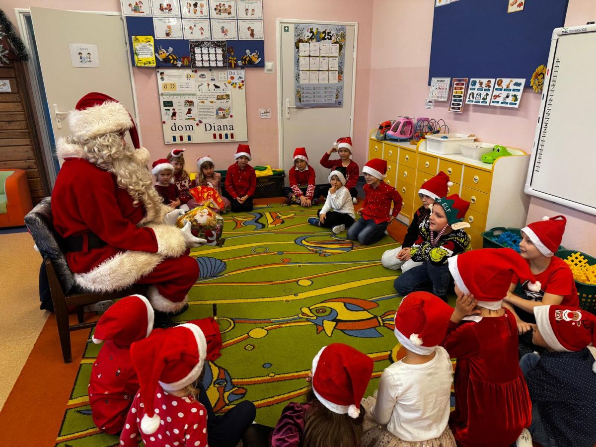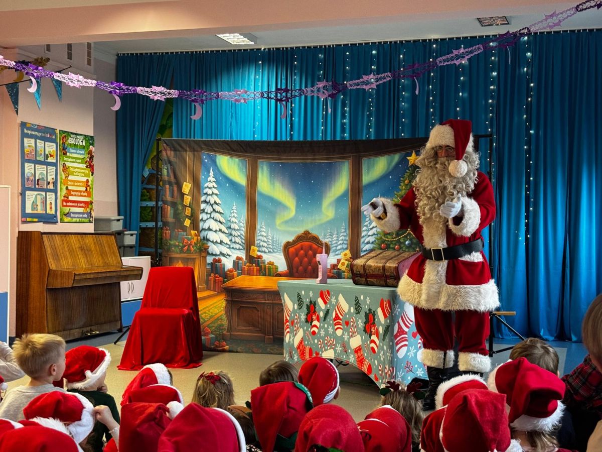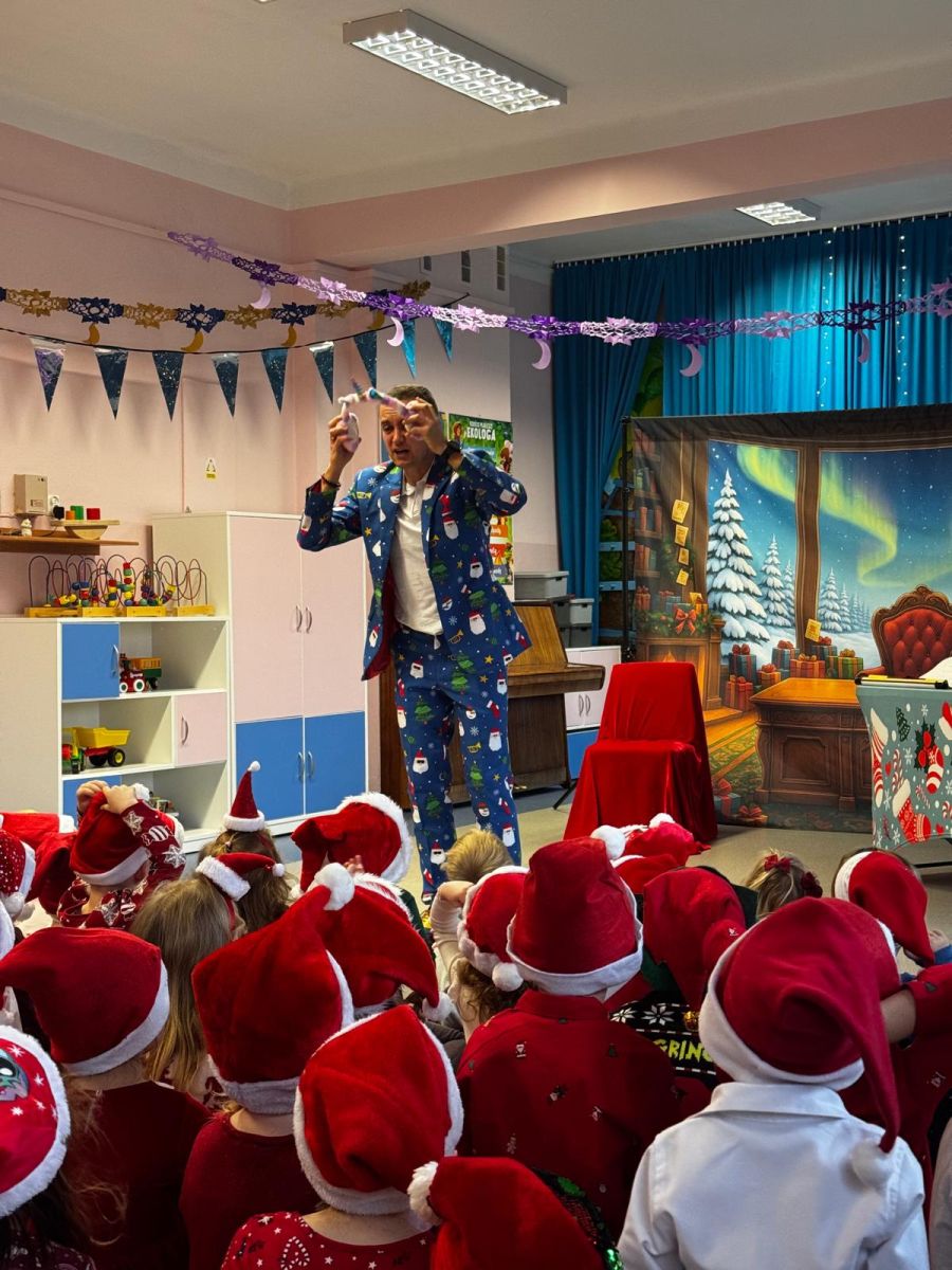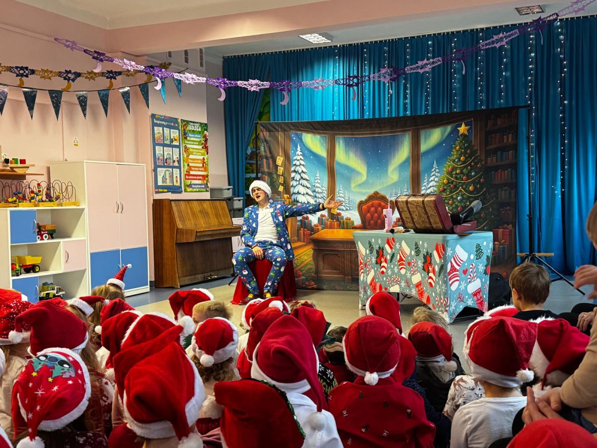 W dniu 9 grudnia 2025 r. odwiedził nasze Przedszkole Mikołaj. Ale zanim doszło do spotkania przedszkolaków z długo oczekiwanym gościem obejrzeliśmy świąteczne przedstawienie pt. "Urlop Mikołaja. Elf Pakuś próbował spakować Mikołaja na jego urlop, co prowadziło do komicznych sytuacji i w rezultacie do zmiany planów Szefa. "Urlop Mikołaja" to spektakl pełen humoru, energii, z efektami specjalnymi i muzyką dostosowaną do dziecięcej publiczności.