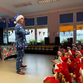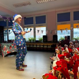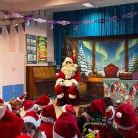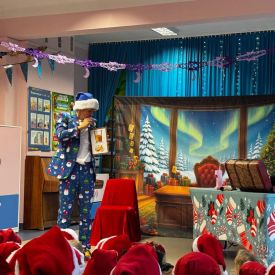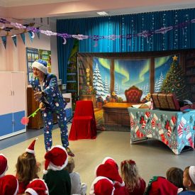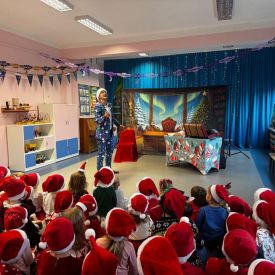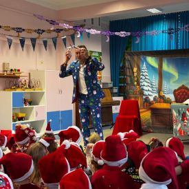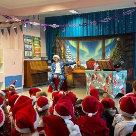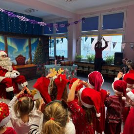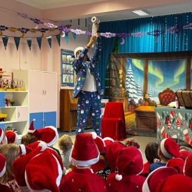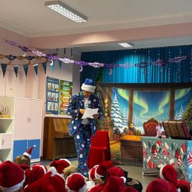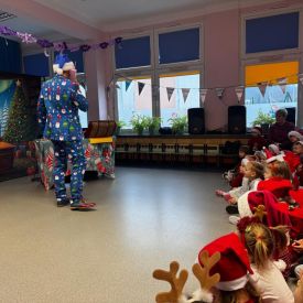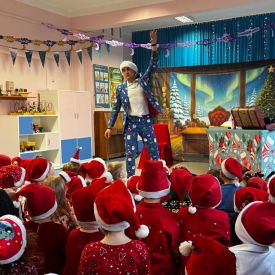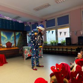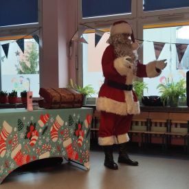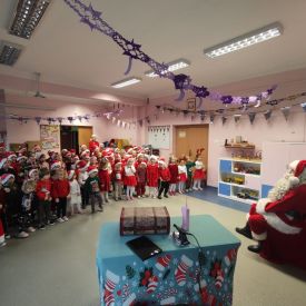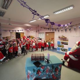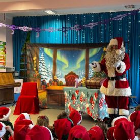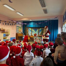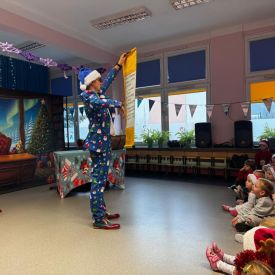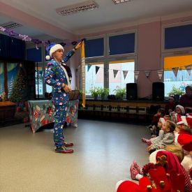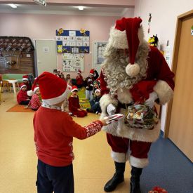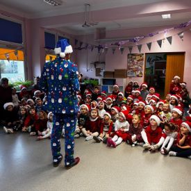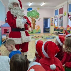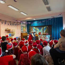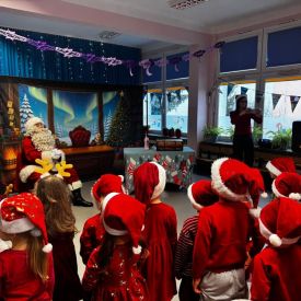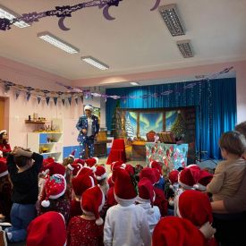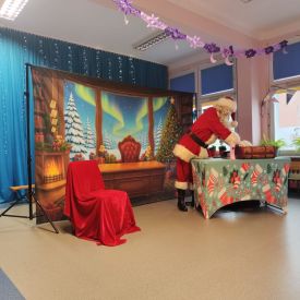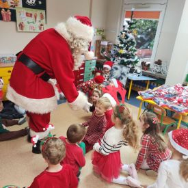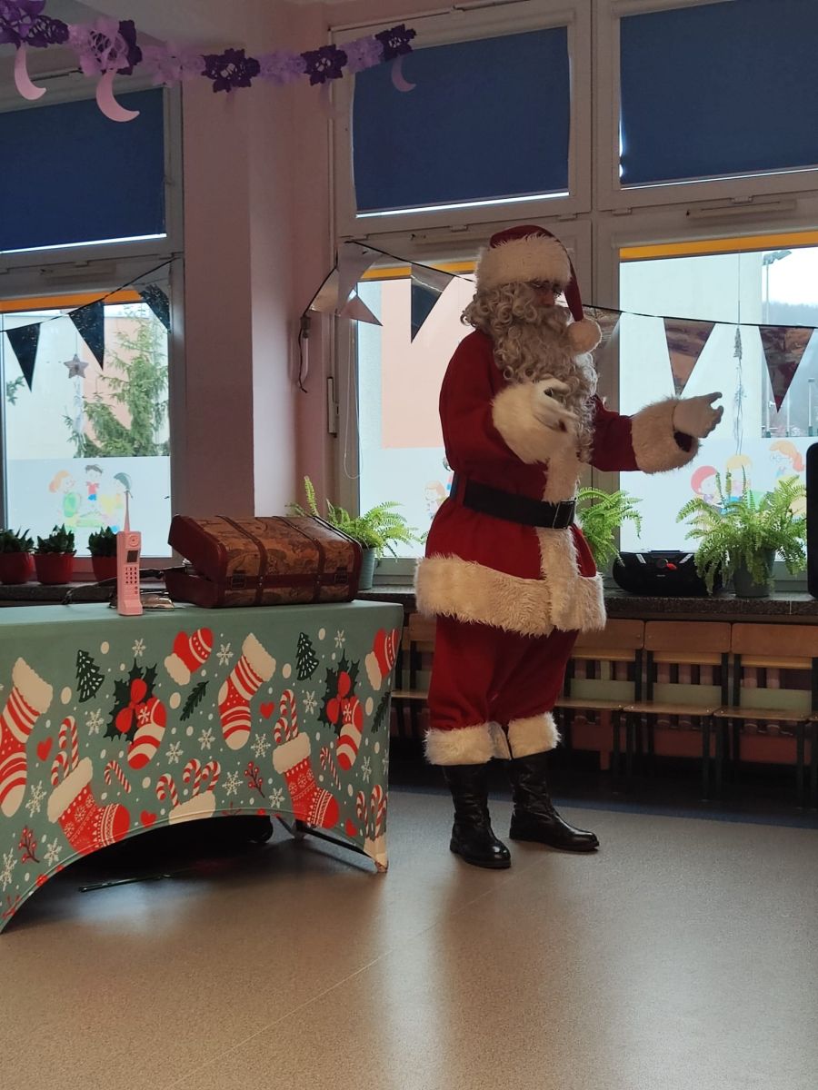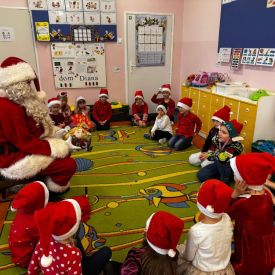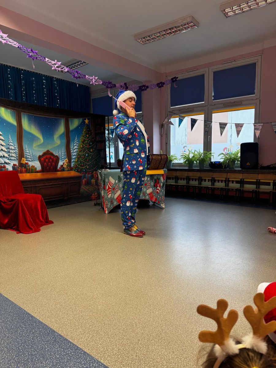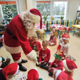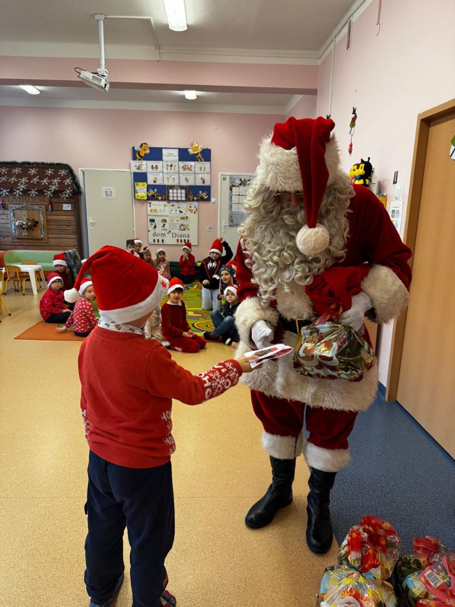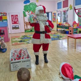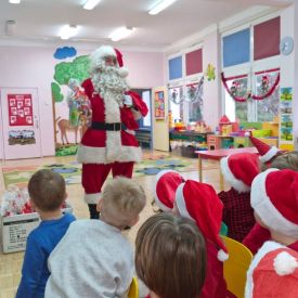 W dniu 9 grudnia 2025 r. odwiedził nasze Przedszkole Mikołaj. Ale zanim doszło do spotkania przedszkolaków z długo oczekiwanym gościem obejrzeliśmy świąteczne przedstawienie pt. "Urlop Mikołaja. Elf Pakuś próbował spakować Mikołaja na jego urlop, co prowadziło do komicznych sytuacji i w rezultacie do zmiany planów Szefa. "Urlop Mikołaja" to spektakl pełen humoru, energii, z efektami specjalnymi i muzyką dostosowaną do dziecięcej publiczności.