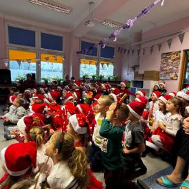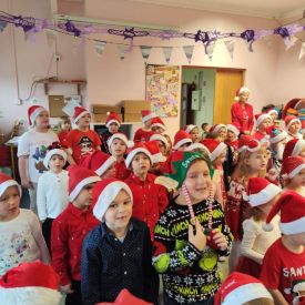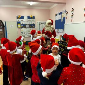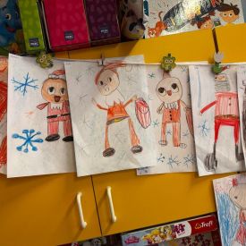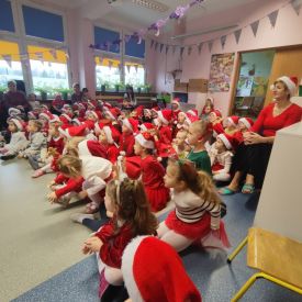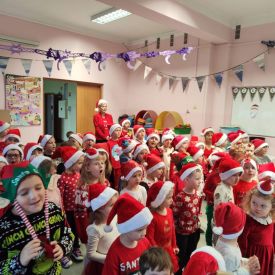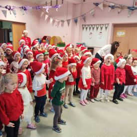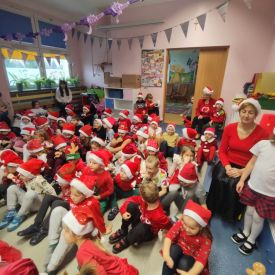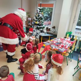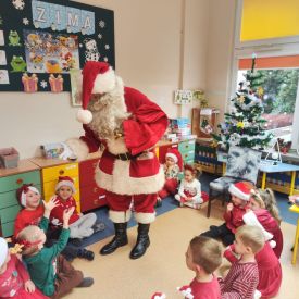Po przedstawieniu wszyscy spotkali się z naszym Gościem, zdolne przedszkolaki zaśpiewały piosenki: "Nasz Mikołaj święty" oraz "Santa Claus". Wreszcie przyszedł czas na wykonywanie pamiątkowych zdjęć, spotkania z Mikołajem w salach oraz wręczanie upominków. Każda grupa przygotowała dla Mikołaja niespodzianki a były to m.in.: recytacja wierszy, rysunki z jego podobizną, laurki. To niewątpliwie będą niezapomniane chwile dla naszych milusińskich.