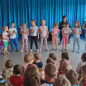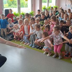7 czerwca nasze przedszkole odwiedzili po raz ostatni w tym roku szkolnym muzycy z Filharmonii Świętokrzyskiej z repertuarem pt. ,,Hakuna Matata. Artyści przenieśli najmłodszych w magiczny świat afrykańskich dźwięków i kultury. Zaprezentowali instrumenty, tańce i zwyczaje Czarnego Lądu a także piosenkę „Krąg życia” z filmu Król Lew. Przedszkolaki poznały także budowę gitary akustycznej oraz ukulele. Na koniec nie zabrakło wspólnych zabaw muzycznych z wykorzystaniem instrumentów perkusyjnych do tradycyjnych afrykańskich melodii.