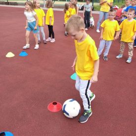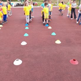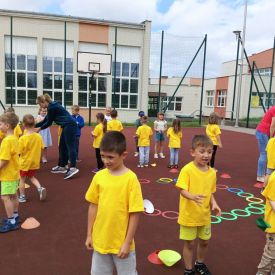 Dnia 07.06.2024r. w ramach realizacji programu Przedszkole Promujące Zdrowie przedszkolaki z grupy Pszczółek i uczniowie z klasy Ib ze Szkoły Podstawowej nr 31 wzięli udział w rozgrywkach sportowych na boisku szkolnym. Zawody rozpoczęły się od wspólnej rozgrzewki. Dzieci uczestniczyły w konkurencjach sportowych takich jak: rzut woreczkiem do obręczy, slalom z między pachołkami, slalom z piłką oraz rakietką do tenisa i woreczkiem. Dzieci były zachwycone możliwością wspólnej zabawy i rywalizacji. Przedszkolaki cieszyły się ze spotkania ze starszymi kolegami (w większości absolwentami naszego przedszkola), a pierwszoklasiści z dumą pomagali młodszym dzieciom.