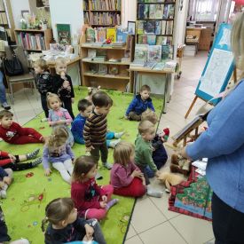 W poniedziałek 11 grudnia dzieci z grupy Biedronek skorzystały z zaproszenia przesympatycznych Pań z Miejskiej Biblioteki Publicznej Filii nr 2 i wybrały się dziarskim krokiem na zajęcia z Tupciem Chrupciem. Maluchy wysłuchały przy wykorzystaniu teatrzyku kamishibai opowieści "Święta Tupcia Chrupcia", rozwiązywały zimowe zagadki a także wypożyczyły do przedszkola książki o tematyce świątecznej, które będą czytać wraz ze swoimi paniami podczas zajęć.