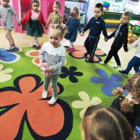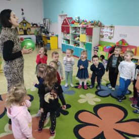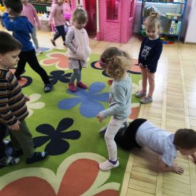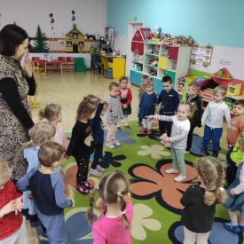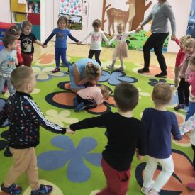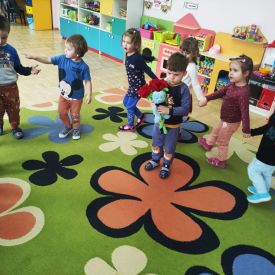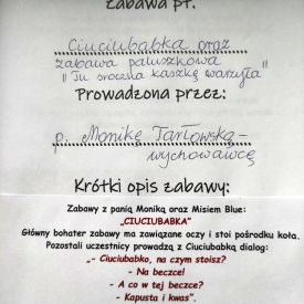 Dzieci z grupy Biedronek wraz z Małym Misiem - Blue oraz wychowawcami zapraszały w przedszkolne progi od stycznia do marca rodziców, babcie, panie kucharki i inne osoby, by stworzyć międzypokoleniowy zabawownik w ramach realizowanego projektu "Mały Miś w Świecie Wielkiej Literatury". Księga zabaw zawiera opis, zdjęcia zabaw, w które bawili się zaproszeni goście, kiedy byli mali. Maluchy doskonale bawiły się z zaproszonymi osobami, z wielkim entuzjazmem uczestniczyły w zaproponowanych zabawach, a były to m.in. : "Kolory", "Stoi Różyczka", "Ciuciubabka", "Chodzi lisek...", „Balonik”, „Kółko graniaste”, ”Berek chodzony”, „Ance – kabance”, "Mam chusteczkę haftowaną", "Ojciec Wirgiliusz", "Klasy", "Raz, dwa, trzy Baba Jaga patrzy", "Krowo jakie mleko dajesz?", "Ciepło- zimno", "Gąski, gąski do domu", "Stary niedźwiedź", "Płyną łodzie z bananami" i wiele, wiele innych zabaw. Wspólne spotkania miały na celu rozwijanie integracji międzypokoleniowej oraz wspomaganie rozwoju sprawności ruchowej za pomocą zabaw i ćwiczeń ruchowych.