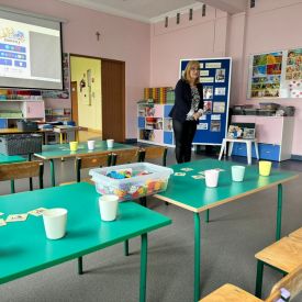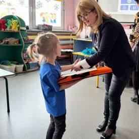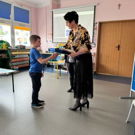 Pani dyrektor wręczając nagrody i dyplomy wszystkim dzieciom, gratulowała im wspaniałego wyniku.