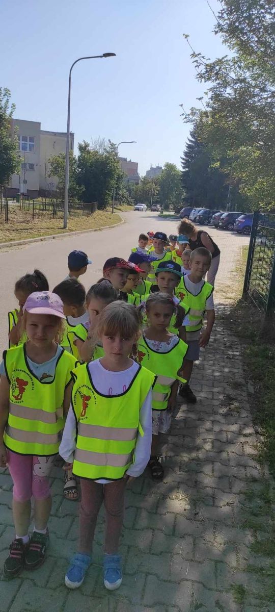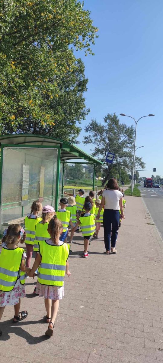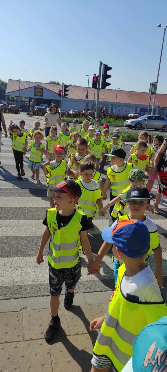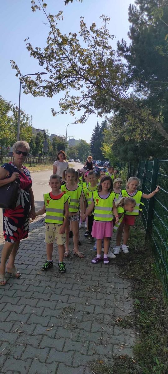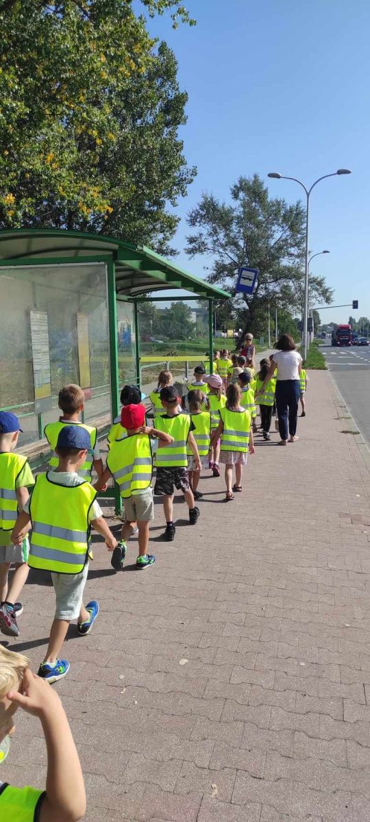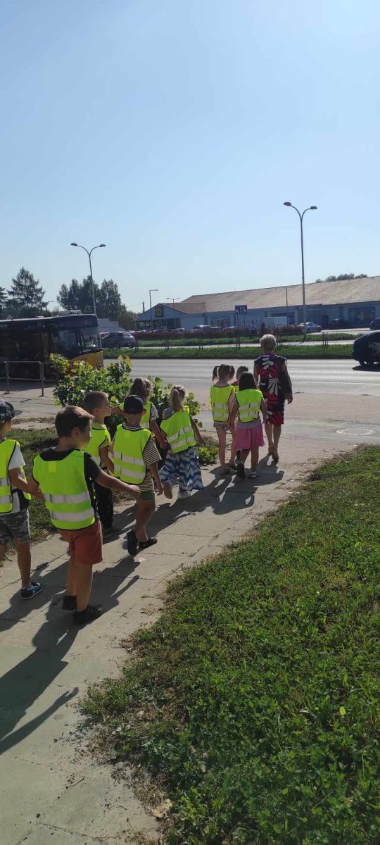 11.09.2023 r. dzieci z grupy IV ,,Pszczółki” i V ,,Sówki” ubrane w kamizelki odblaskowe