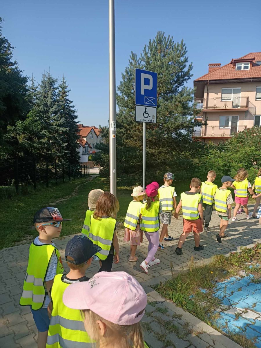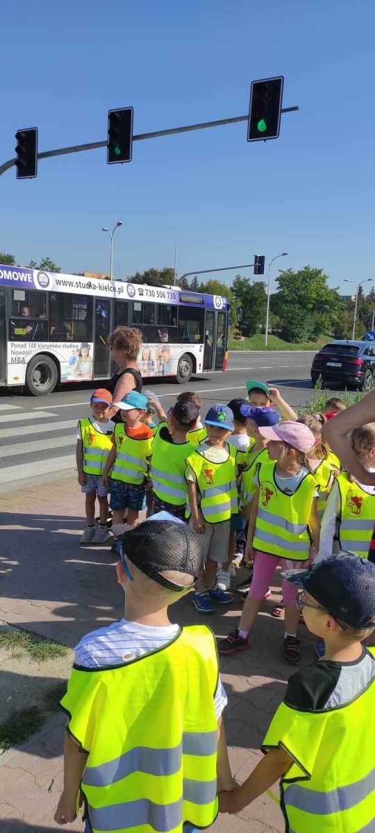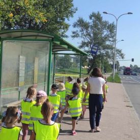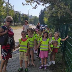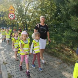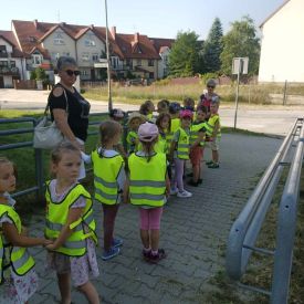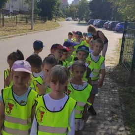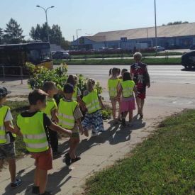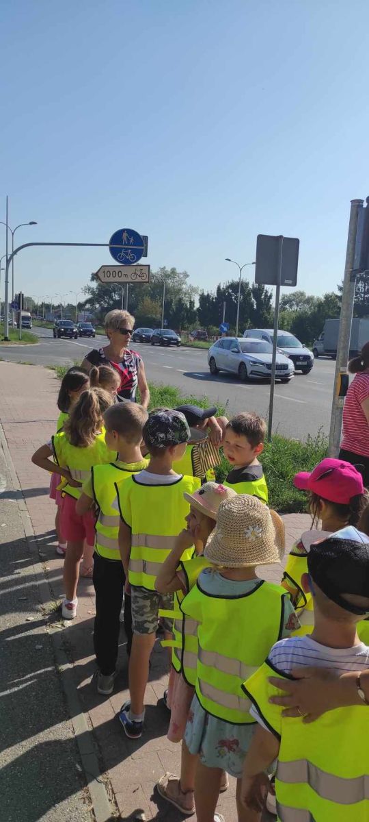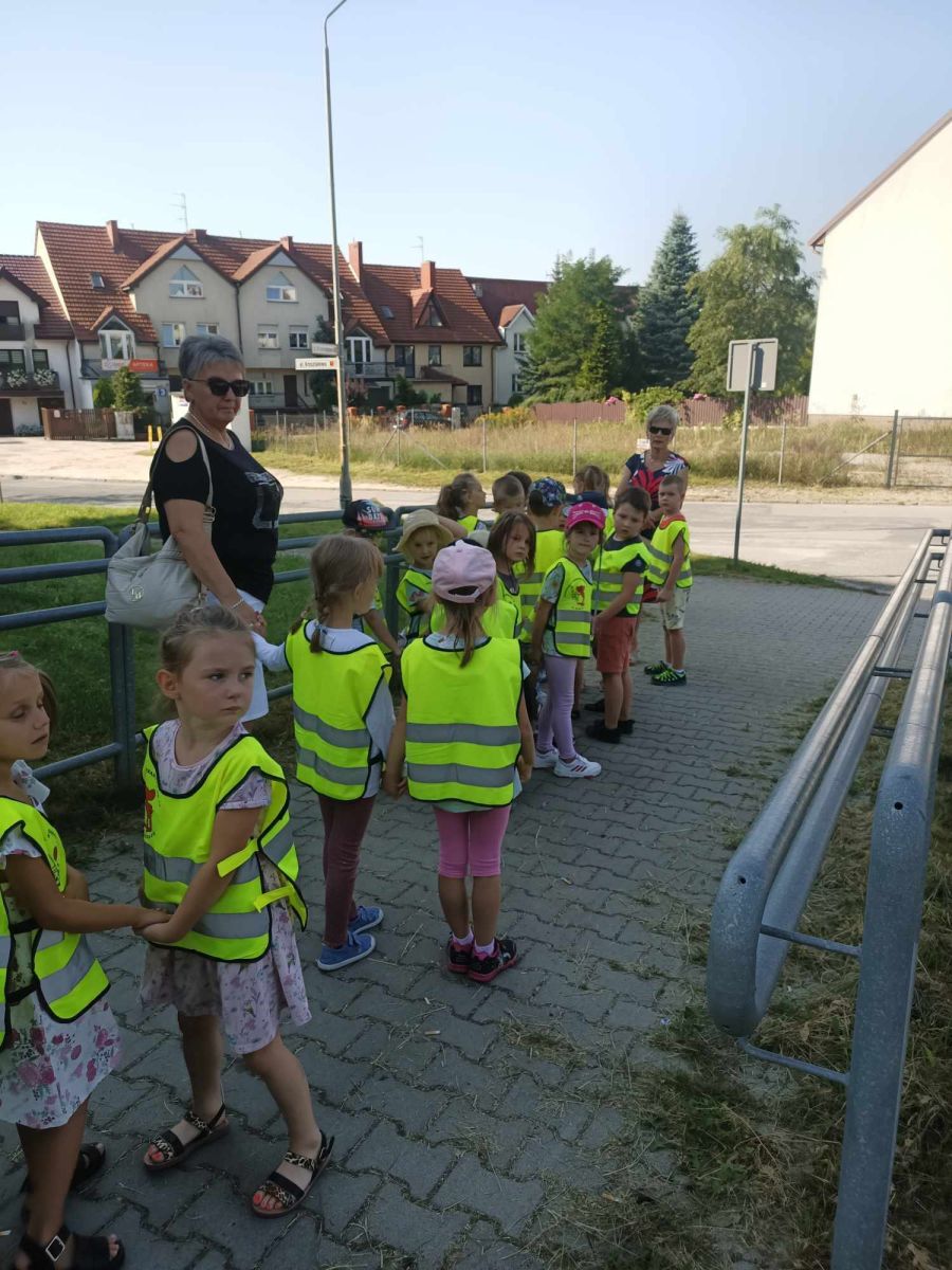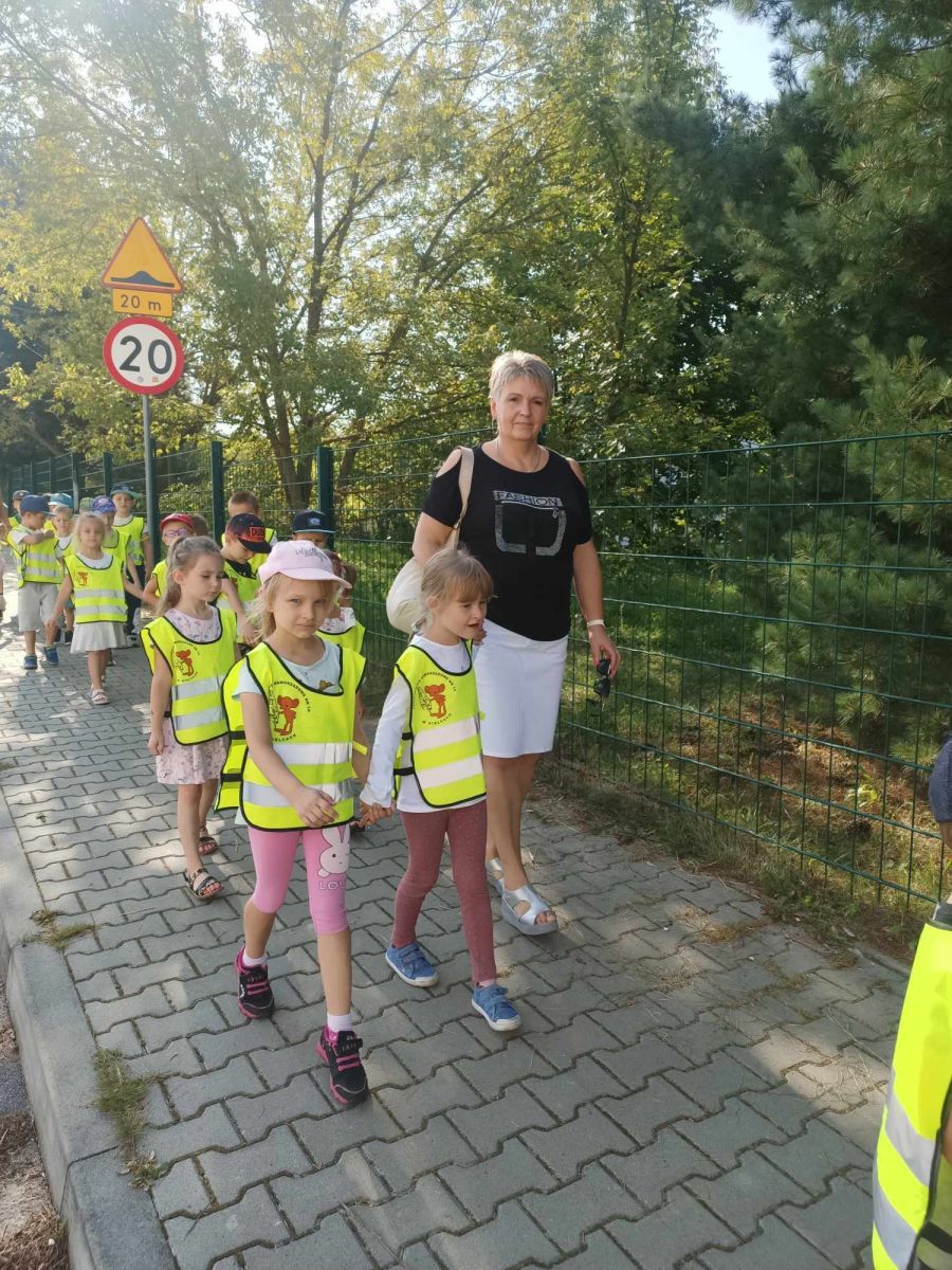 11.09.2023 r. dzieci z grupy IV ,,Pszczółki” i V ,,Sówki” ubrane w kamizelki odblaskowe