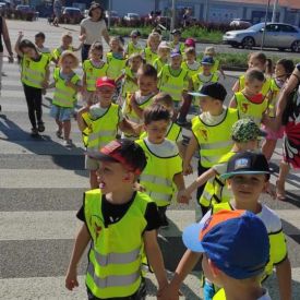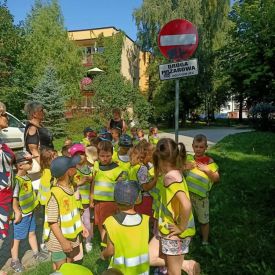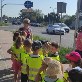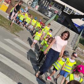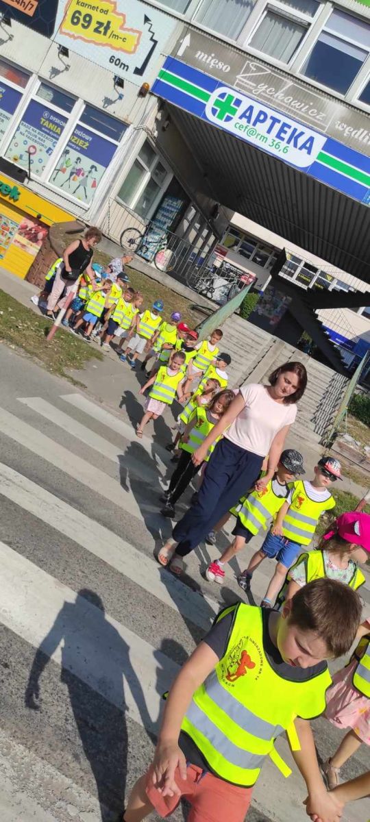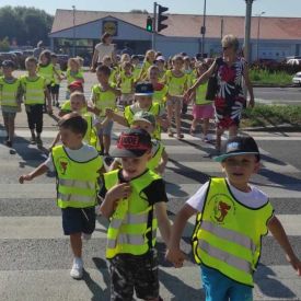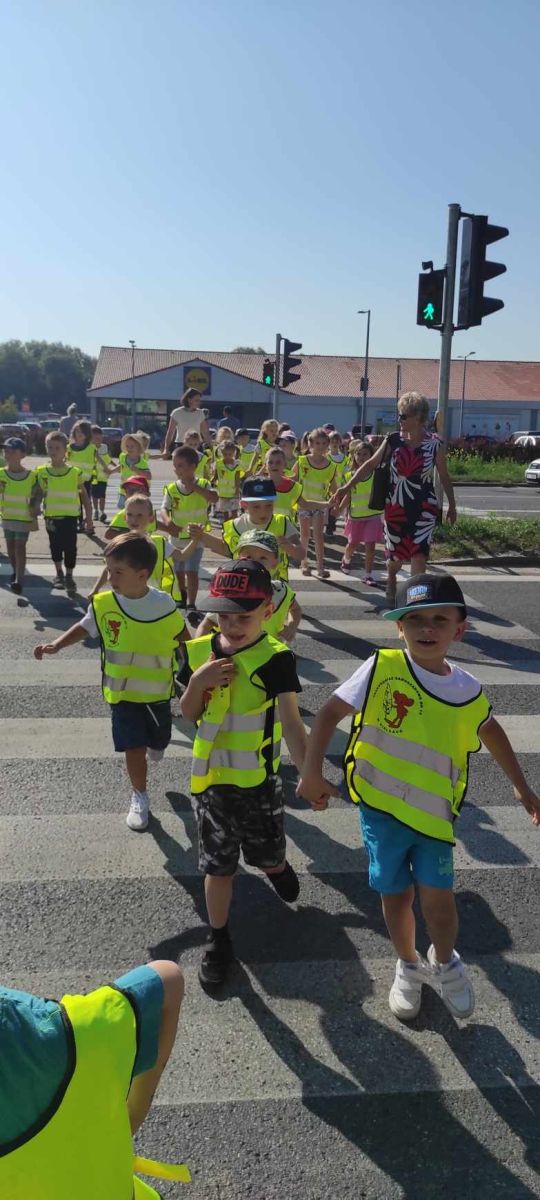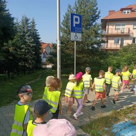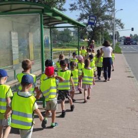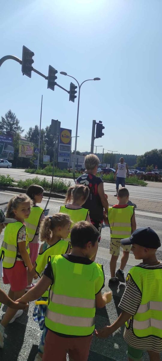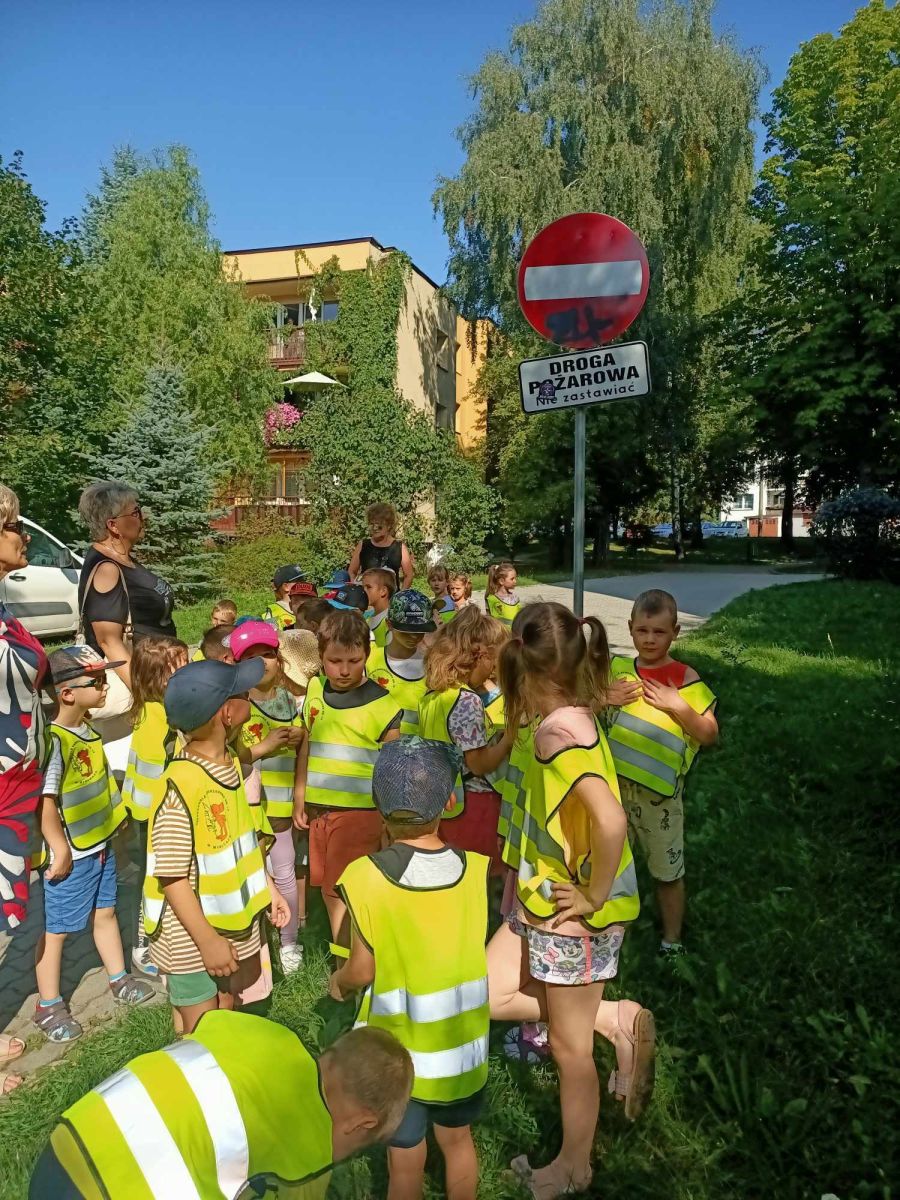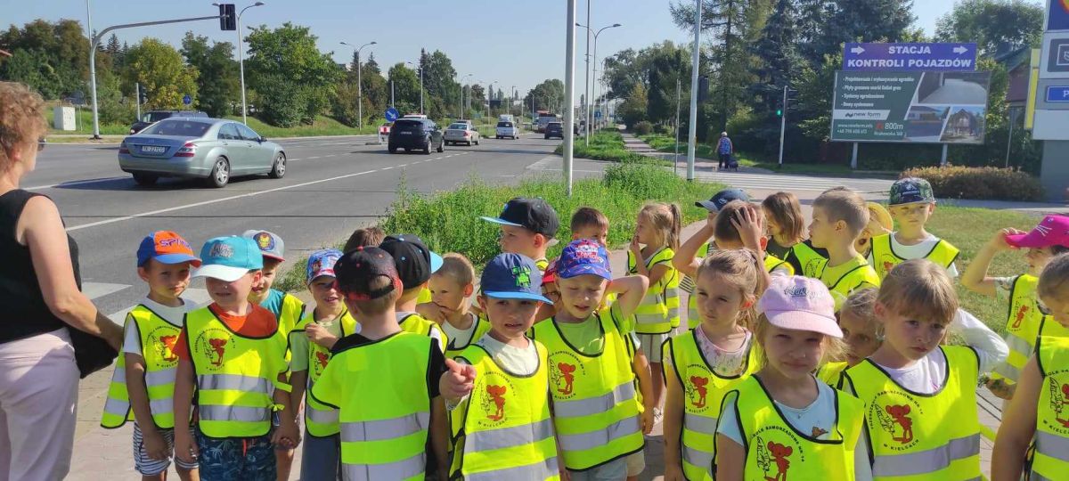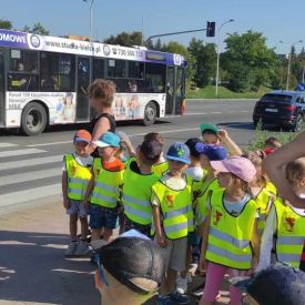 11.09.2023 r. dzieci z grupy IV ,,Pszczółki” i V ,,Sówki” ubrane w kamizelki odblaskowe