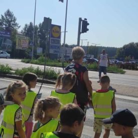wybrały się na edukacyjny spacer na pobliskie skrzyżowanie z sygnalizacją świetlną.