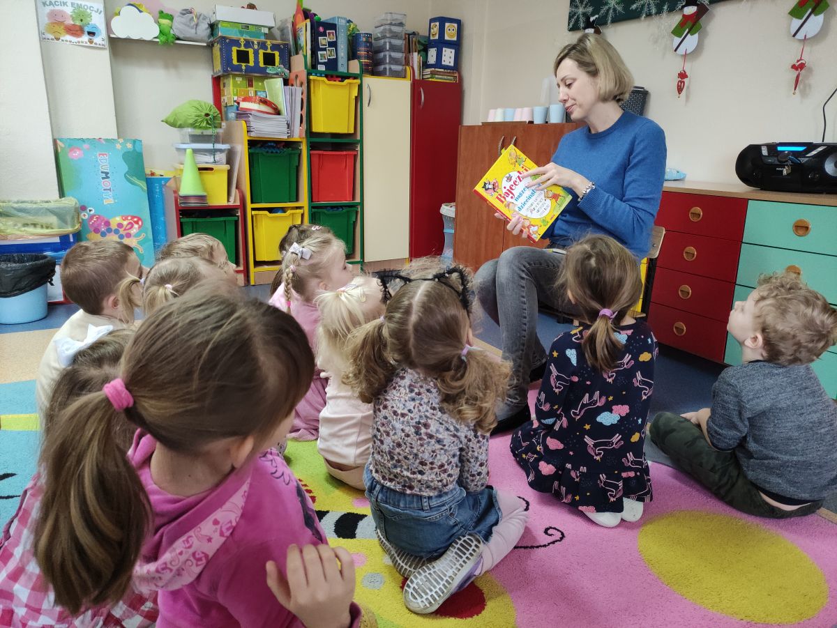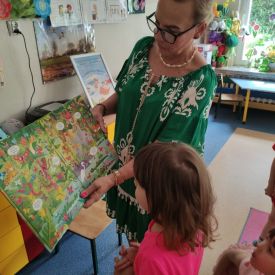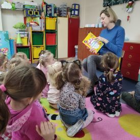 W grupie Żabek przez cały rok szkolny odbywały się czytanki tzw. Kwadransik z bajką. Przedszkolaki słuchały bajek, opowiadań, wierszy czytanych między innymi przez.: rodziców, babcie, panie bibliotekarki, panią sekretarkę, panią pedagog, psycholog...