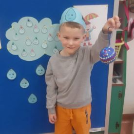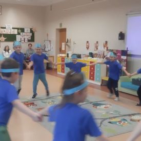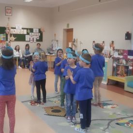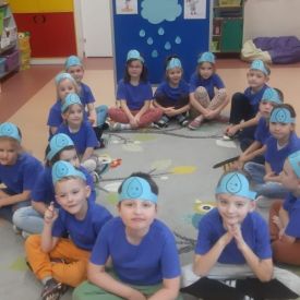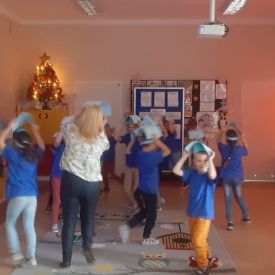 12.12.2023 r. w grupie Sówki odbyły się zajęcia otwarte, których tematem były „Muzyczne zabawy z deszczem”. Rodzice mieli możliwość obserwowania swoich dzieci podczas zajęć, ich aktywności, koncentracji uwagi oraz zasobu wiadomości i umiejętności. Dzieci chętnie i aktywnie uczestniczyły w proponowanych formach działalności, a były to: zabawa z piosenką „Deszcz” z wykorzystaniem kartek z chmurami, zabawa rytmiczna o charakterze improwizacyjnym „Burza” , taniec „Chlap- chlap”. Największe zainteresowanie i entuzjazm wzbudziła orkiestra. Sówki znakomicie poradziły sobie z zagraniem „burzy” na instrumentach do utworu Hopak P. Czajkowskiego.
