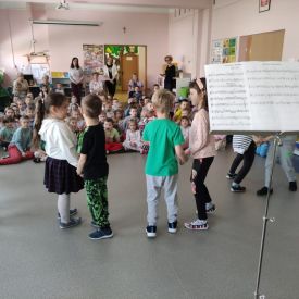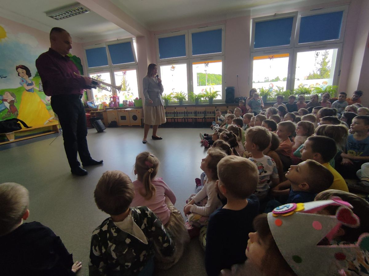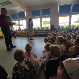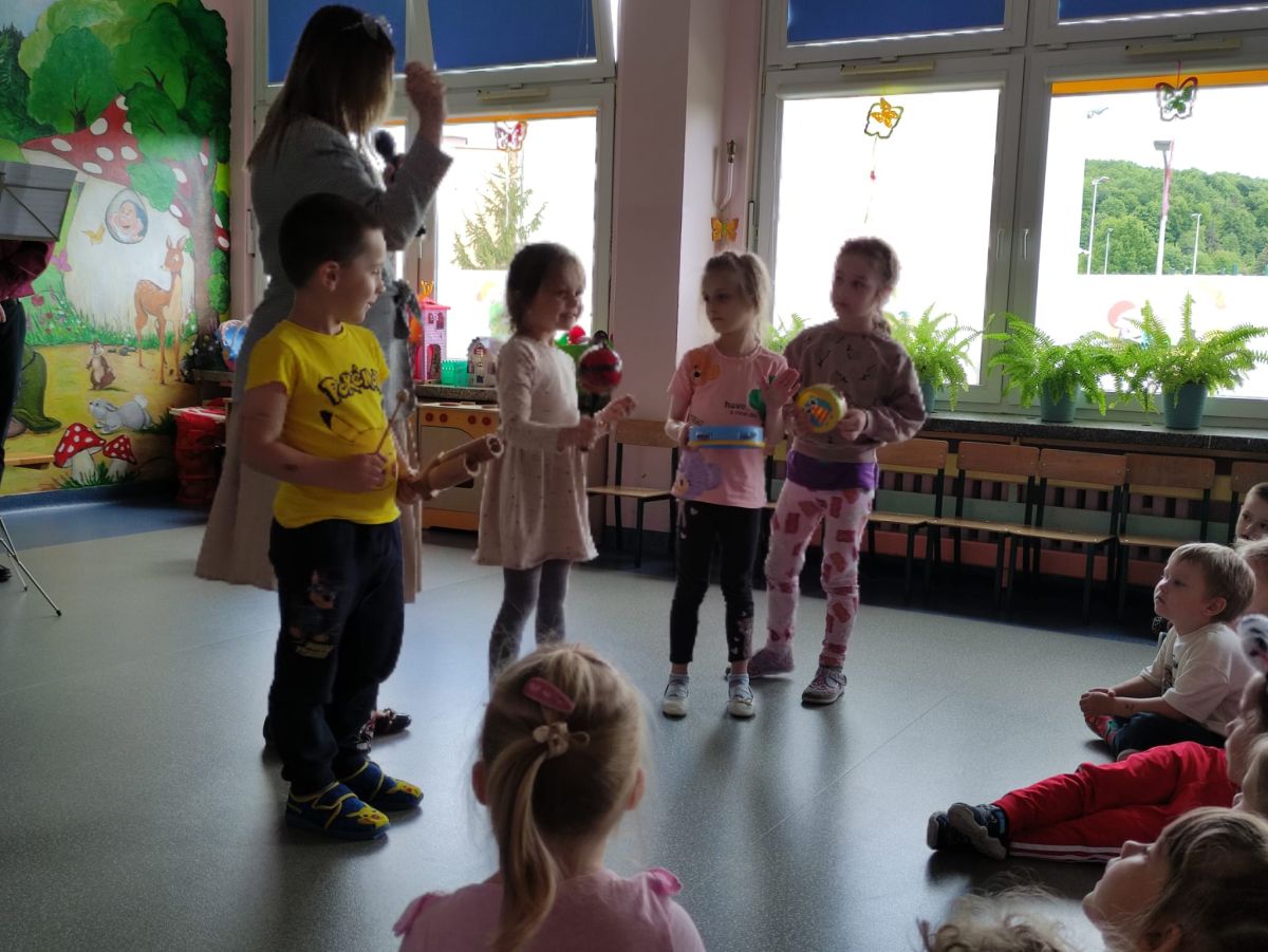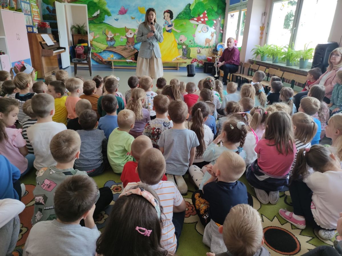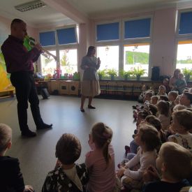 12 maja przedszkolaki wzięty udział w koncercie muzycznym pt. "Czary ze złota" w wykonaniu muzyków Filharmonii Świetokrzyskiej. Tym razem przedszkolaki poznały brzmienie trąbki. Dzieci usłyszały przeboje muzyki klasycznej, rozrywkowej, a nawet piosenki w letnim klimacie.