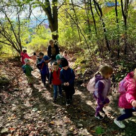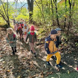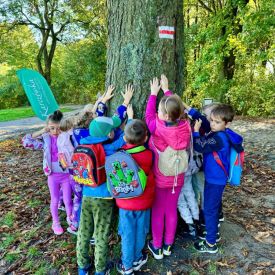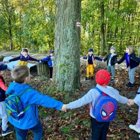 Dnia 10.10.2024 r. w ramach obchodów Dnia Drzewa dzieci z grup III Motylki, IV Pszczółki i V Sówki wybrały się na pieszy rajd na Karczówkę. Po drodze przedszkolaki rozpoznawały i nazywały różne gatunki drzew. W czasie zabaw badawczych na wzgórzu Karczówki dzieci dotykały, wąchały i przytulały się do drzew oraz zbierały kolorowe liście i inne dary jesieni. Największą atrakcją dla przedszkolaków był pomiar taśmą centymetrową obwodu drzewa w celu określenia jego wieku. Po zabawach odbył się piknik na łonie natury a następnie podziwianie Kielc z tarasu widokowego.