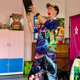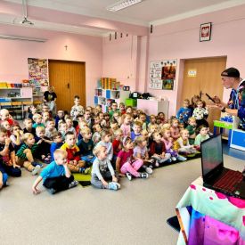 W piątek 11.10.2024 r. przedszkolaki obejrzały teatrzyk pt: „Cyber Edek” w wykonaniu Agencji Artystycznej „Mat-Art”. Dzięki przedstawieniu dzieci dowiedziały się jakie zagrożenia niesie ze sobą zbyt długie i częste korzystanie z urządzeń takich jak telefon, laptop, tablet czy konsola do gier. Przedszkolaki poznały lepsze sposoby spędzania wolnego czasu np. gra w piłkę na boisku czy granie w gry planszowe.