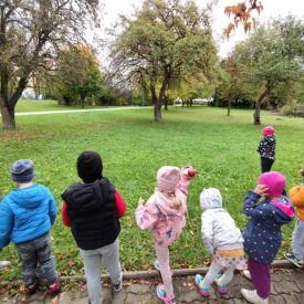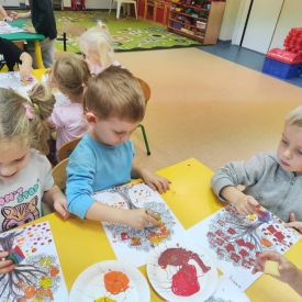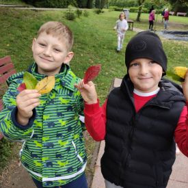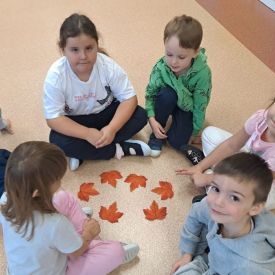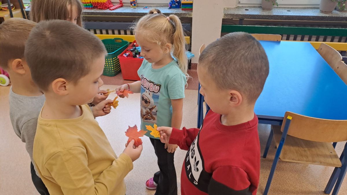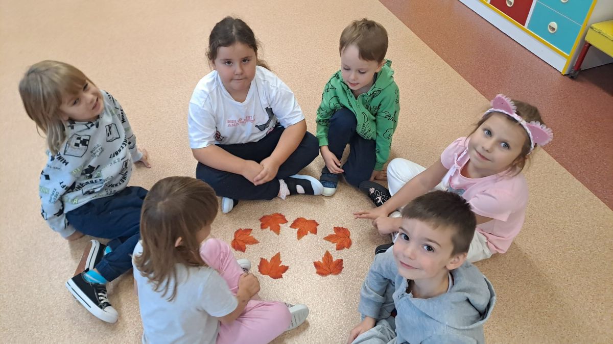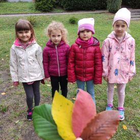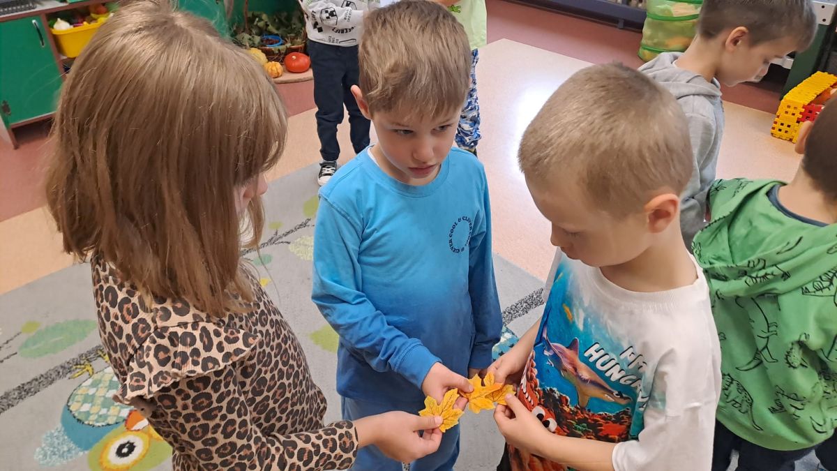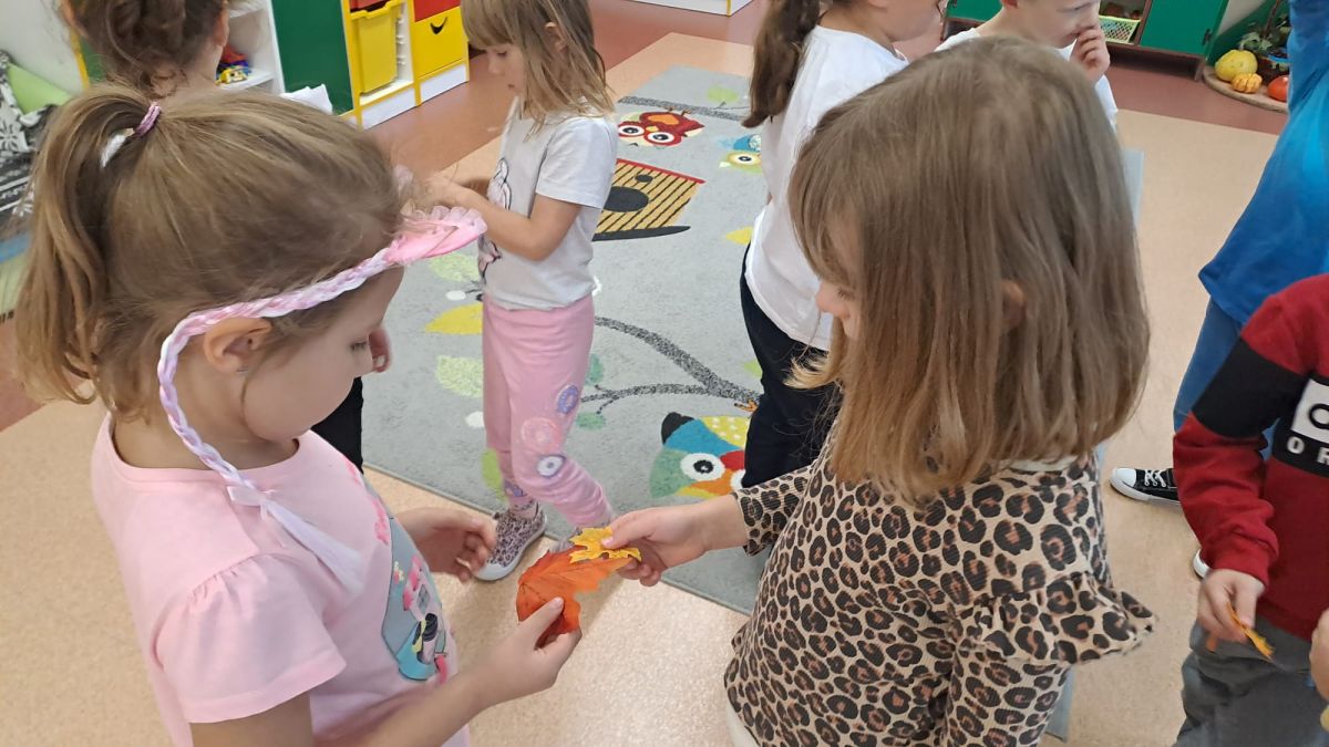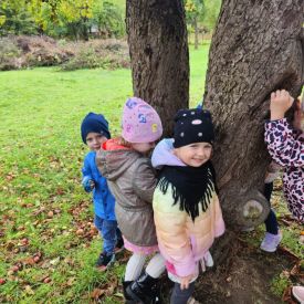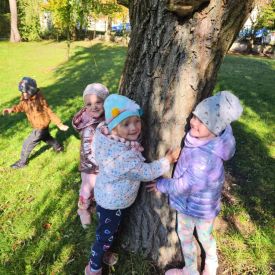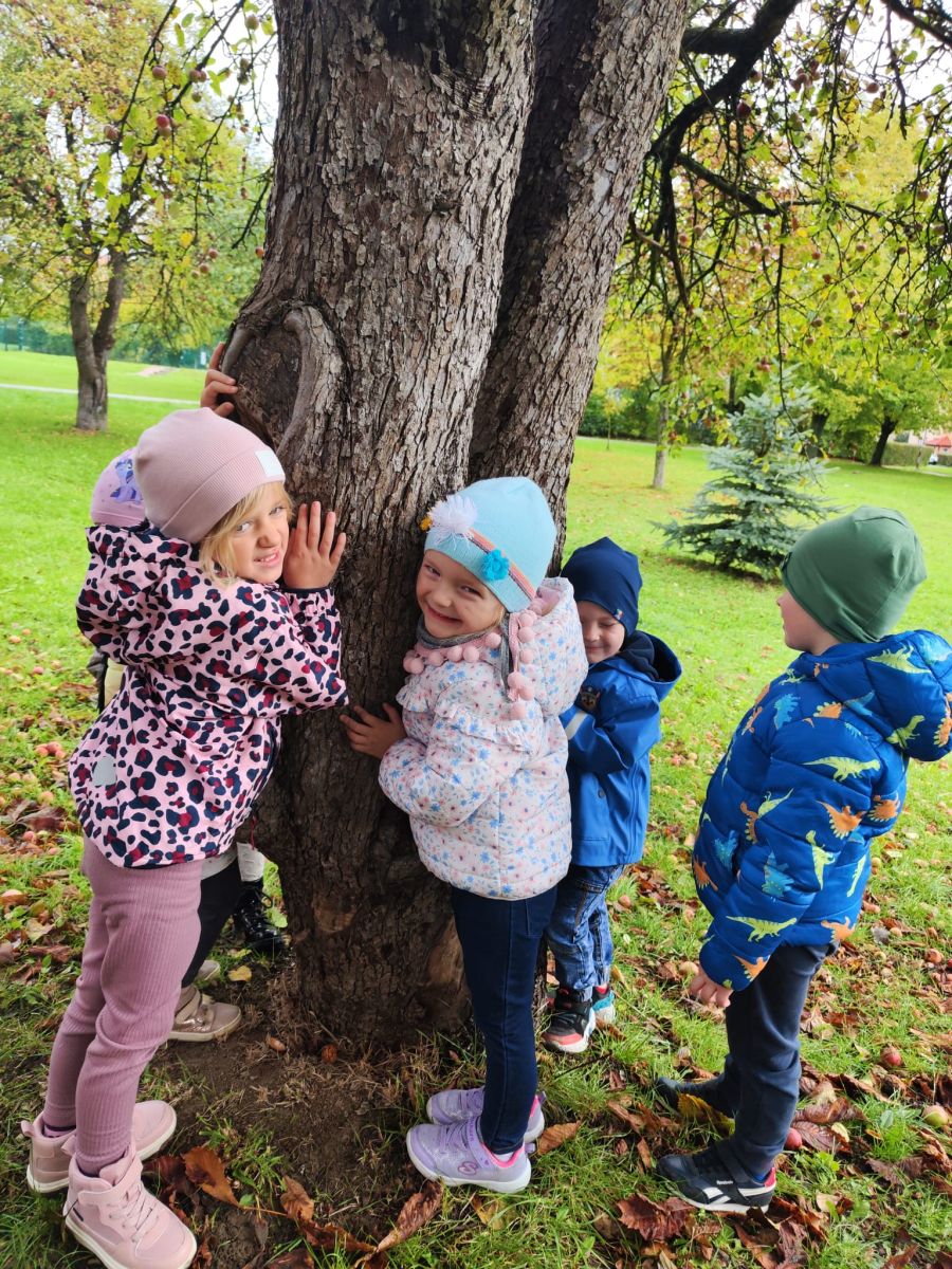 Wspólne zabawy w grupach, wykonanie prac plastycznych, przytulanie sie do drzew były świetną okazją do integracji przedszkolaków oraz wspaniałą lekcją przyrody.