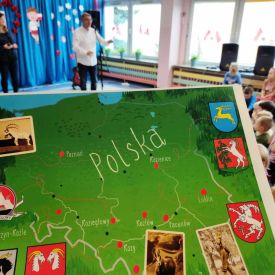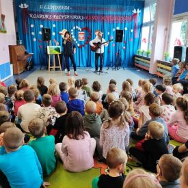 Pani Dorotka oraz pan Adam słowem i piosenką opowiedzieli o trudnych losach naszej ojczyzny w czasie zaborów. Przedszkolaki z zaciekawieniem wsłuchiwały się w opowieść i z entuzjazmem włączały się w śpiew.