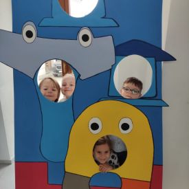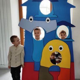 Dzieci po powrocie do przedszkola wypowiadały się na temat obejrzanego spektaklu a następnie wykonały prace plastyczne, które wezmą udział w konkursie plastycznym "Mój Teatr".