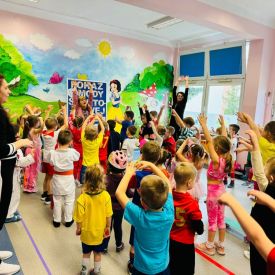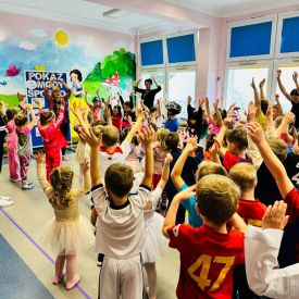 Po emocjonującym pokazie, dzieci ze wszystkich grup wzięły udział w ćwiczeniach gimnastycznych, które poprowadziła Pani Dorotka. Poza tym, wspólnie śpiewały piosenki o tematyce sportowej, co jeszcze bardziej wzmocniło ducha sportowej pasji i przyjaźni wśród uczestników.