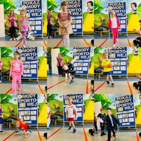 Dzieci z poszczególnych grup wychodziły na wybieg wyznaczony czerwonymi liniami, co nadawało prezentacji dodatkowego profesjonalnego charakteru. Dzieci najpierw pojedynczo prezentowały się w strojach w rytm muzyki, pokazując swoje umiejętności i talenty. Następnie, całe grupy dzieci wspólnie wchodziły na wybieg, tworząc wspaniałe i barwne obrazy, które doskonale wpisywały się w atmosferę sportowej pasji. To wspólne prezentowanie strojów dodatkowo podkreśliło zgranie i harmonię wśród uczestników oraz uczyniło to wydarzenie jeszcze bardziej pamiętnym.