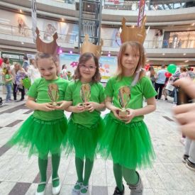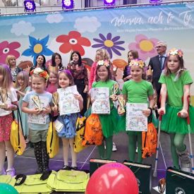 Nasze przedszkole reprezentowały : Zuzia, Ala i Laura z grupy Sówek. Z radością informujemy, iż dziewczynki za wykonanie piosenki „Z wiosną” zdobyły I miejsce !!! Otrzymały liczne nagrody, statuetki i dyplomy. BRAWO !!!