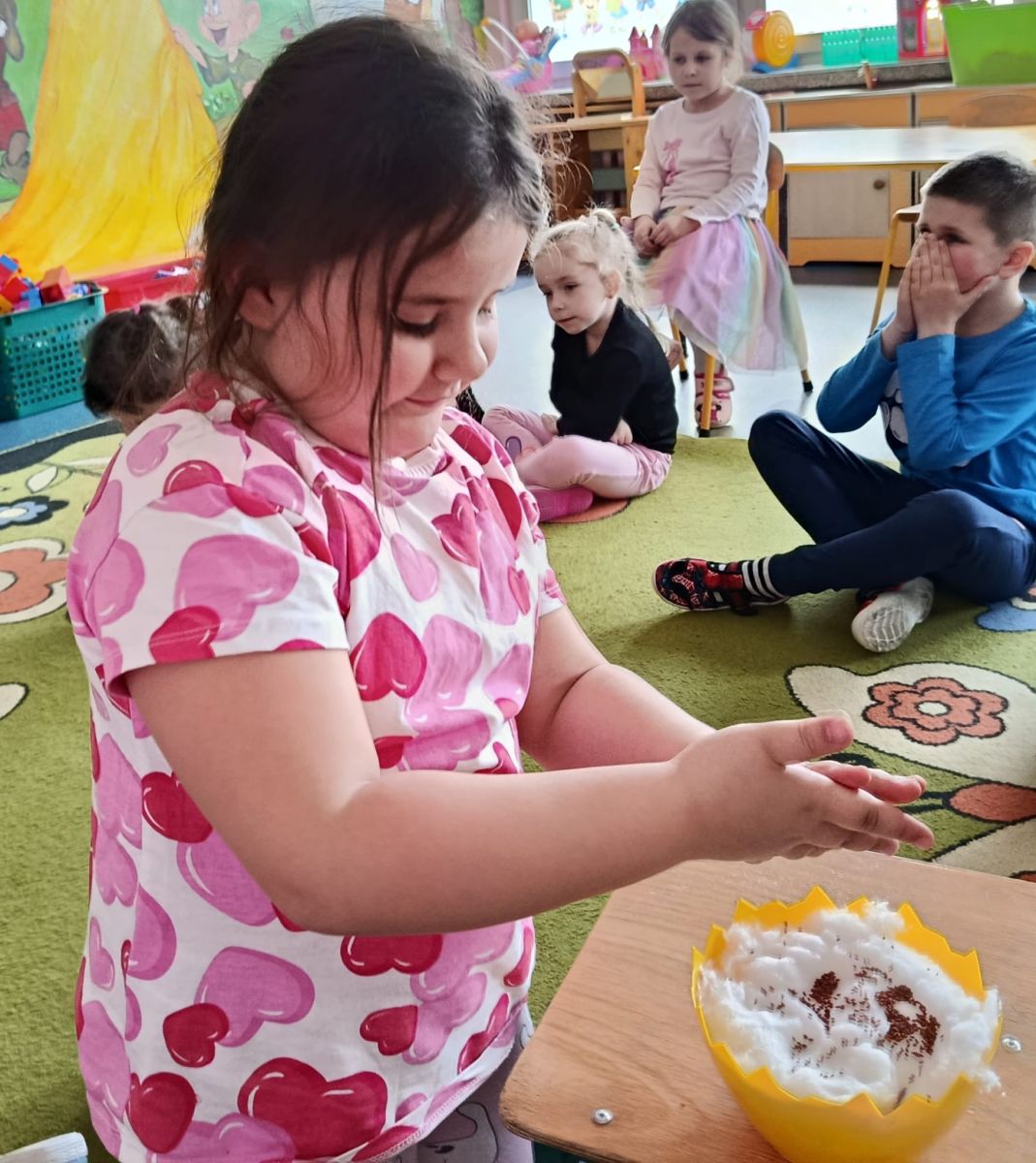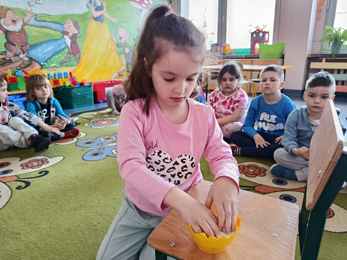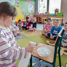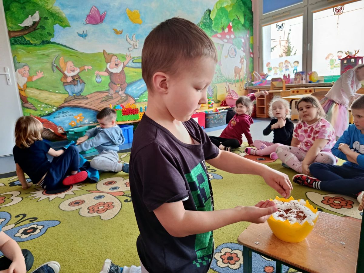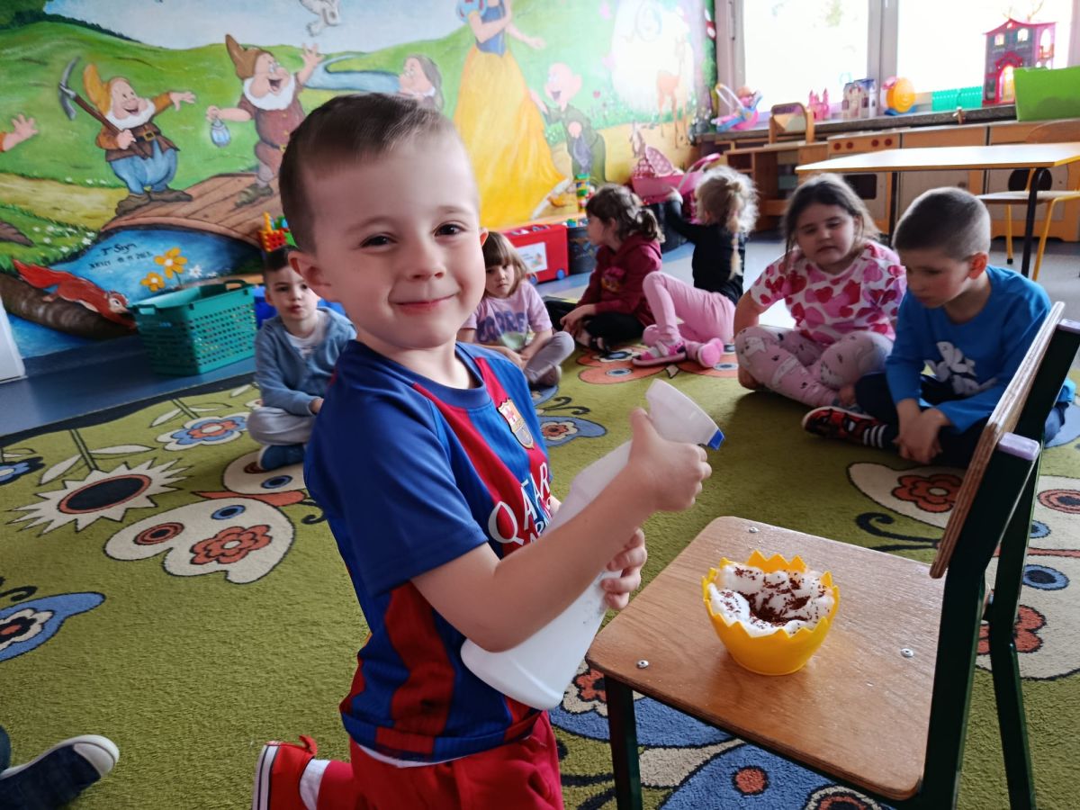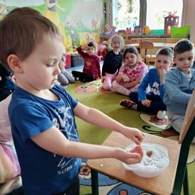 W czwartek 10.04.2025r. Motylki, aby poczuć już atmosferę wiosennych Świąt Wielkanocnych postanowiły zasiać rzeżuchę. Potrzebowaliśmy pojemniczków, waty, trochę wody i oczywiście ziarenek rzeżuchy. Przedszkolaki z ochotą siały ziarenka. Obecnie doglądają i pamiętają o codziennym podlewaniu. Czekamy na efekty.