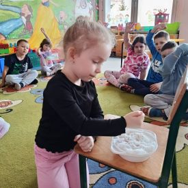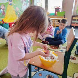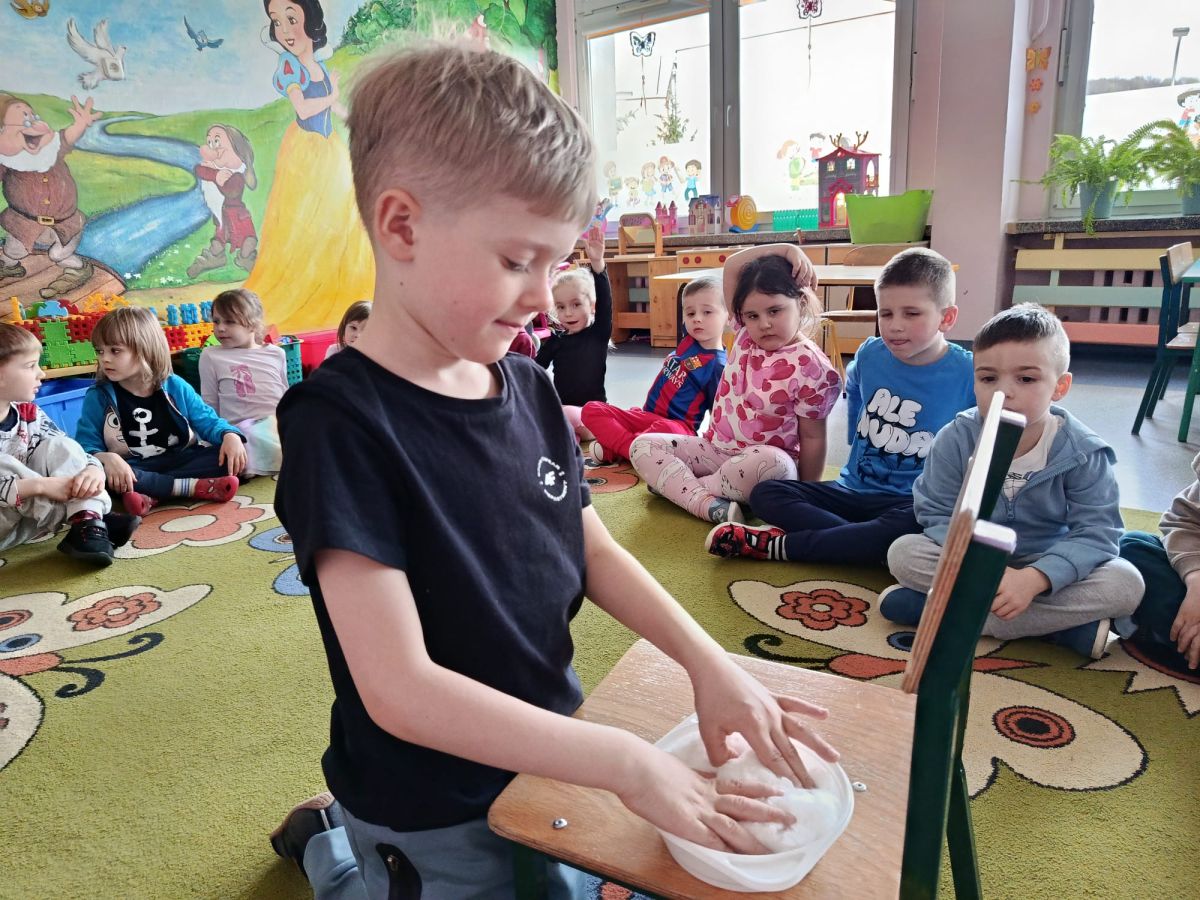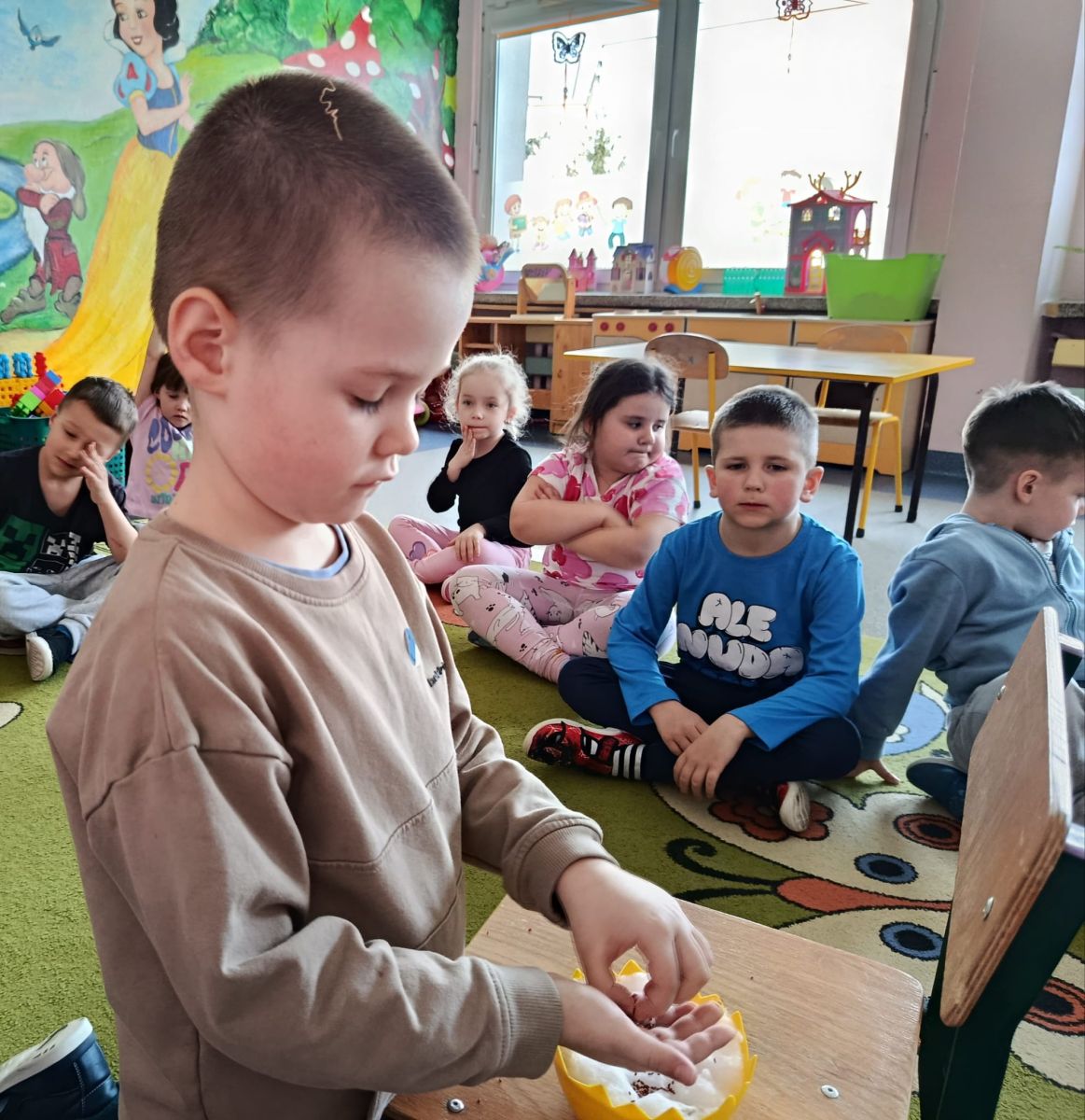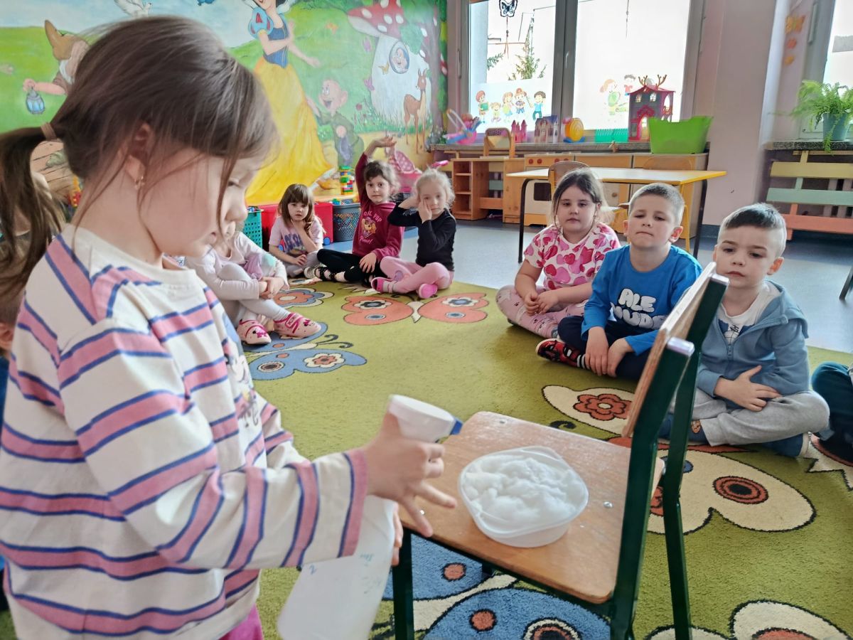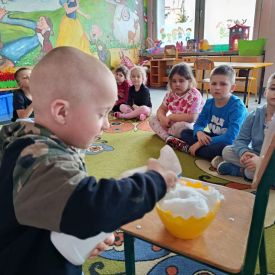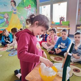 W czwartek 10.04.2025r. Motylki, aby poczuć już atmosferę wiosennych Świąt Wielkanocnych postanowiły zasiać rzeżuchę. Potrzebowaliśmy pojemniczków, waty, trochę wody i oczywiście ziarenek rzeżuchy. Przedszkolaki z ochotą siały ziarenka. Obecnie doglądają i pamiętają o codziennym podlewaniu. Czekamy na efekty.