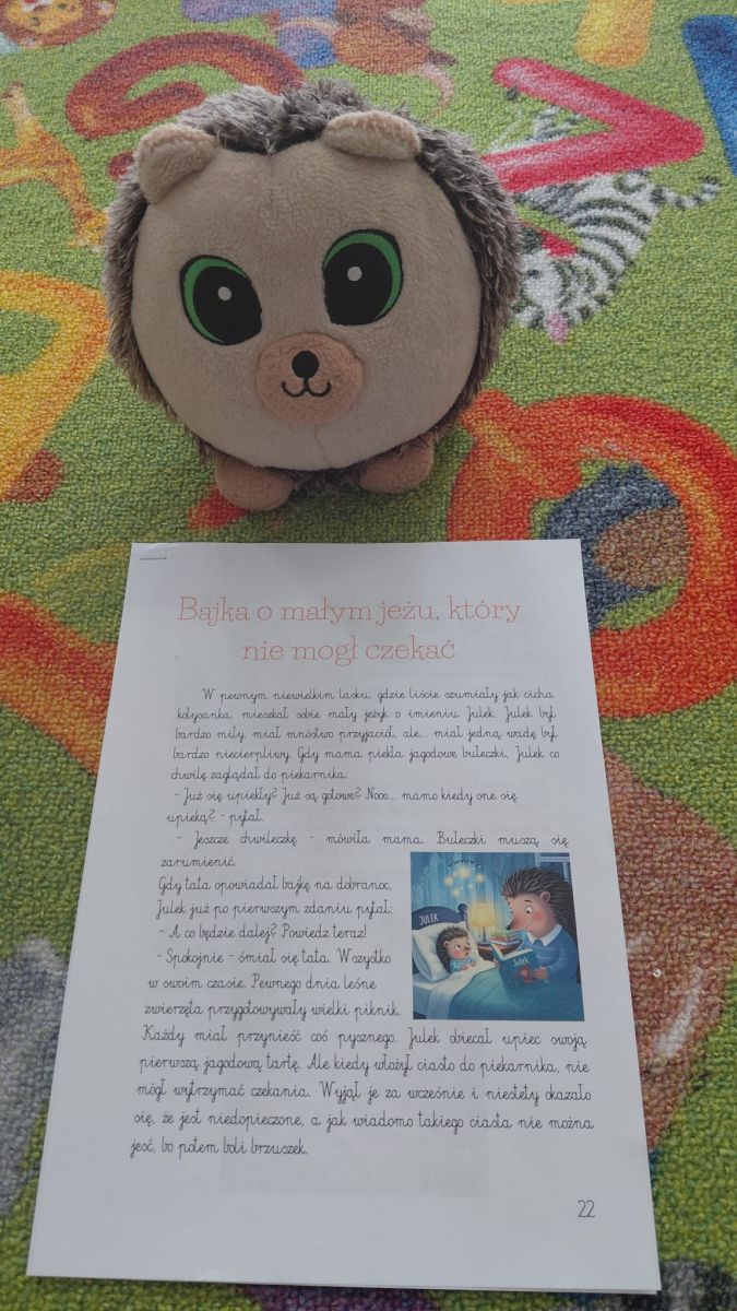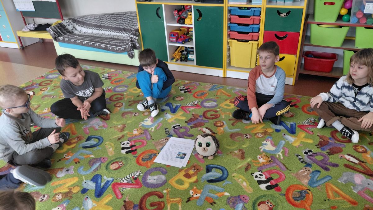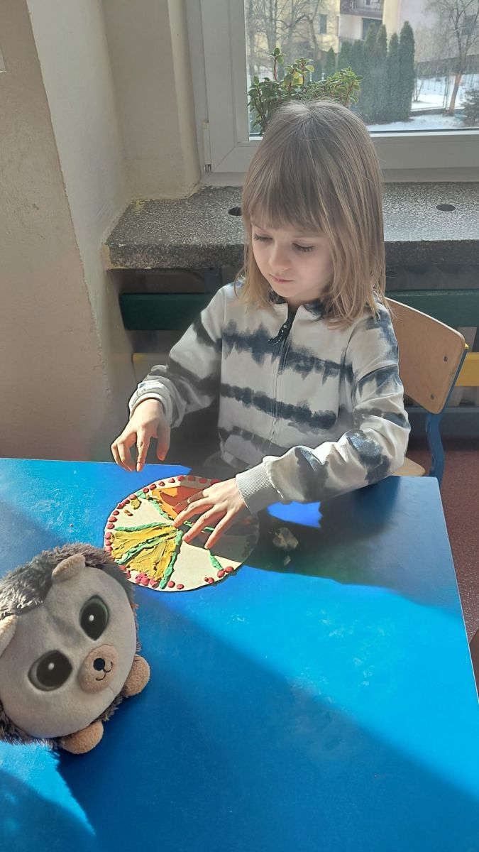 11 lutego 2026 r. grupa „Sówek” zrealizowała kolejne zadanie z projektu edukacyjnego „W krainie uczuć”. Dzieci wysłuchały opowiadanie pt. „Bajka o małym jeżu, który nie mógł się doczekać”. Na jego podstawie dzieci rozmawiały, czym jest cierpliwość, w jakich sytuacjach warto ją okazywać i wspólnie szukały rozwiązań jak można umilić czekanie. Przedszkolaki wzięły udział w zabawie ruchowej „Czekaj na znak” a na zakończenie zajęć wykonały pracę plastyczną „Tarta dla jeżyka”.