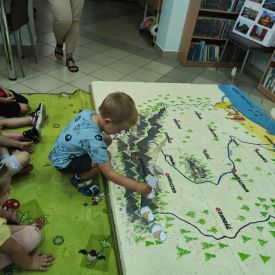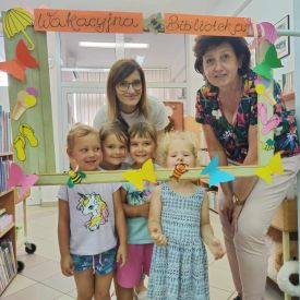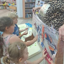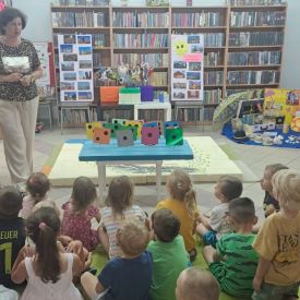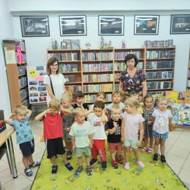 Przedszkolaki z grupy Biedronek, Motylków i Pszczółek podczas wakacyjnego dyżuru uczestniczyły w zajęciach przygotowanych przez Panie z Miejskiej Biblioteki Publicznej z Filii nr 2. Tematem zajęć były wakacyjne podróże po Polsce.