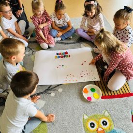 16 września 2024 r. dzieci z naszego przedszkola obchodziły Międzynarodowy Dzień Kropki. Jest to święto odwagi, zabawy i kreatywności. Tego dnia nasze ubrania wypełnione były kolorowymi kropkami. Od samego rana dzieci cieszyły się świętem, które przepełnione było pomysłowymi, nietuzinkowymi zabawami z kropką w roli głównej.