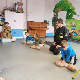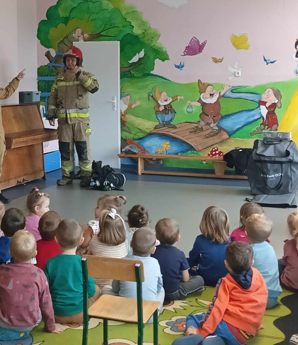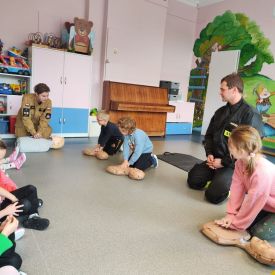 Podczas spotkania strażacy uświadomili dzieciom jak zachowywać się w sytuacjach zagrożenia oraz jak powiadomić służby ratownicze i udzielać pierwszej pomocy. Wiedza, którą dzieci nabyły utrwalana będzie przy każdej okazji podczas zajęć, aby dzieci nabrały pewności siebie w trudnych sytuacjach i mogły udzielić pomocy sobie i innym.