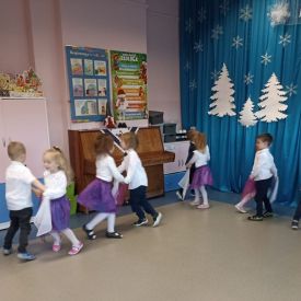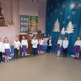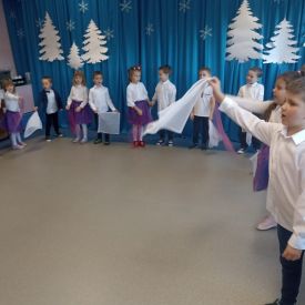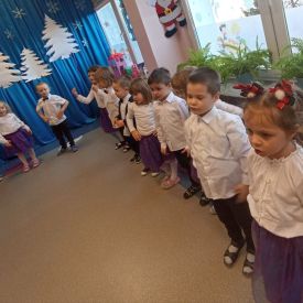 Dnia 13.12.2024 r. dzieci z grupy „Motylków” zaprezentowały Rodzicom program artystyczny, na którym recytowali wiersze, śpiewali piosenki o tematyce świątecznej oraz tańczyli z chusteczkami do piosenki.