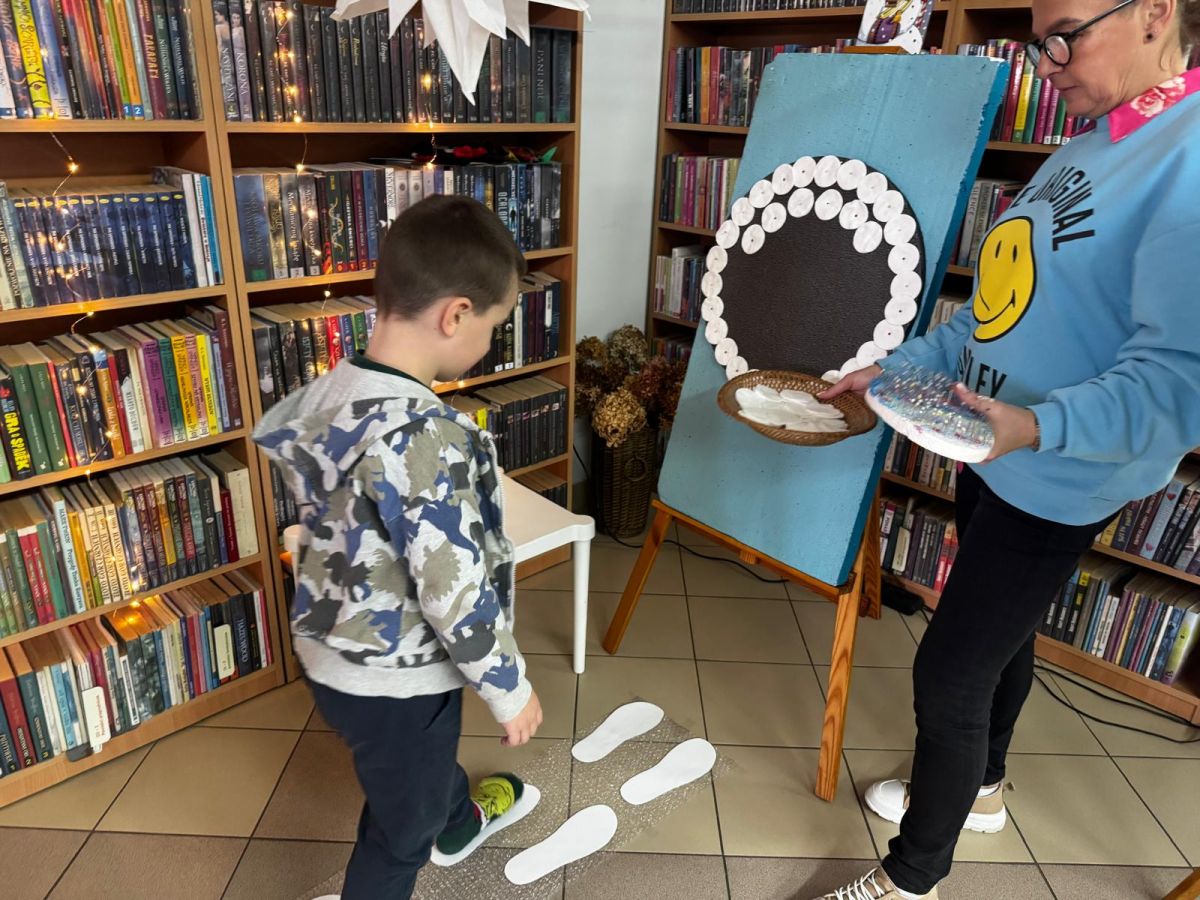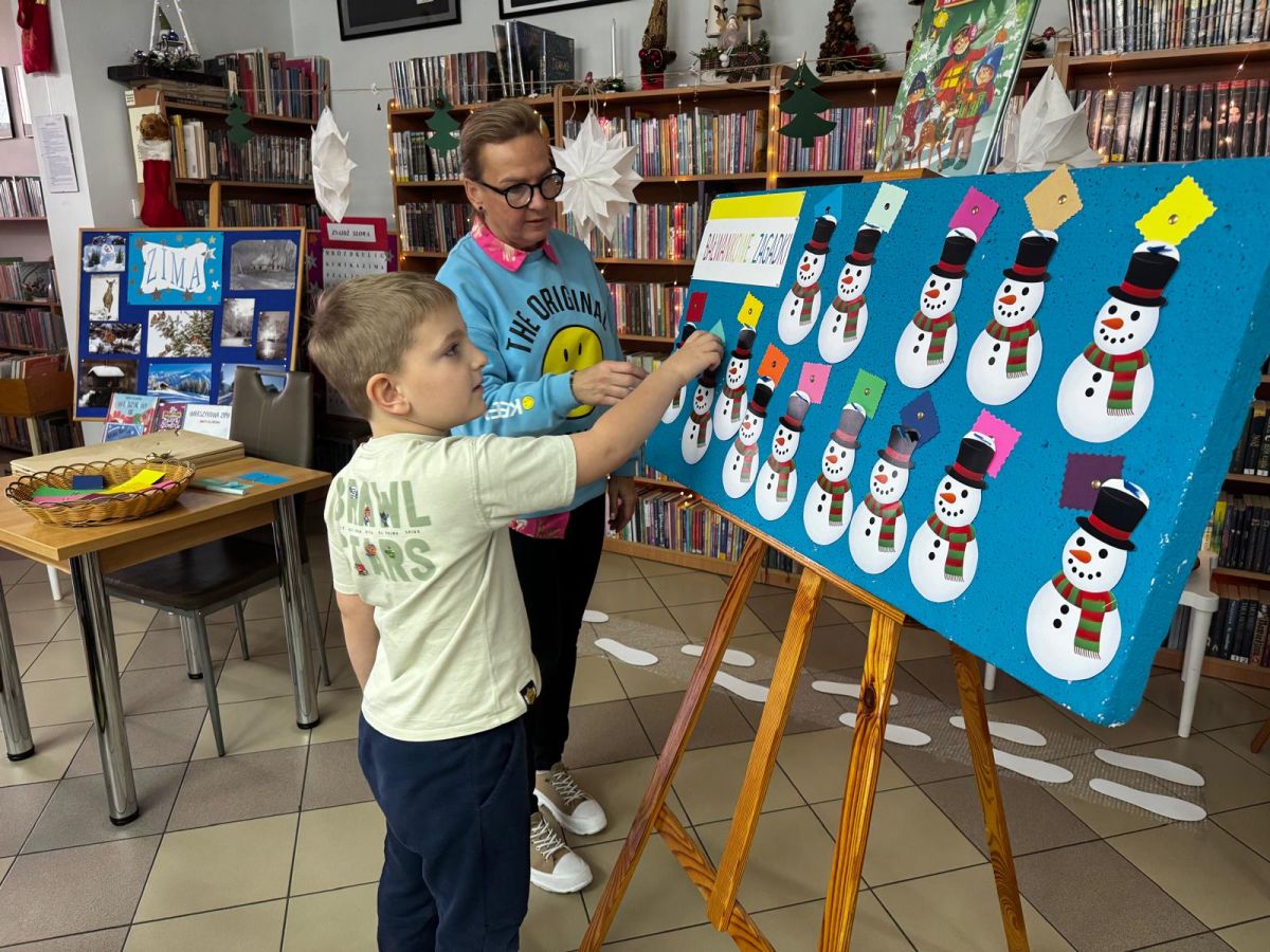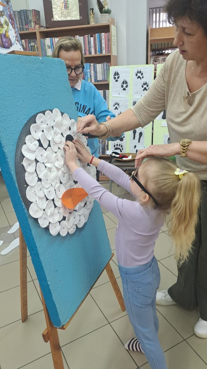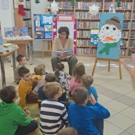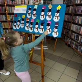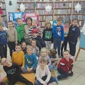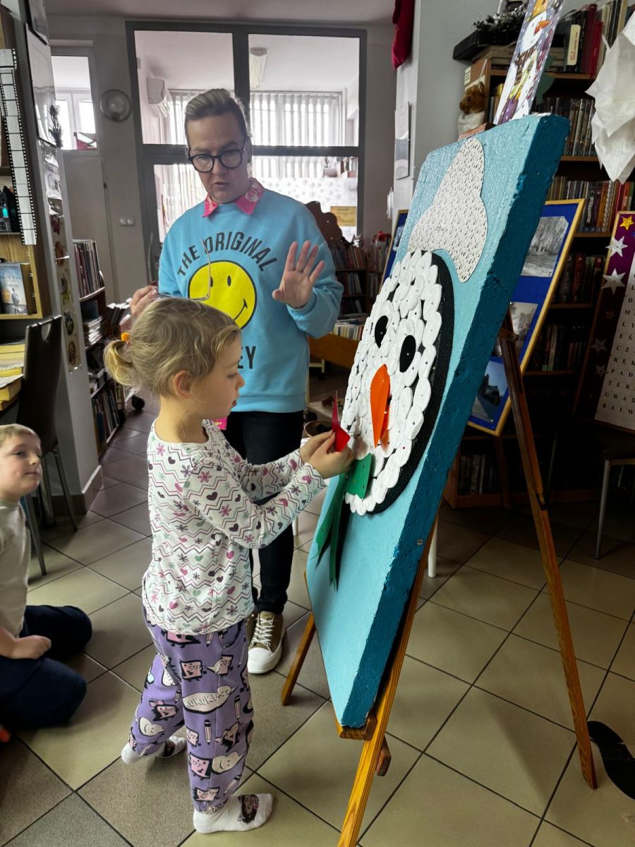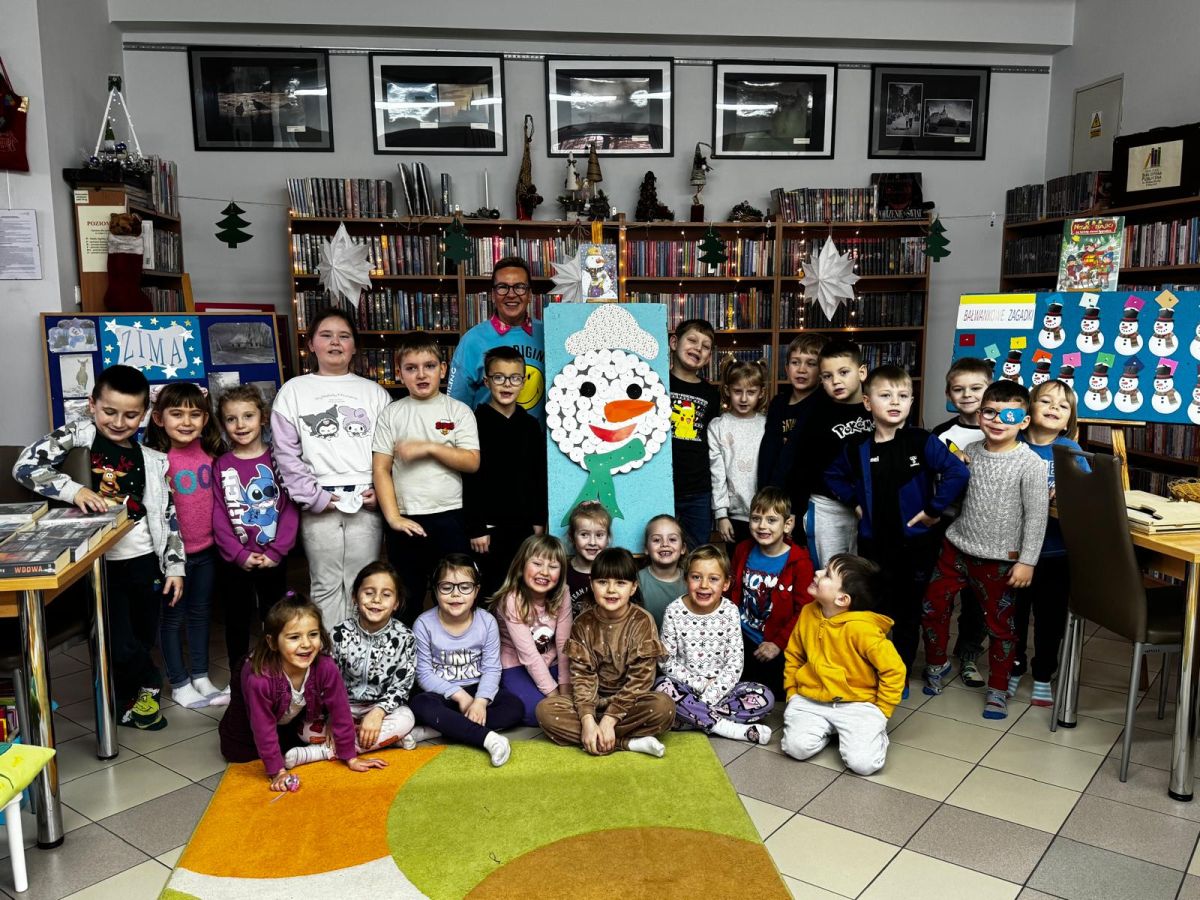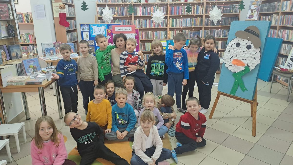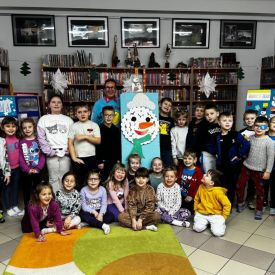 Przedszkolaki z grupy Sówek i Pszczółek uczestniczyły w zajęciach bibliotecznych o tematyce zimowej w Miejskiej Bibliotece Publicznej Filia nr 2 w Kielcach. Z uwagą wysłuchały opowiadania „Zima w lesie” czytanego przez panie bibliotekarki. Następnie brały udział w zabawach: rozpoznawały ślady zwierząt leśnych, znajdywały i odczytywały wyrazy na tablicy związane tematycznie z zimą. Najwięcej radości sprawiło dzieciom układanie sylwety głowy bałwanka z płatków kosmetycznych i z przysłoniętymi oczami przypinanie bałwankowi elementów. Po zajęciach przedszkolaki z zainteresowaniem oglądały księgozbiór dla dzieci.