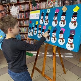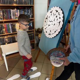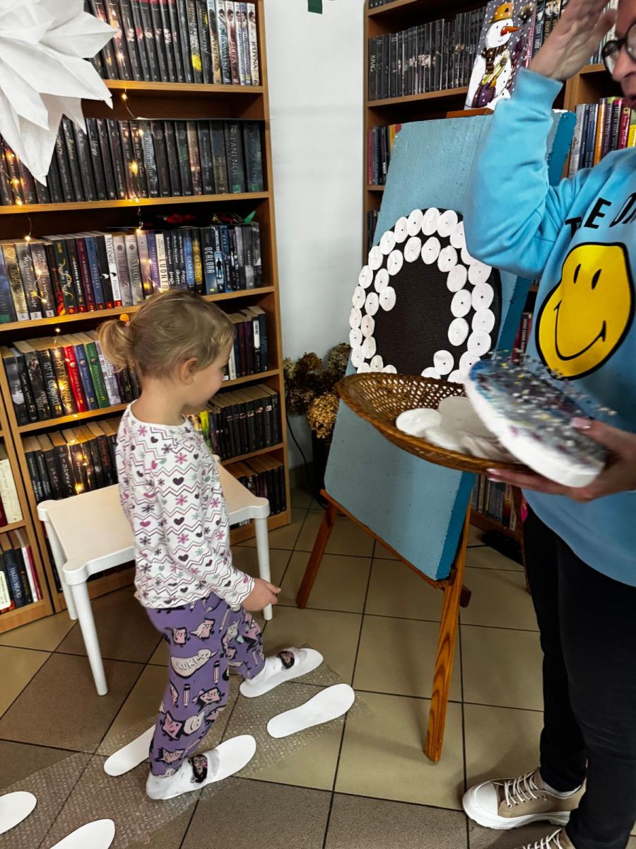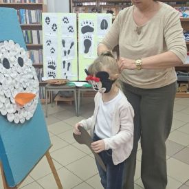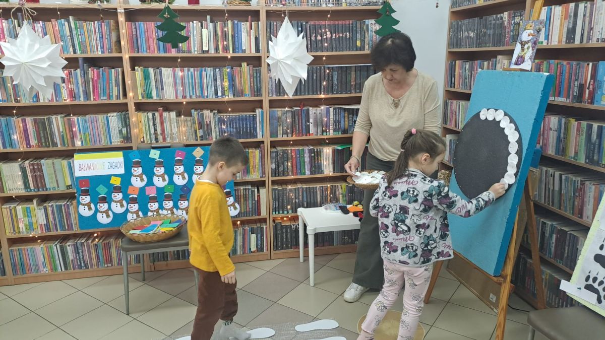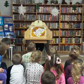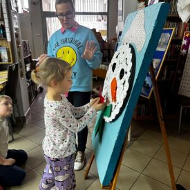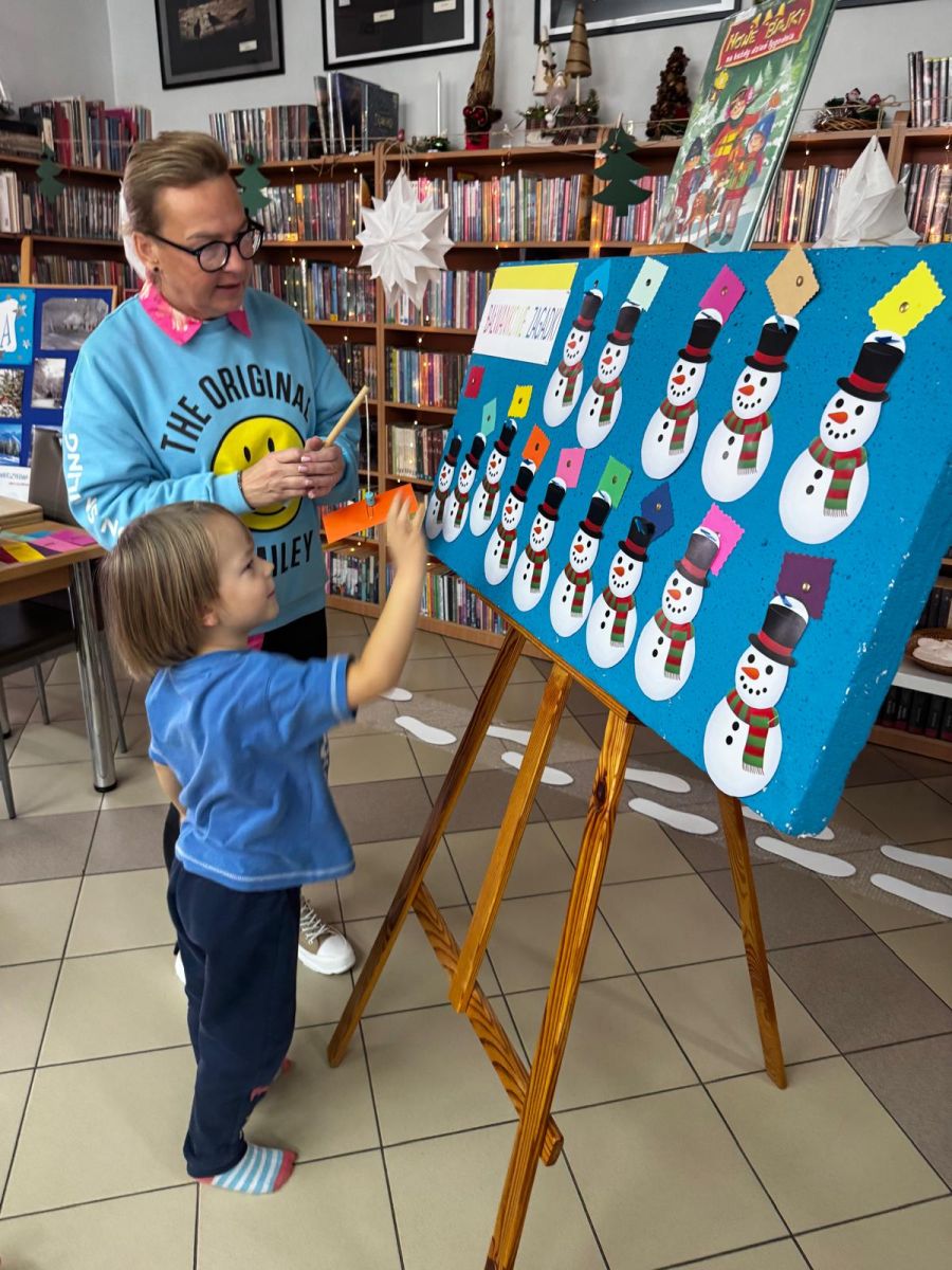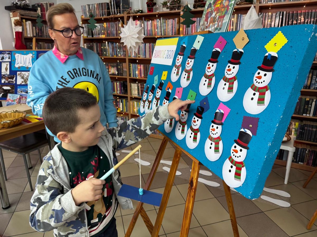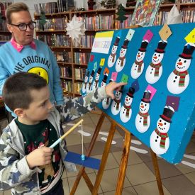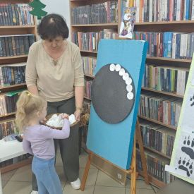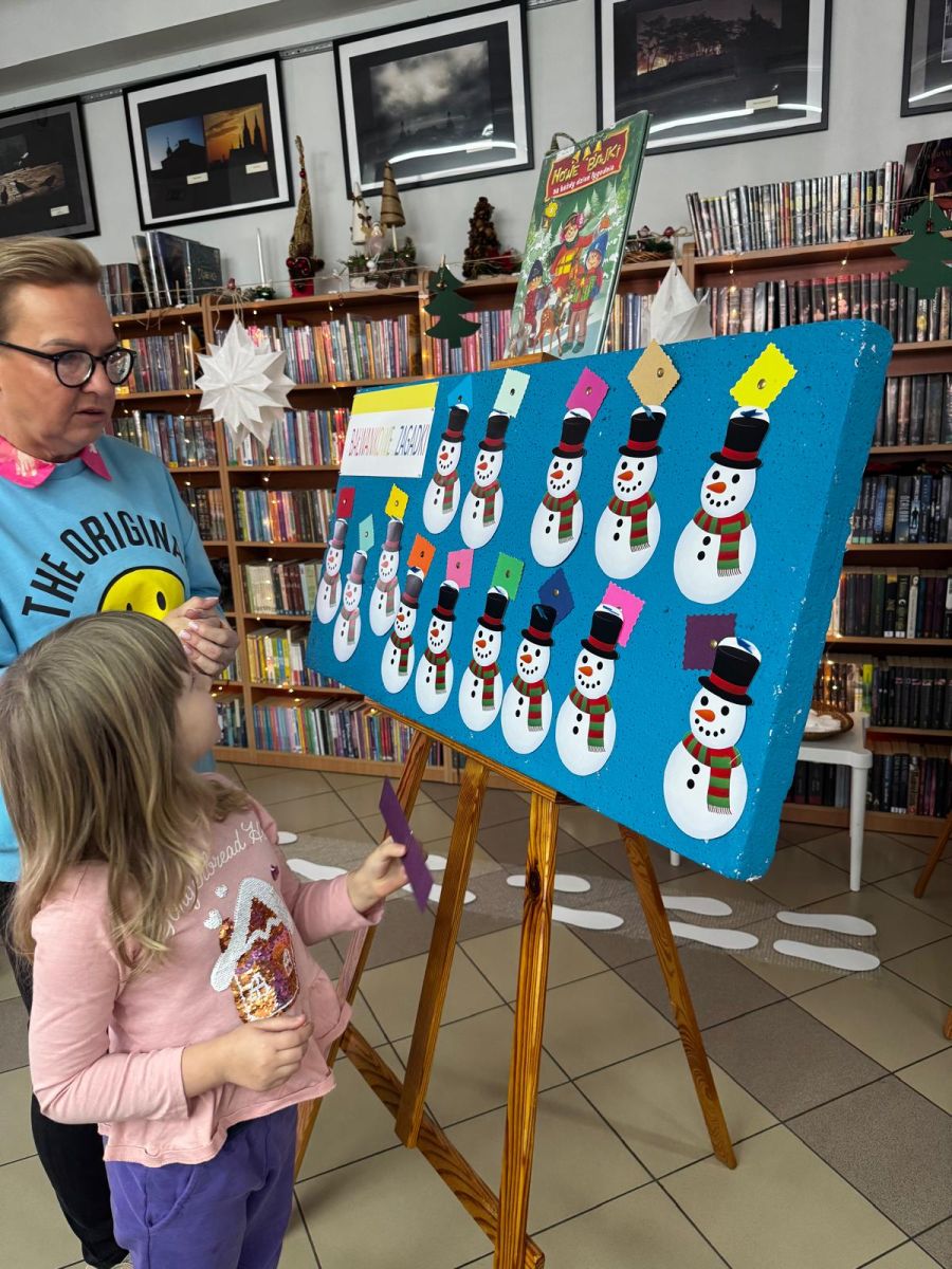 Przedszkolaki z grupy Sówek i Pszczółek uczestniczyły w zajęciach bibliotecznych o tematyce zimowej w Miejskiej Bibliotece Publicznej Filia nr 2 w Kielcach. Z uwagą wysłuchały opowiadania „Zima w lesie” czytanego przez panie bibliotekarki. Następnie brały udział w zabawach: rozpoznawały ślady zwierząt leśnych, znajdywały i odczytywały wyrazy na tablicy związane tematycznie z zimą. Najwięcej radości sprawiło dzieciom układanie sylwety głowy bałwanka z płatków kosmetycznych i z przysłoniętymi oczami przypinanie bałwankowi elementów. Po zajęciach przedszkolaki z zainteresowaniem oglądały księgozbiór dla dzieci.
