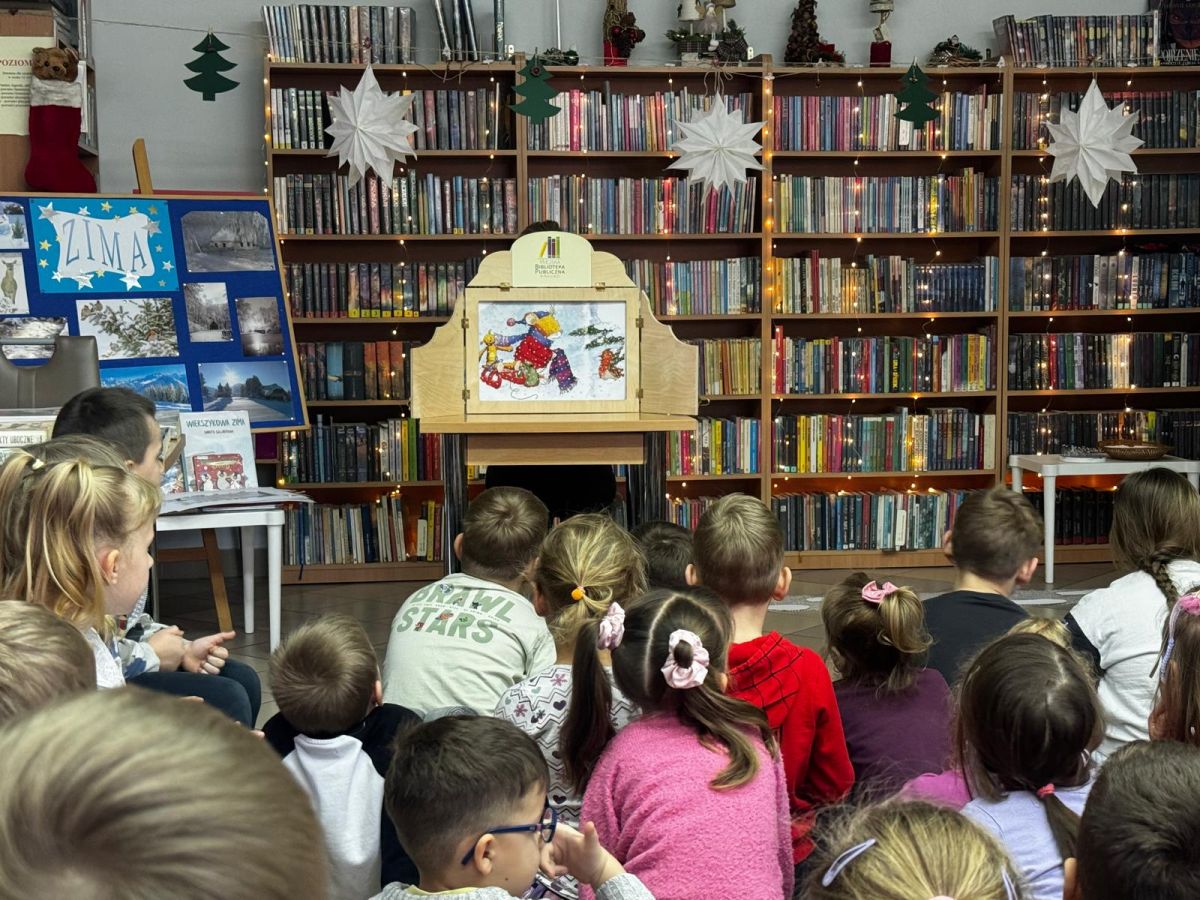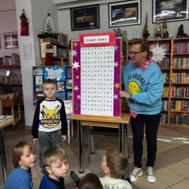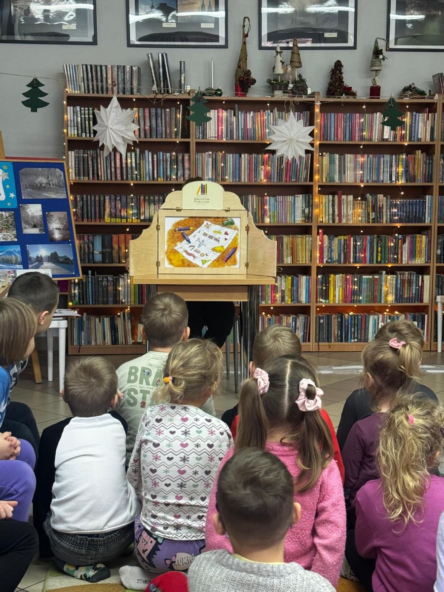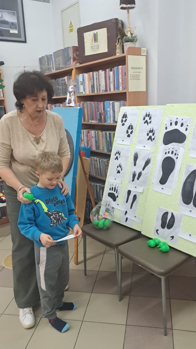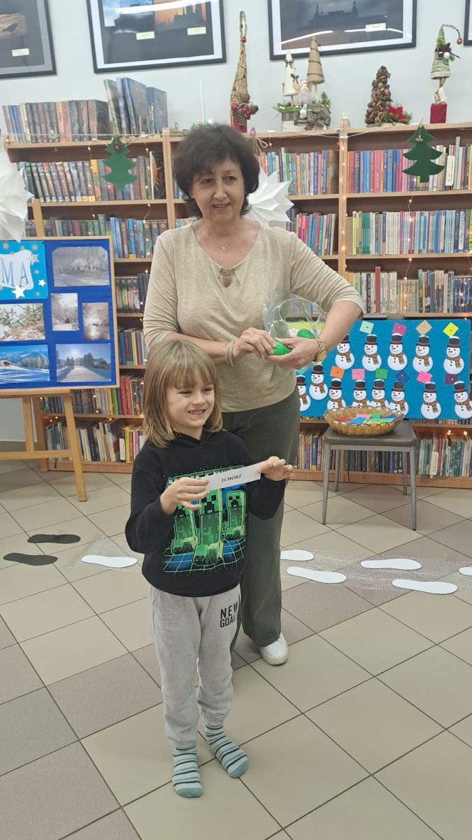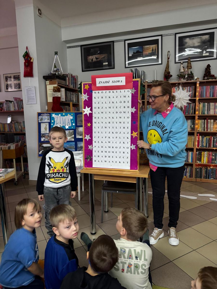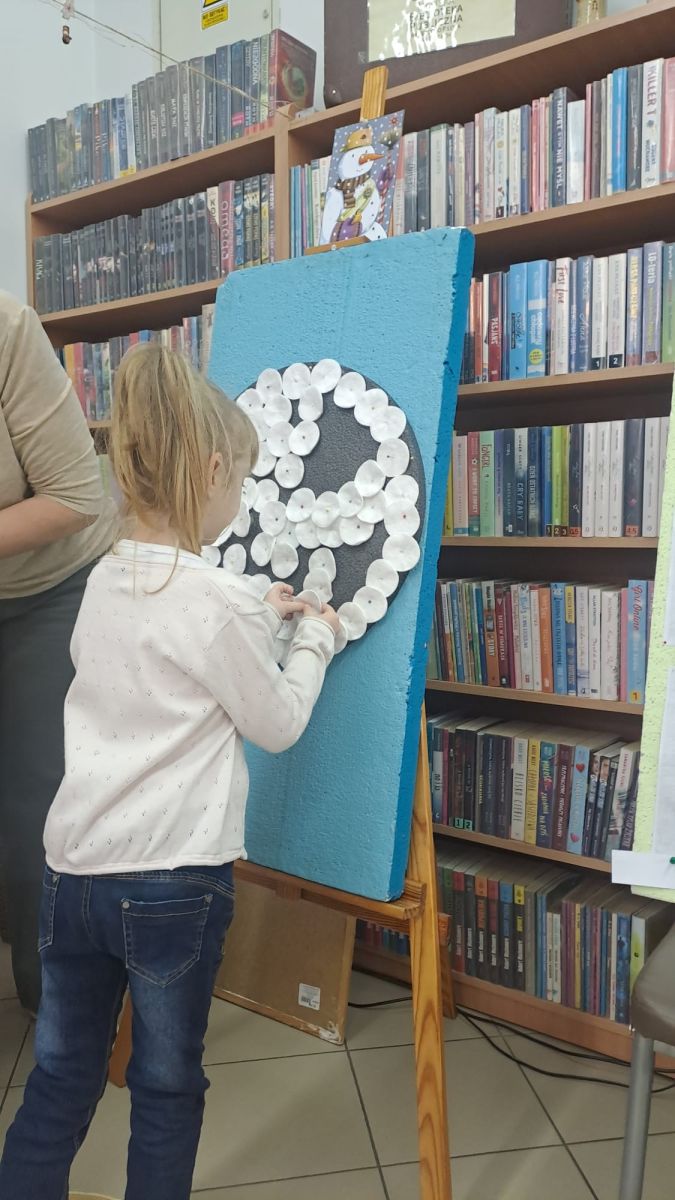 Przedszkolaki z grupy Sówek i Pszczółek uczestniczyły w zajęciach bibliotecznych o tematyce zimowej w Miejskiej Bibliotece Publicznej Filia nr 2 w Kielcach. Z uwagą wysłuchały opowiadania „Zima w lesie” czytanego przez panie bibliotekarki. Następnie brały udział w zabawach: rozpoznawały ślady zwierząt leśnych, znajdywały i odczytywały wyrazy na tablicy związane tematycznie z zimą. Najwięcej radości sprawiło dzieciom układanie sylwety głowy bałwanka z płatków kosmetycznych i z przysłoniętymi oczami przypinanie bałwankowi elementów. Po zajęciach przedszkolaki z zainteresowaniem oglądały księgozbiór dla dzieci.