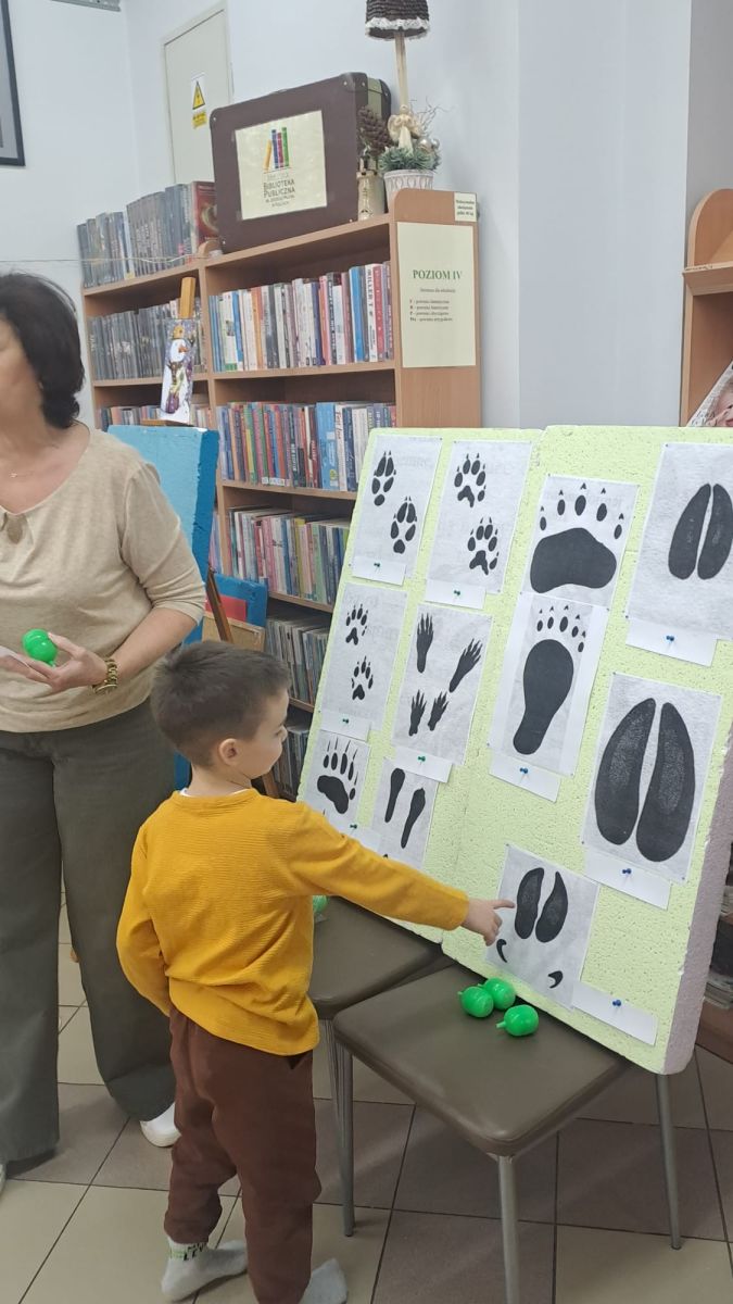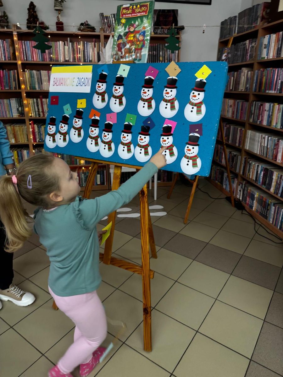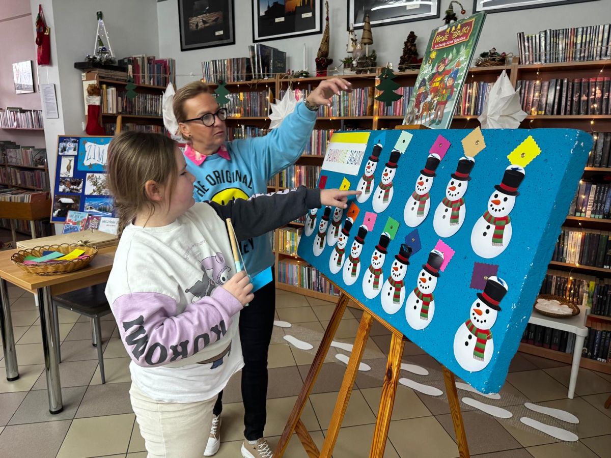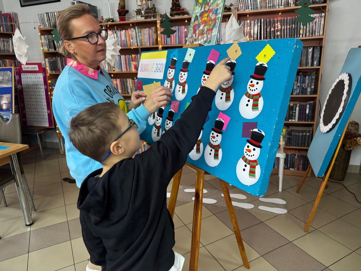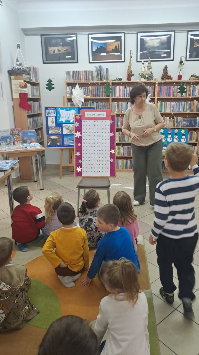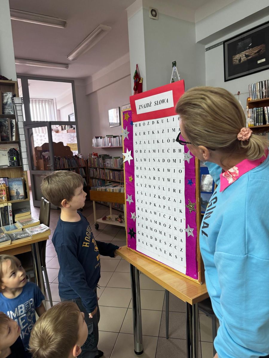 Przedszkolaki z grupy Sówek i Pszczółek uczestniczyły w zajęciach bibliotecznych o tematyce zimowej w Miejskiej Bibliotece Publicznej Filia nr 2 w Kielcach. Z uwagą wysłuchały opowiadania „Zima w lesie” czytanego przez panie bibliotekarki. Następnie brały udział w zabawach: rozpoznawały ślady zwierząt leśnych, znajdywały i odczytywały wyrazy na tablicy związane tematycznie z zimą. Najwięcej radości sprawiło dzieciom układanie sylwety głowy bałwanka z płatków kosmetycznych i z przysłoniętymi oczami przypinanie bałwankowi elementów. Po zajęciach przedszkolaki z zainteresowaniem oglądały księgozbiór dla dzieci.