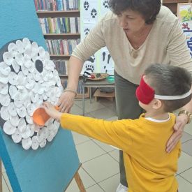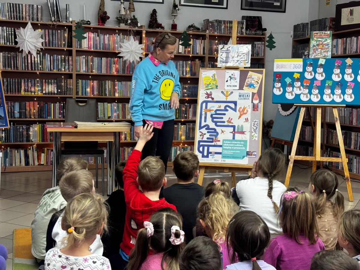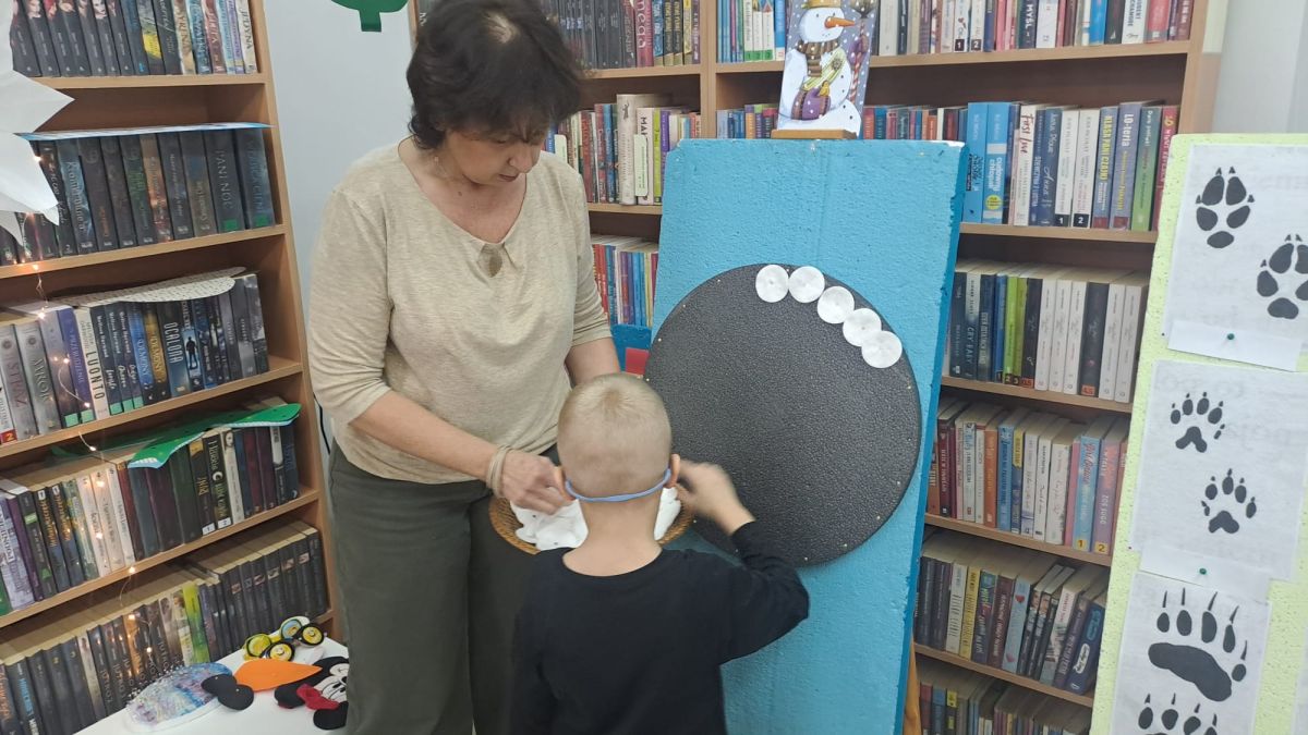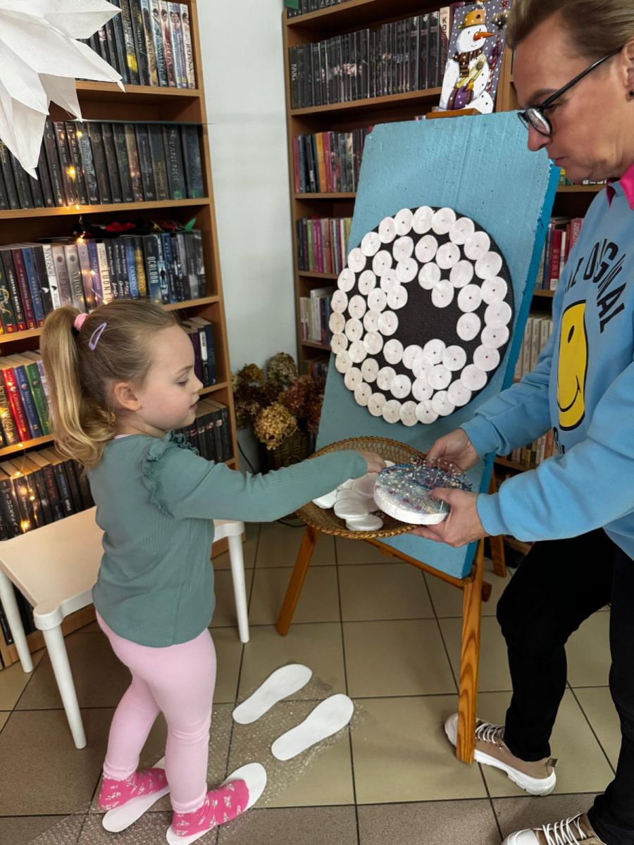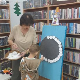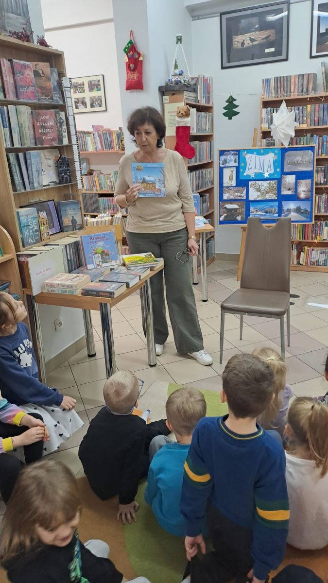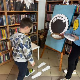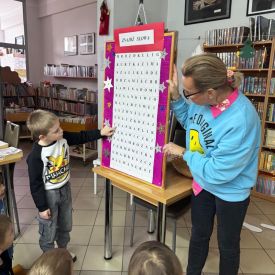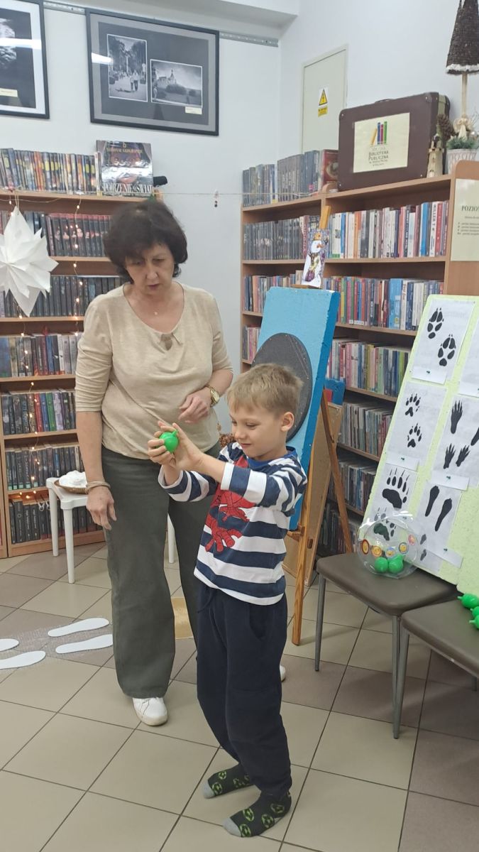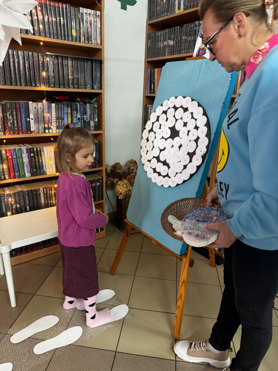 Przedszkolaki z grupy Sówek i Pszczółek uczestniczyły w zajęciach bibliotecznych o tematyce zimowej w Miejskiej Bibliotece Publicznej Filia nr 2 w Kielcach. Z uwagą wysłuchały opowiadania „Zima w lesie” czytanego przez panie bibliotekarki. Następnie brały udział w zabawach: rozpoznawały ślady zwierząt leśnych, znajdywały i odczytywały wyrazy na tablicy związane tematycznie z zimą. Najwięcej radości sprawiło dzieciom układanie sylwety głowy bałwanka z płatków kosmetycznych i z przysłoniętymi oczami przypinanie bałwankowi elementów. Po zajęciach przedszkolaki z zainteresowaniem oglądały księgozbiór dla dzieci.