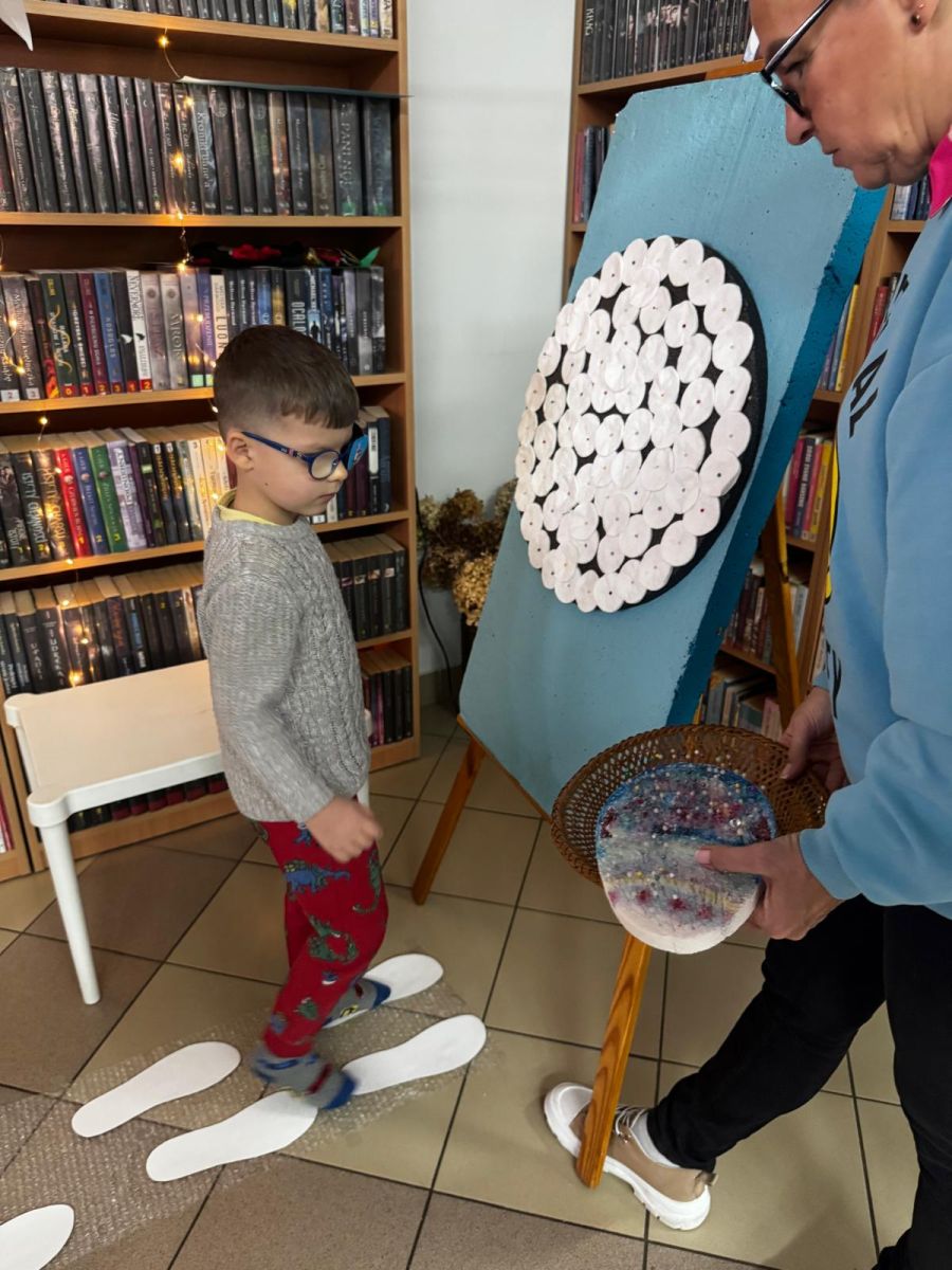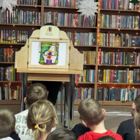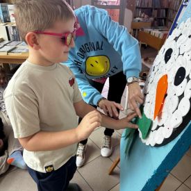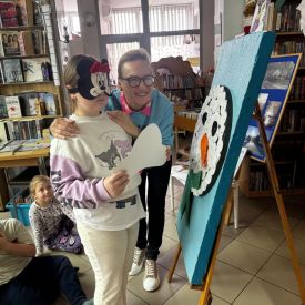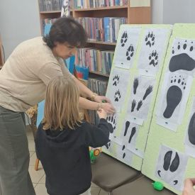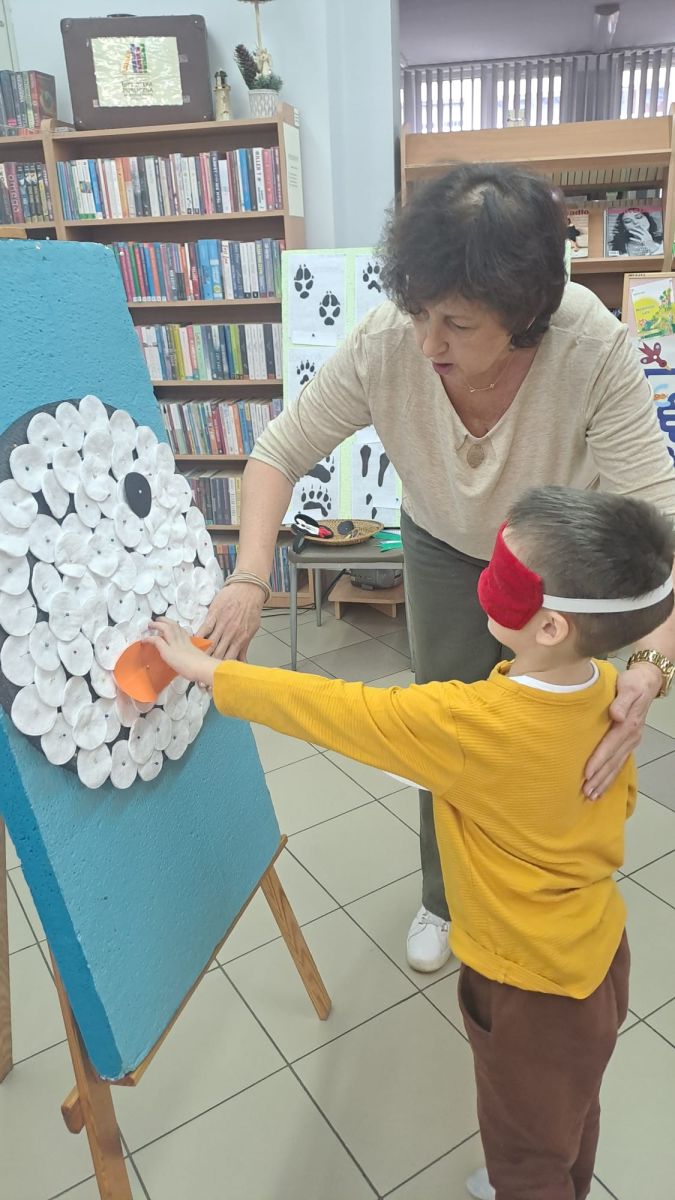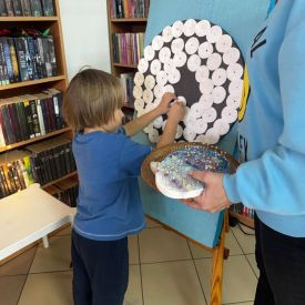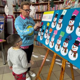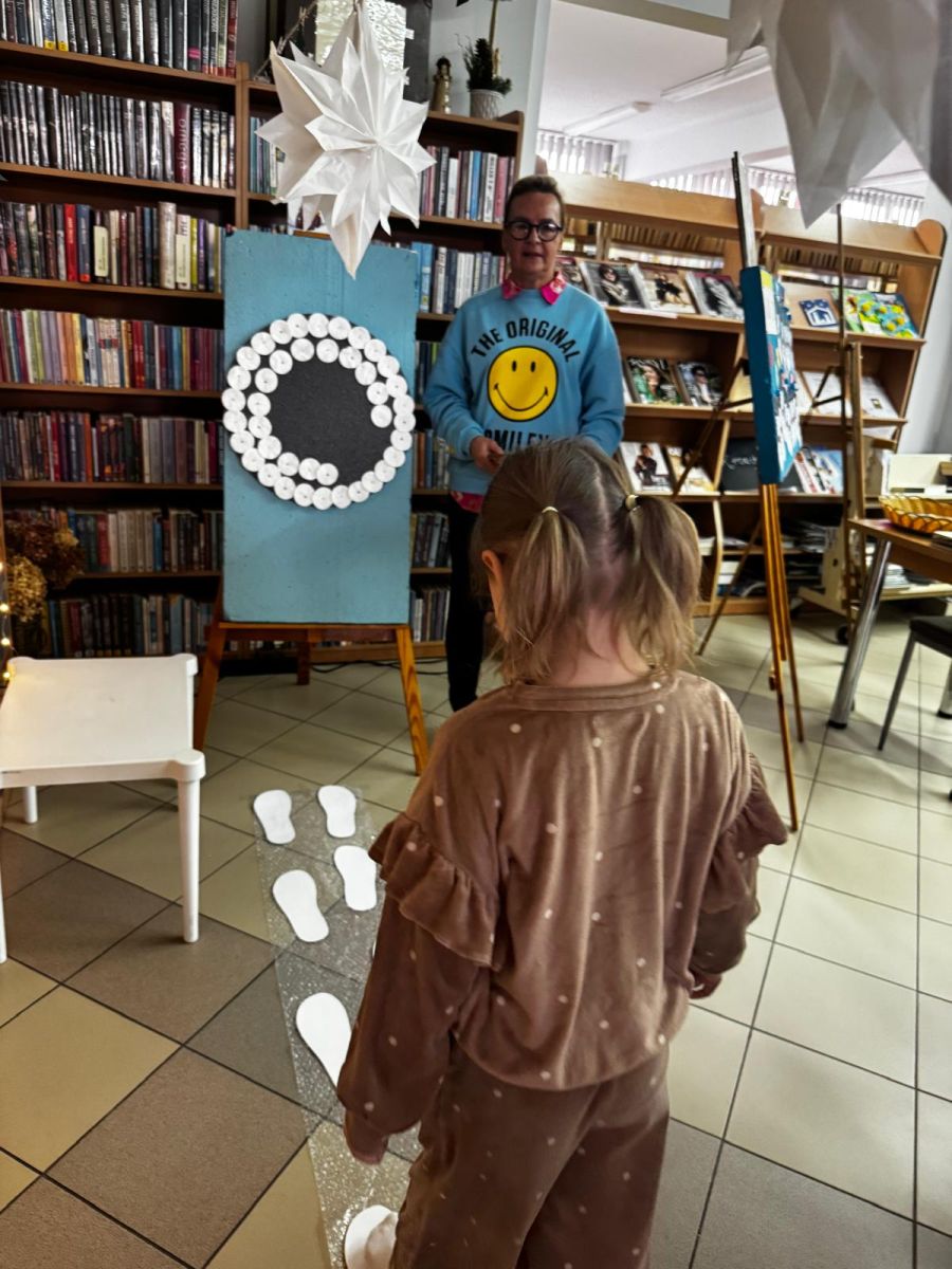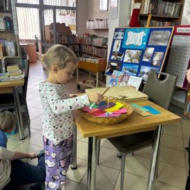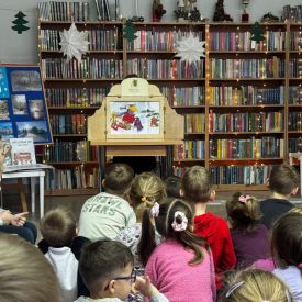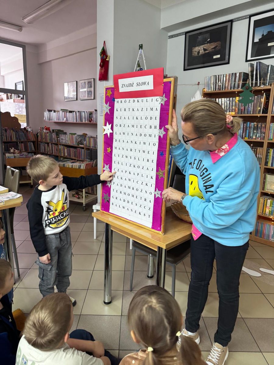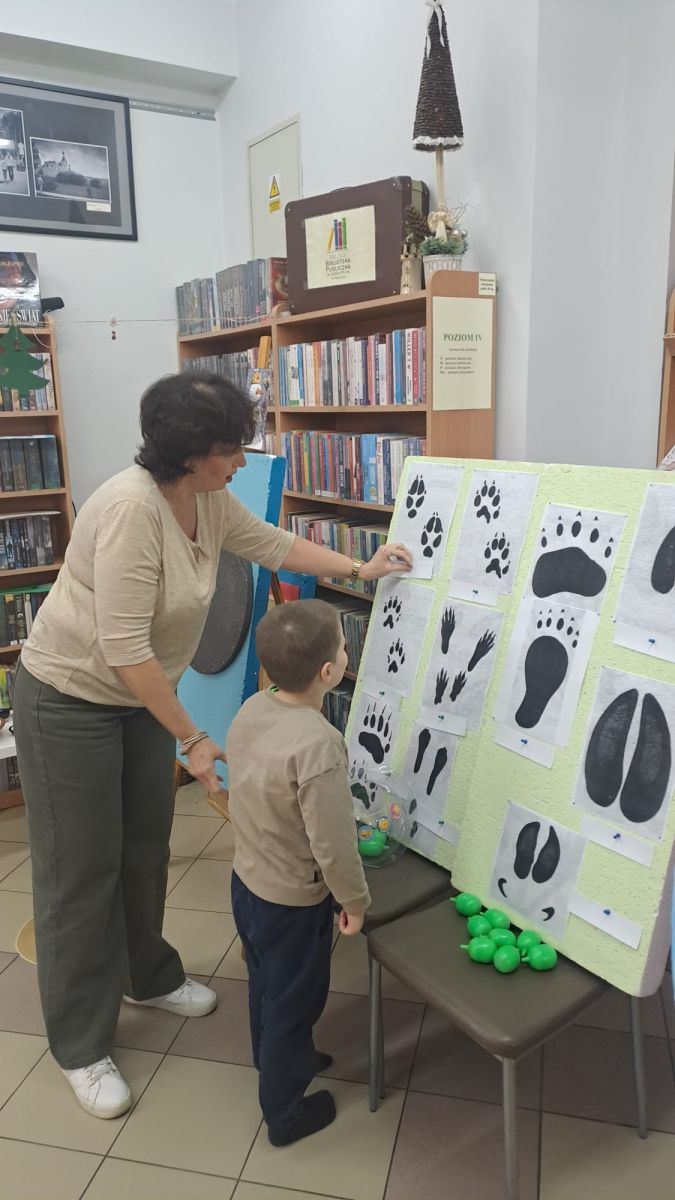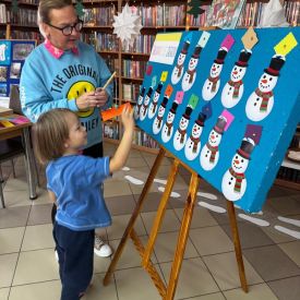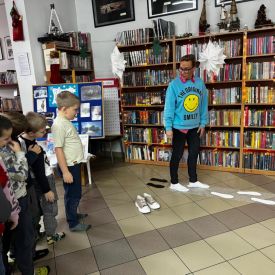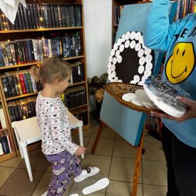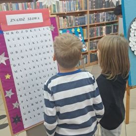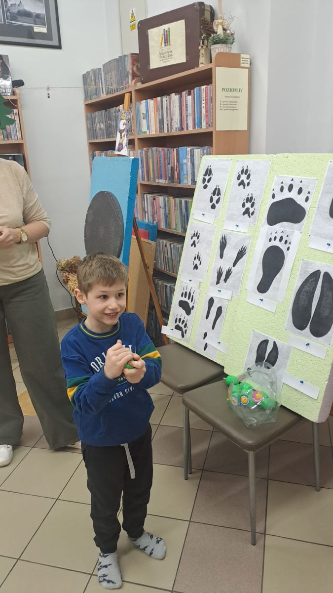 Przedszkolaki z grupy Sówek i Pszczółek uczestniczyły w zajęciach bibliotecznych o tematyce zimowej w Miejskiej Bibliotece Publicznej Filia nr 2 w Kielcach. Z uwagą wysłuchały opowiadania „Zima w lesie” czytanego przez panie bibliotekarki. Następnie brały udział w zabawach: rozpoznawały ślady zwierząt leśnych, znajdywały i odczytywały wyrazy na tablicy związane tematycznie z zimą. Najwięcej radości sprawiło dzieciom układanie sylwety głowy bałwanka z płatków kosmetycznych i z przysłoniętymi oczami przypinanie bałwankowi elementów. Po zajęciach przedszkolaki z zainteresowaniem oglądały księgozbiór dla dzieci.